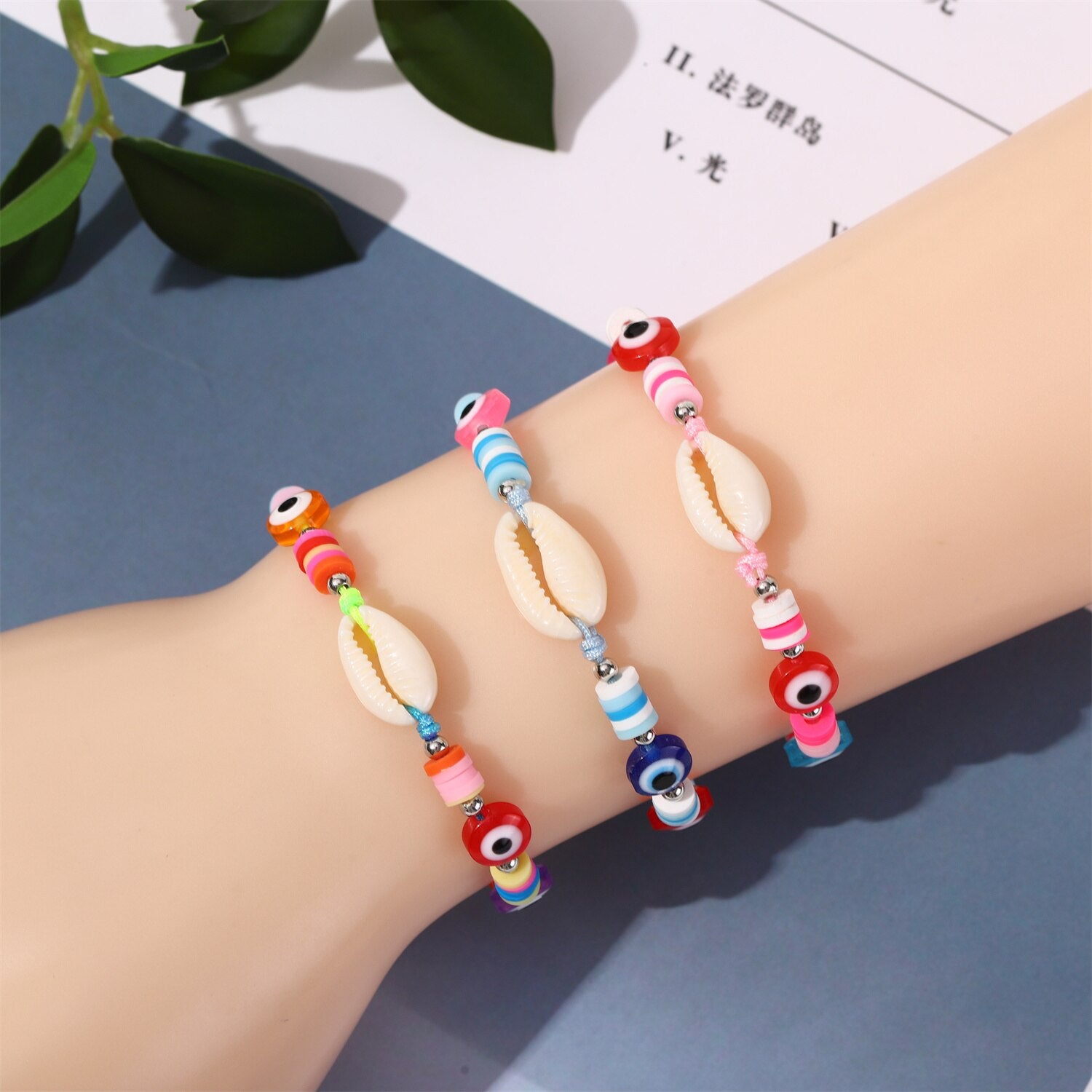 12 Pcs Beach Shell Evil Eye Beads Bracelet Anklet Set Women Summer Handmade Ankle Adjustable Clay Bracelets Wholesale