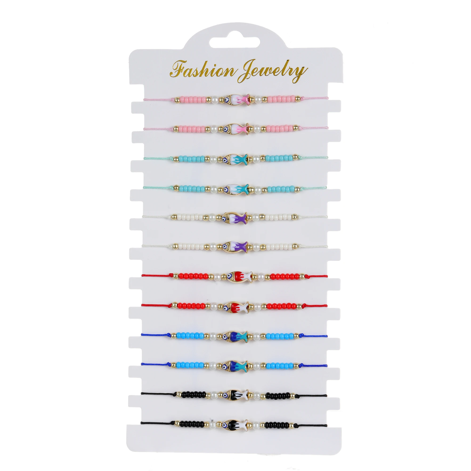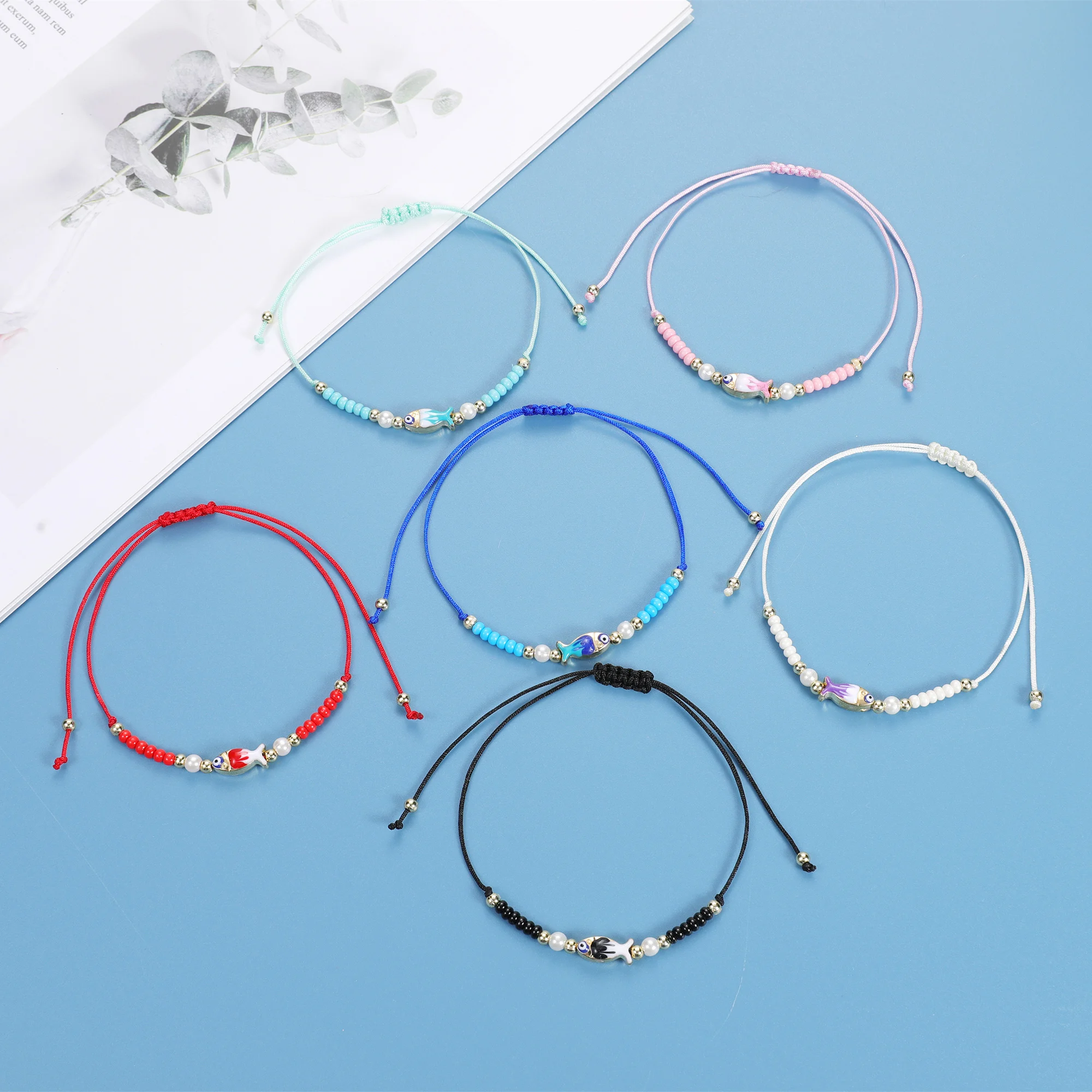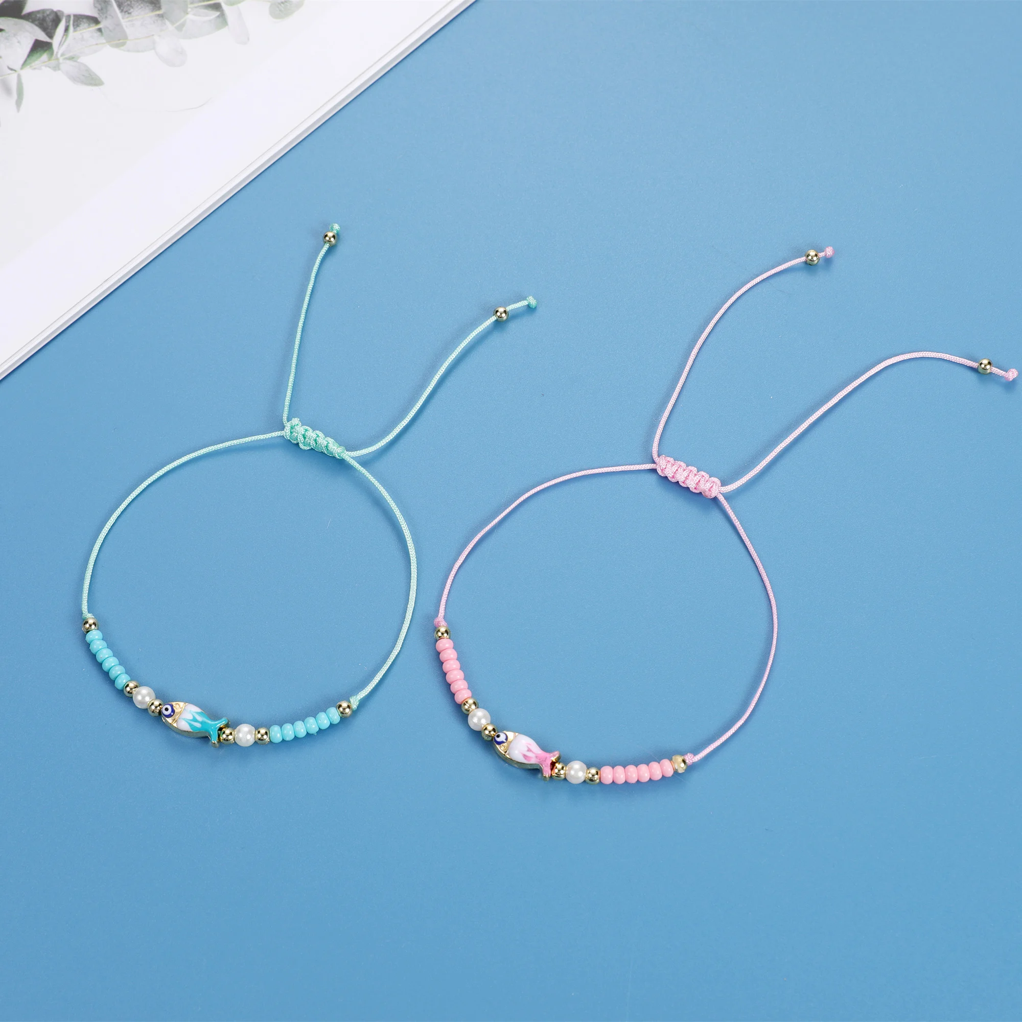 12 Pieces Girls Bracelets Adjustable Cute Fish Animal Friendship Bracelet Jewelry for Kid Party Favor Adjustable Pearl Bracelet