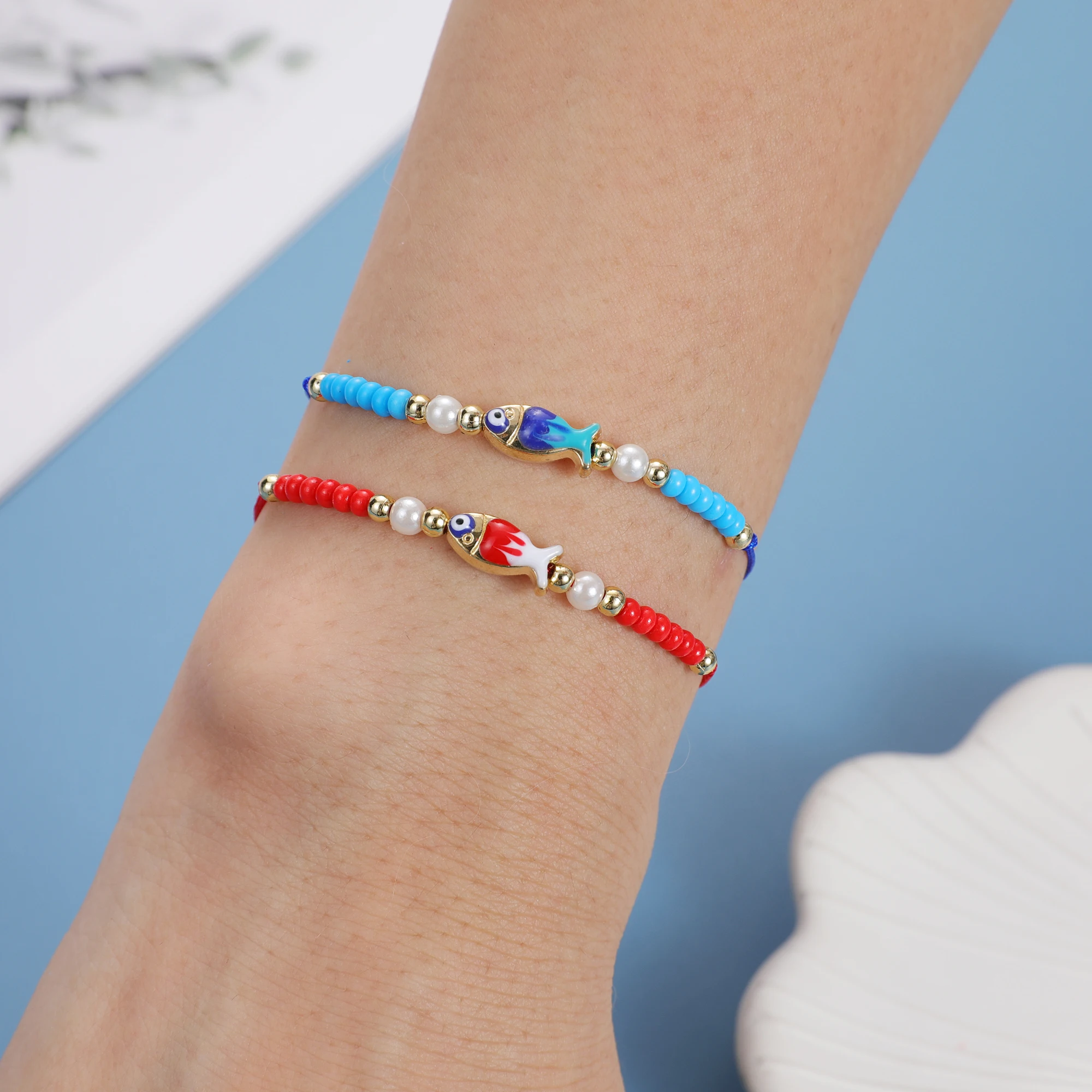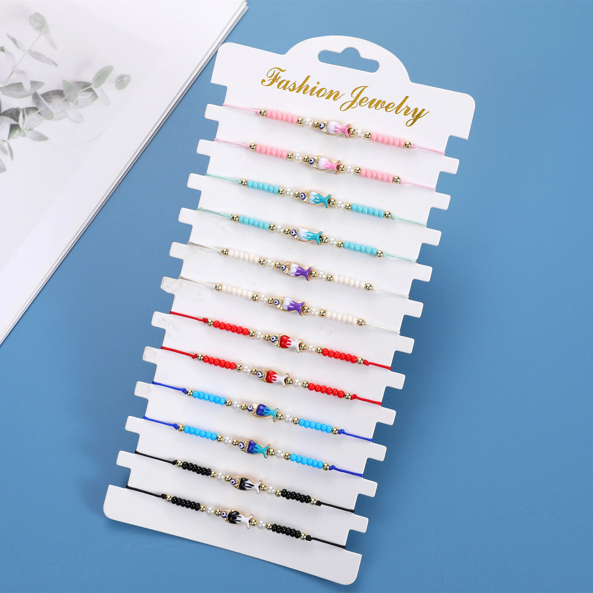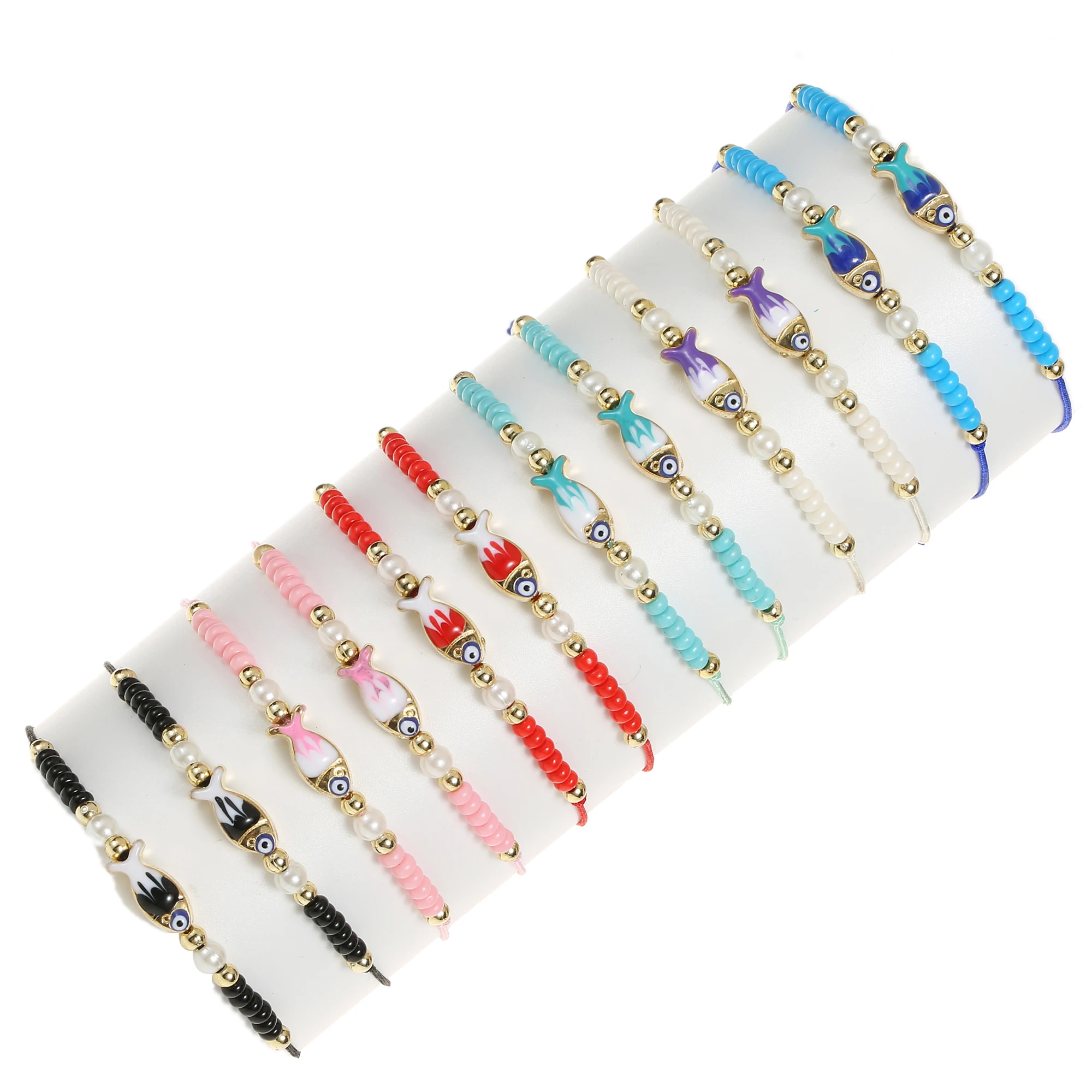 12 Pieces Girls Bracelets Adjustable Cute Fish Animal Friendship Bracelet Jewelry for Kid Party Favor Adjustable Pearl Bracelet