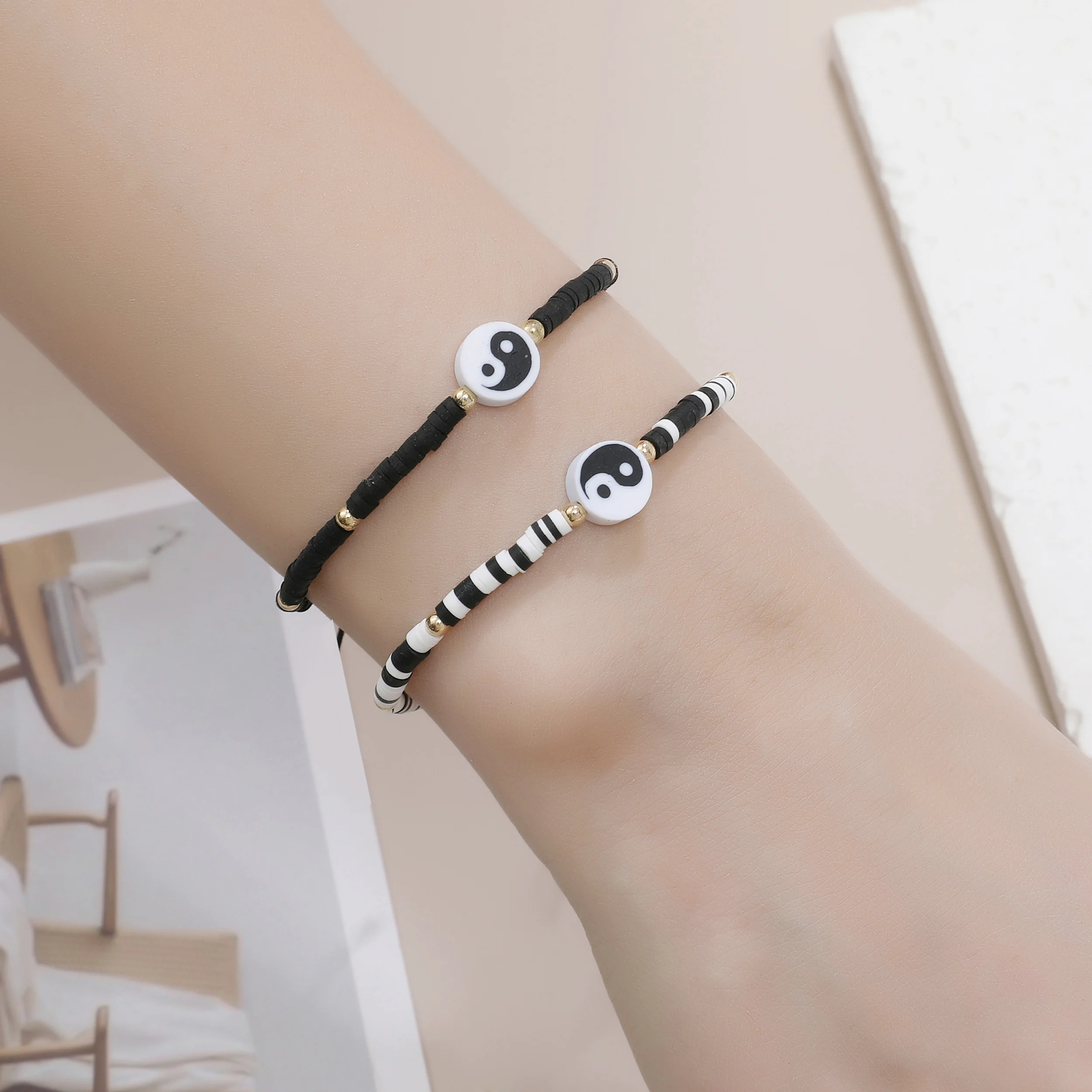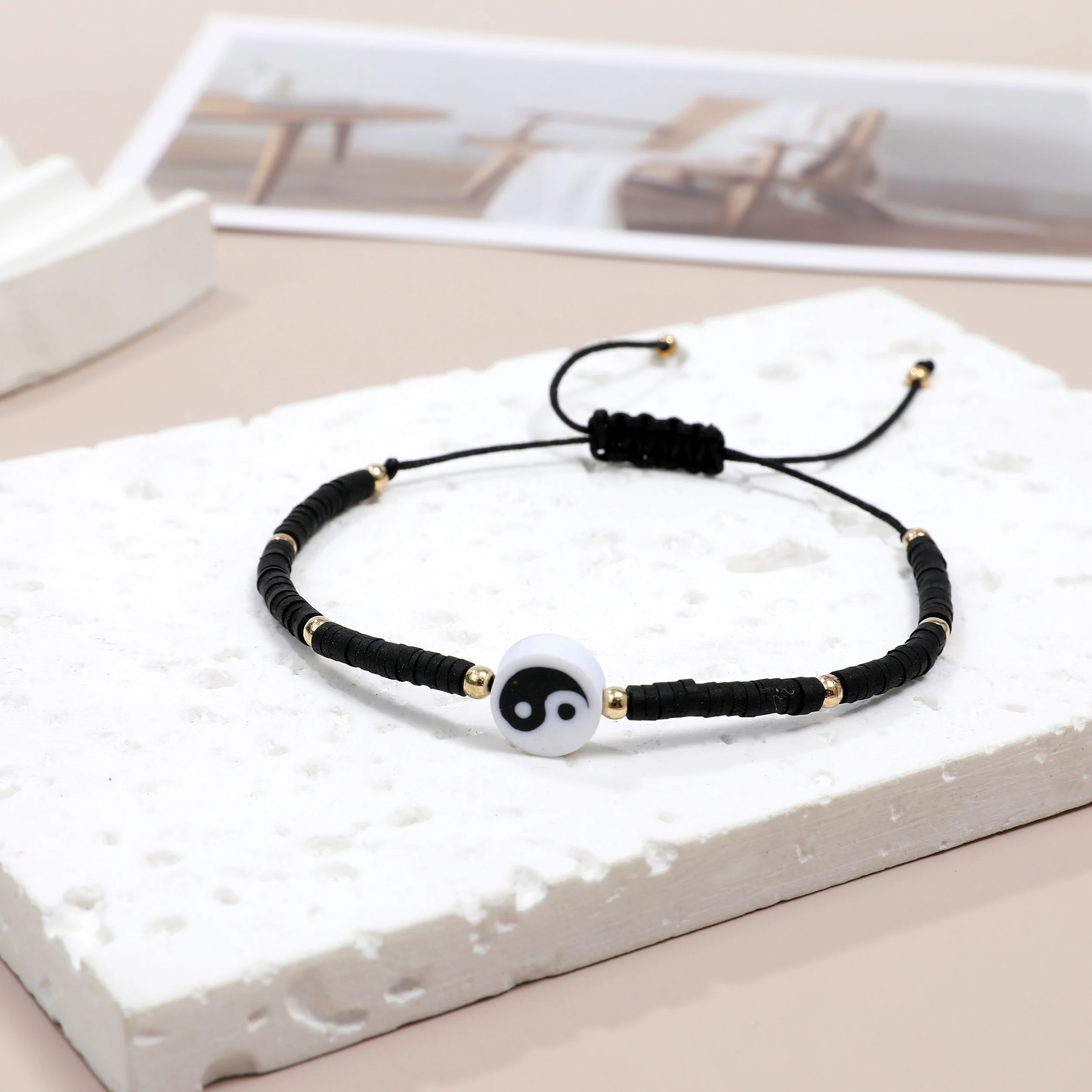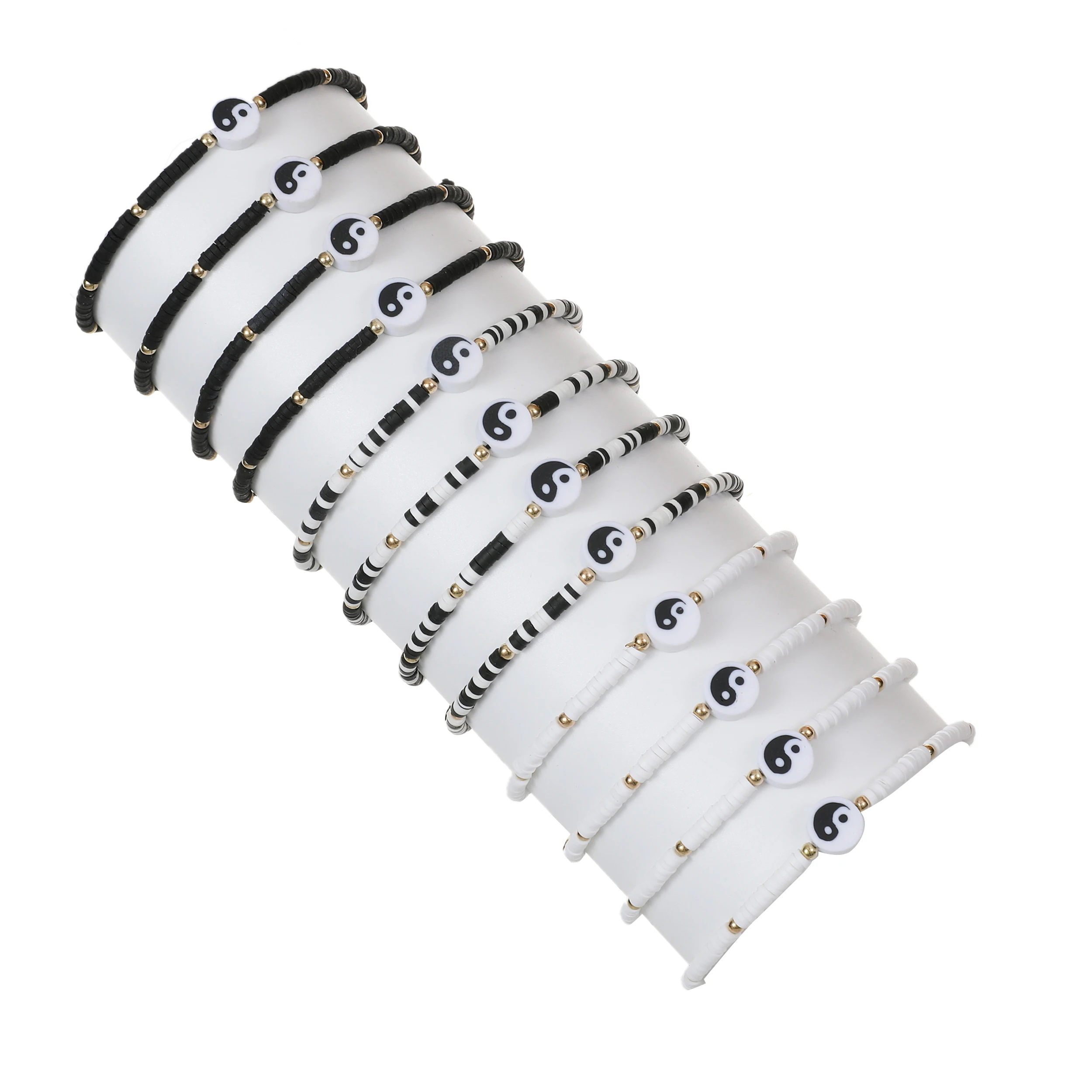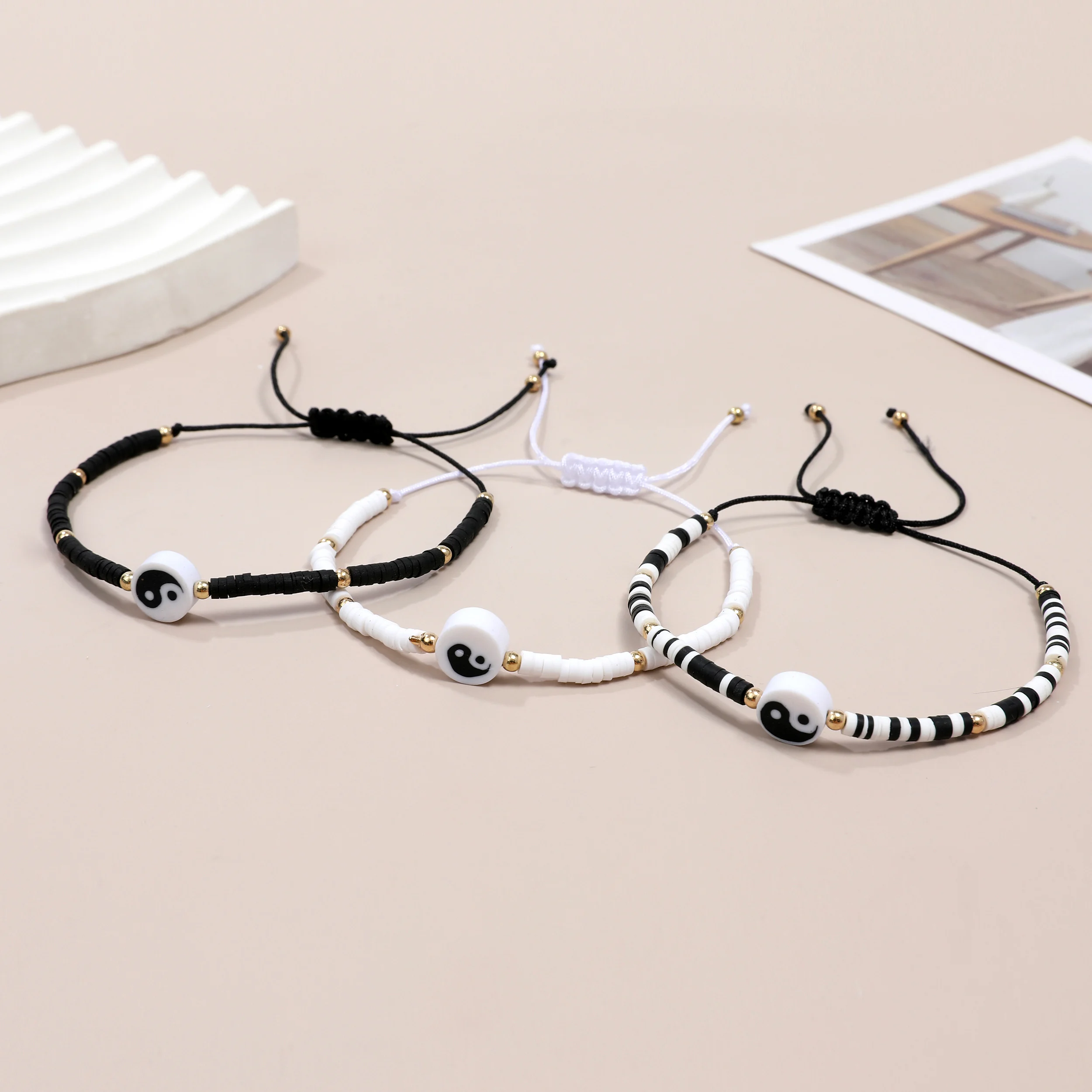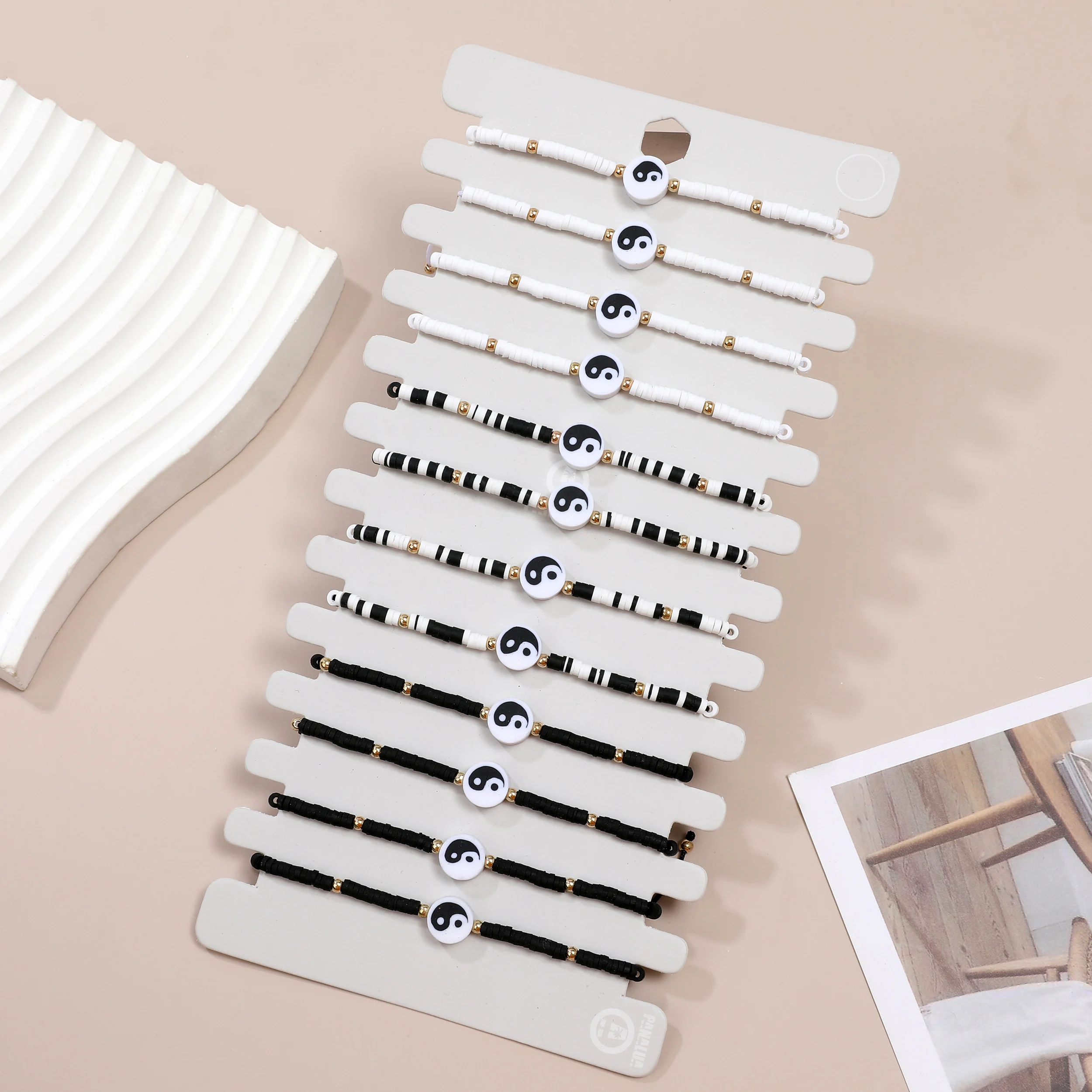 12pcs Black/White Tai Chi Yin Yang Pendant Bracelets for Women Men Traditional Style Handwoven Bracelet Friendship Gift