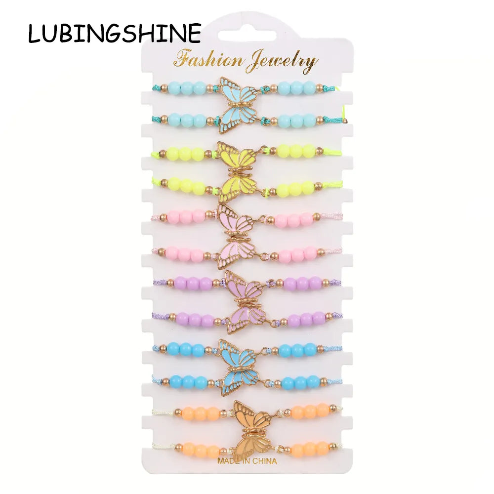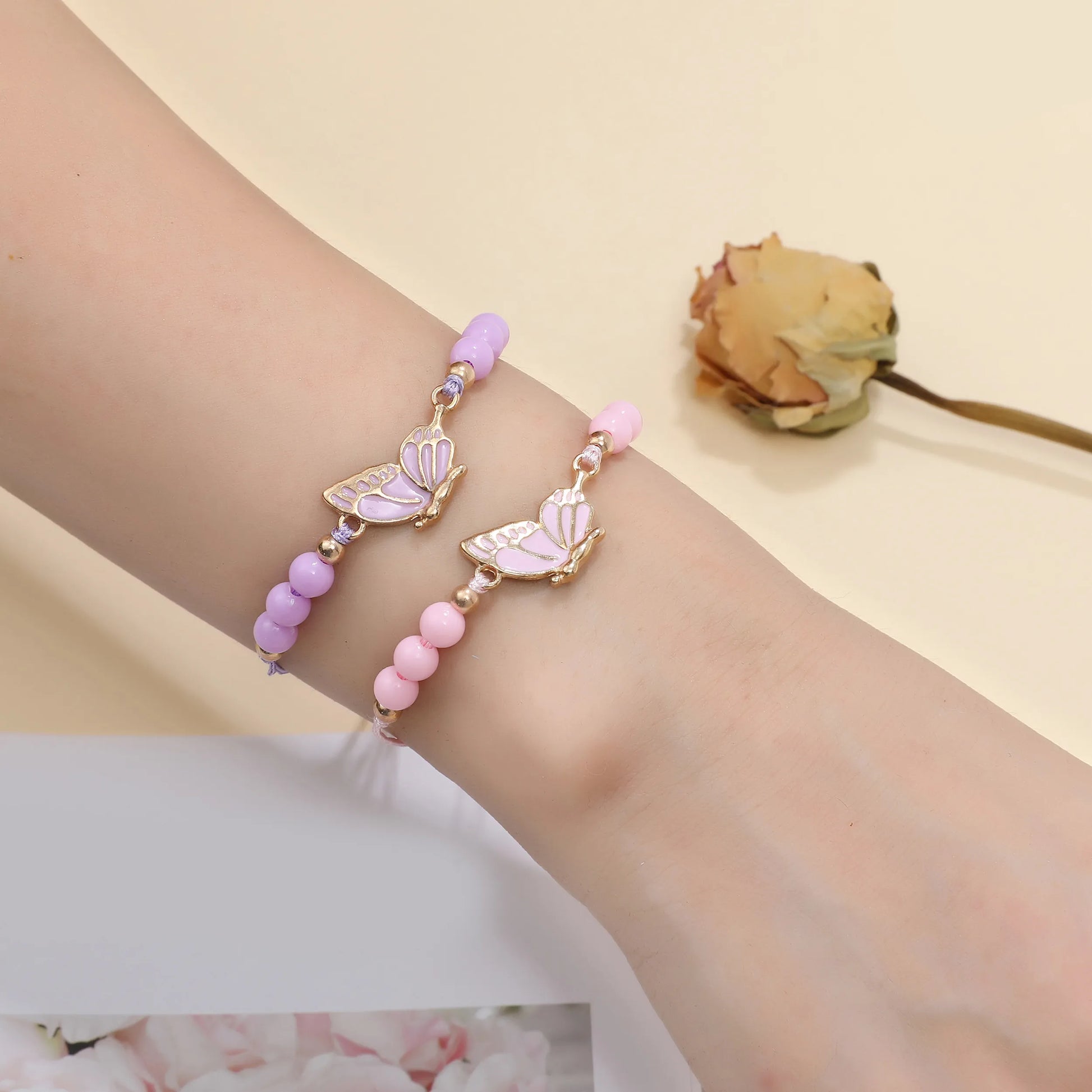 12pcs Color Painted Oil Butterfly Pendant Friendship Woven Bracelet for Women Men Adjustable Hand Woven Couple Jewelry
