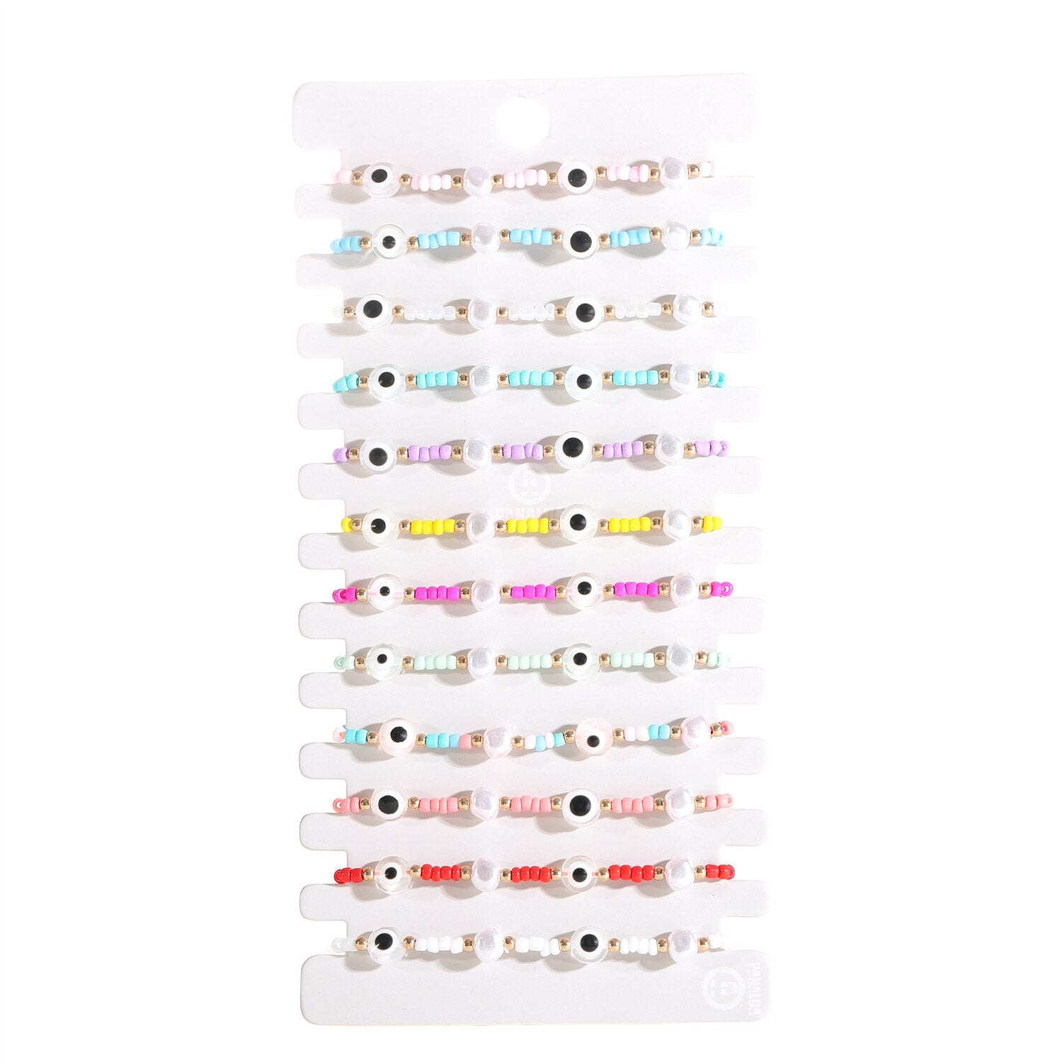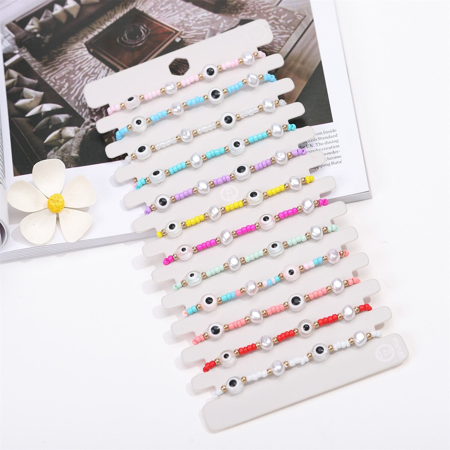 12pcs Evil Eye Pearl Charms Braided Bracelets for Women Child Seed Beads Adjustable Rope Chain Anklets Beach Handmade Jewelry