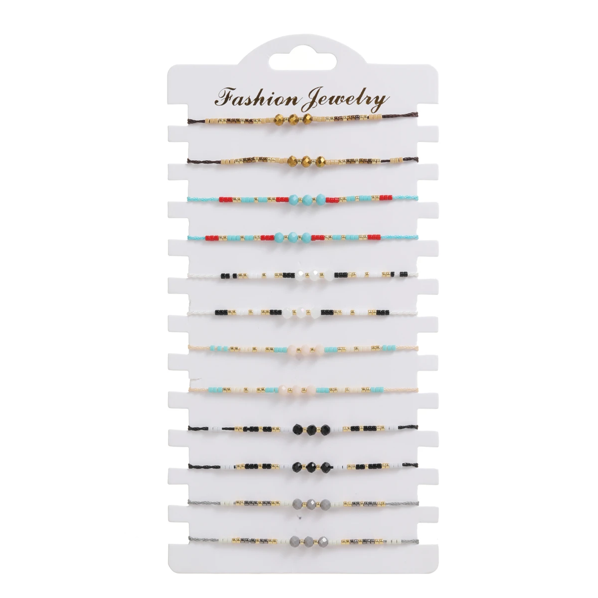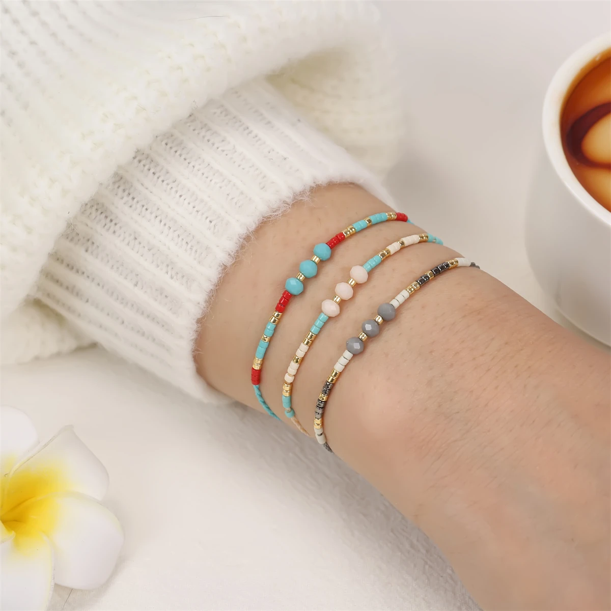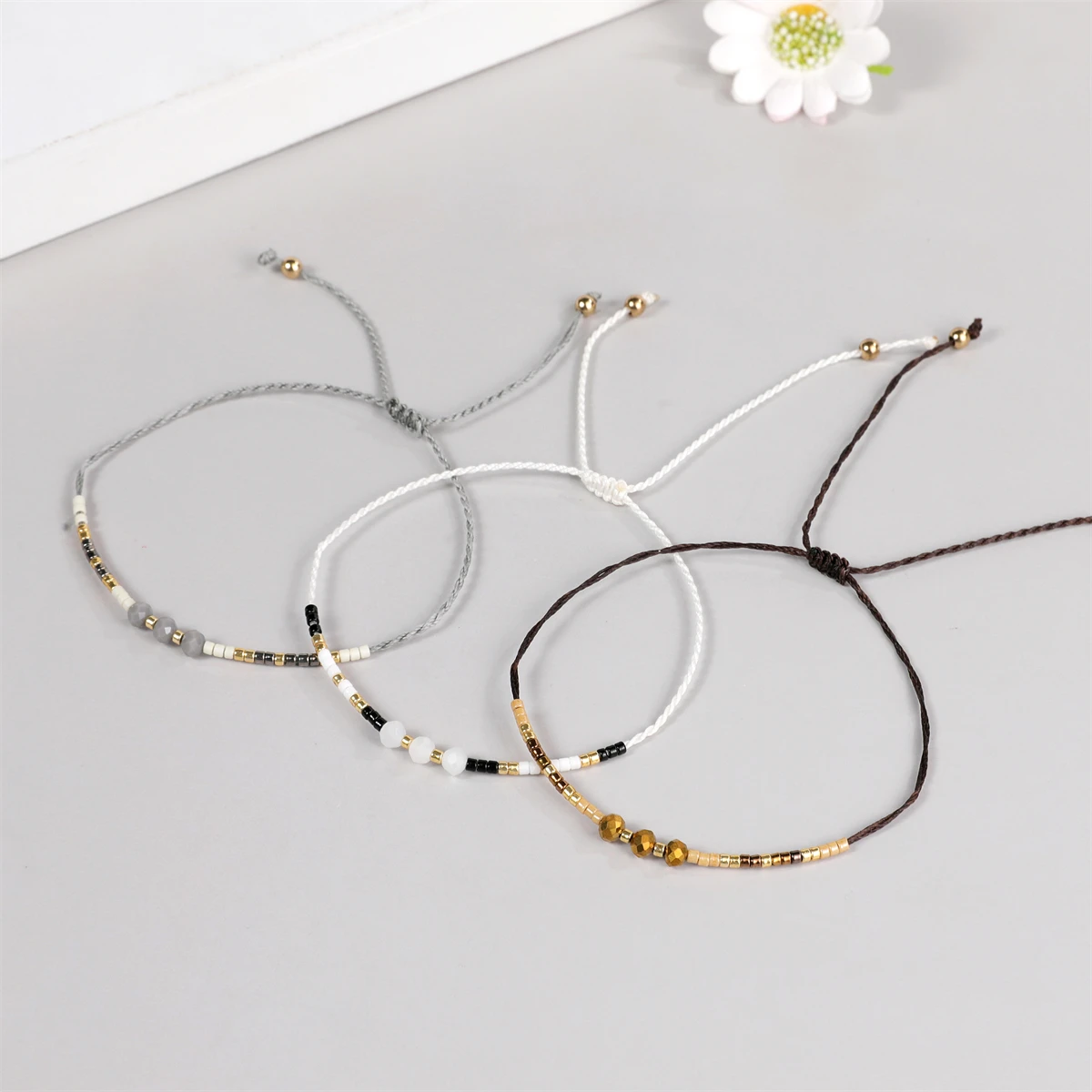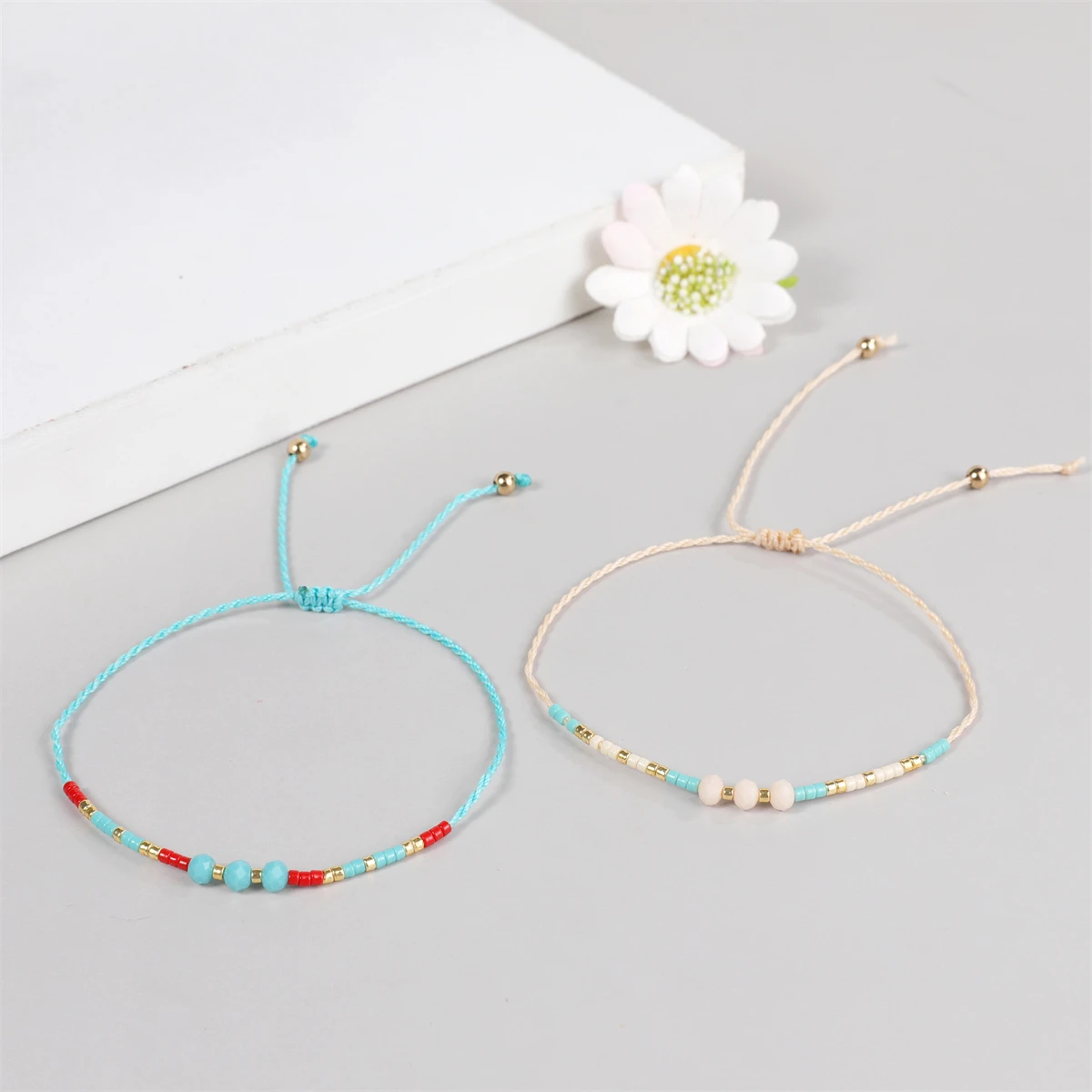 12Pcs Faceted Crystal Seeds Beaded Pearl Braceles Anklets Adjustable Braided Wax Rope Chain Wristband Cuff Boho Jewelry