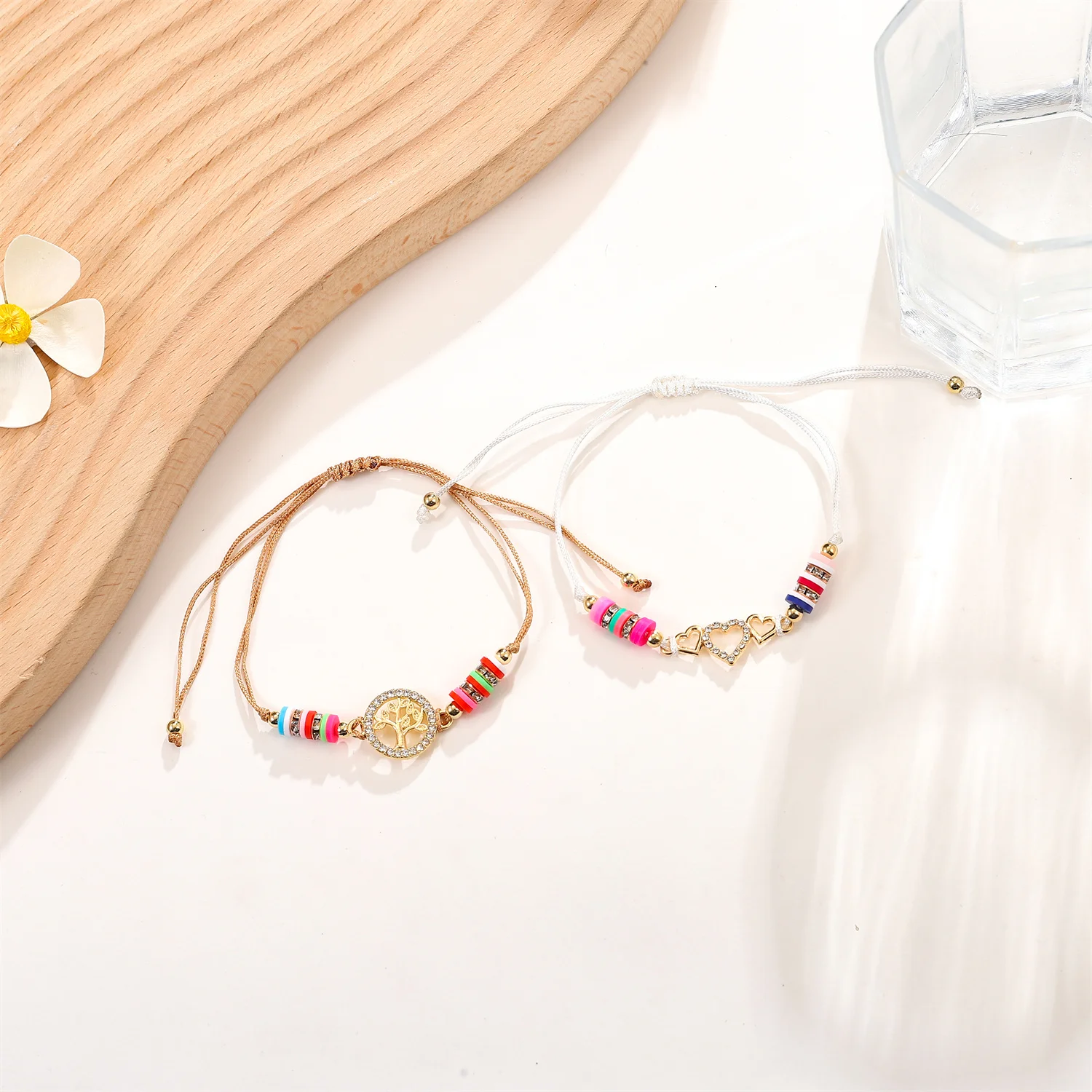 12pcs Flamingo Heart Pendant Braided Charms Bracelets for Women Adjustable Rope Chain Anklets Beach Handmade Jewelry