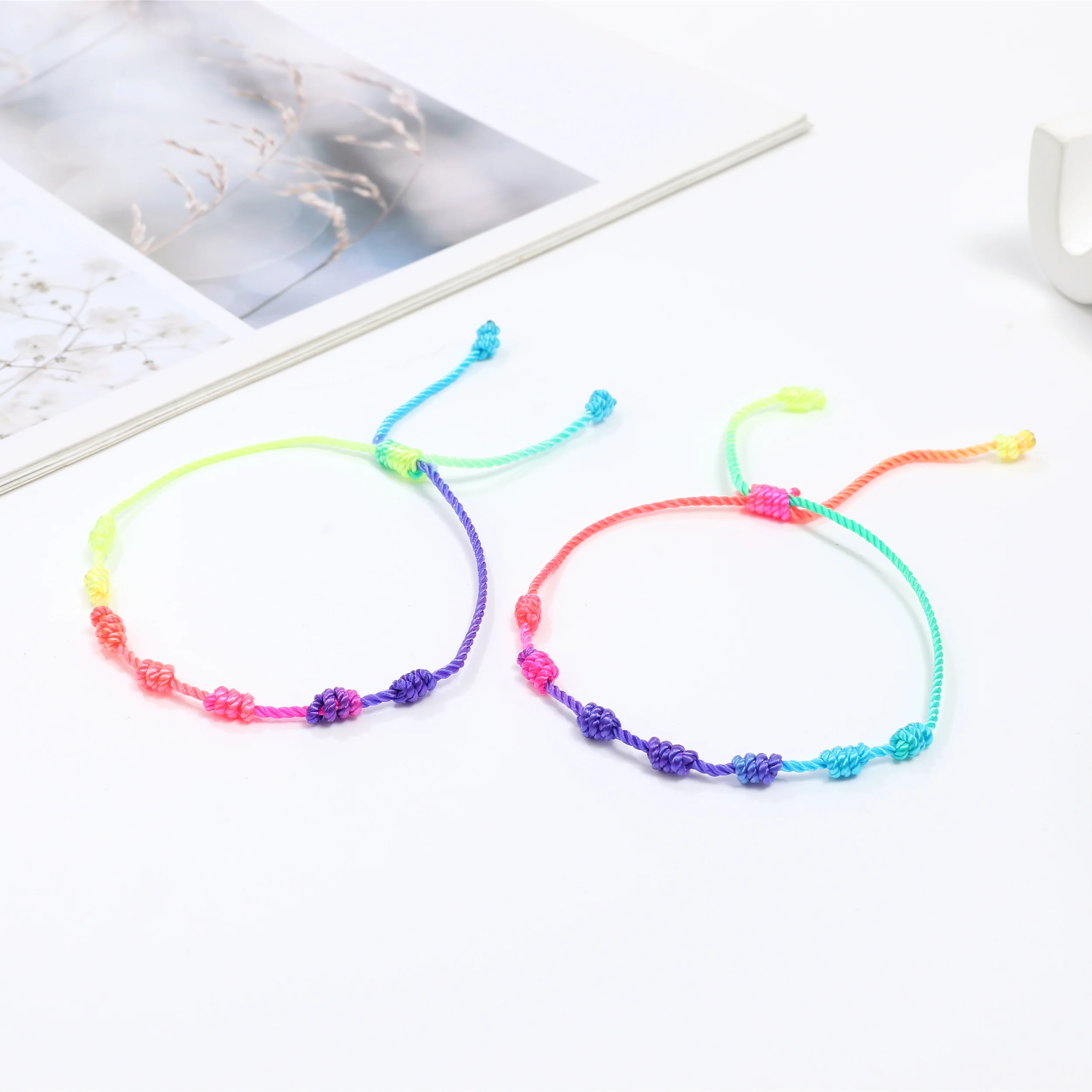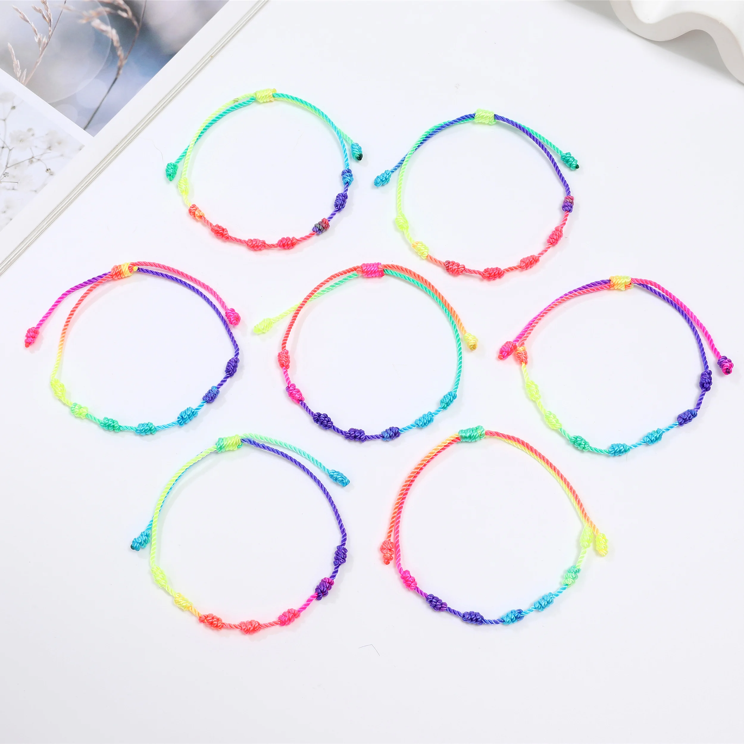 12pcs Handmade Colorful 7 Knots Rope Bracelet Unisex Adjustable Braided Rope Charm Friendship Bracelet Jewelry Gift Wholesale