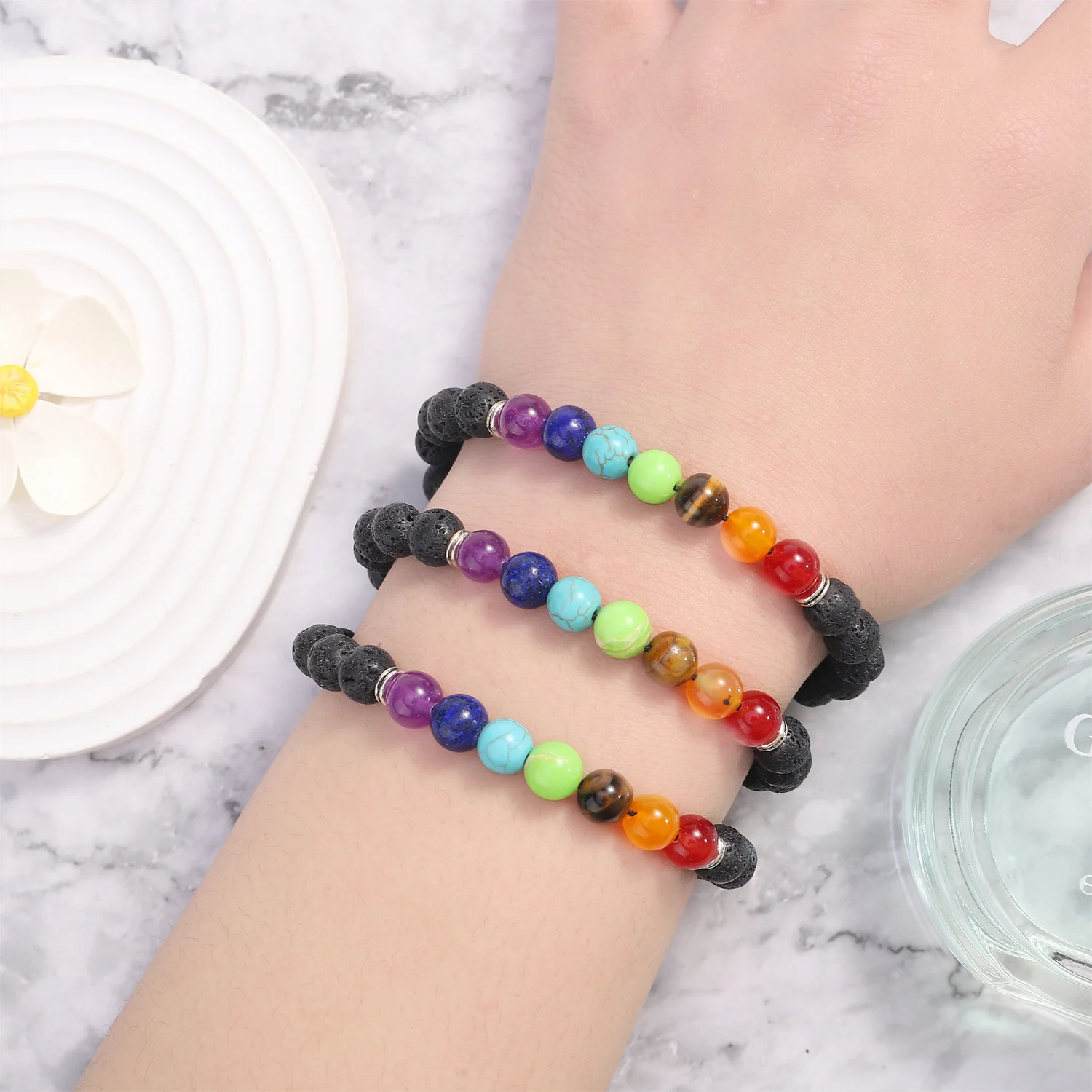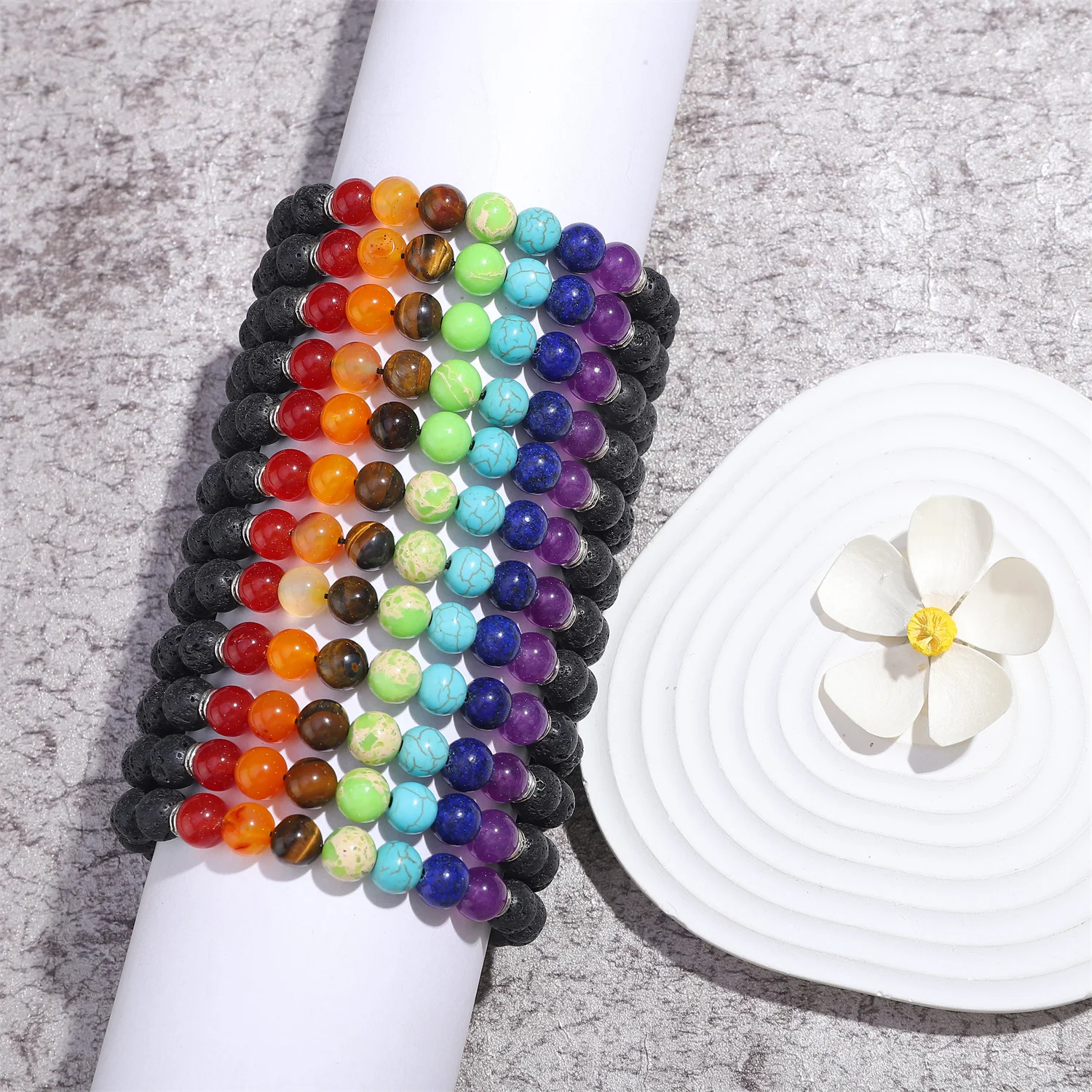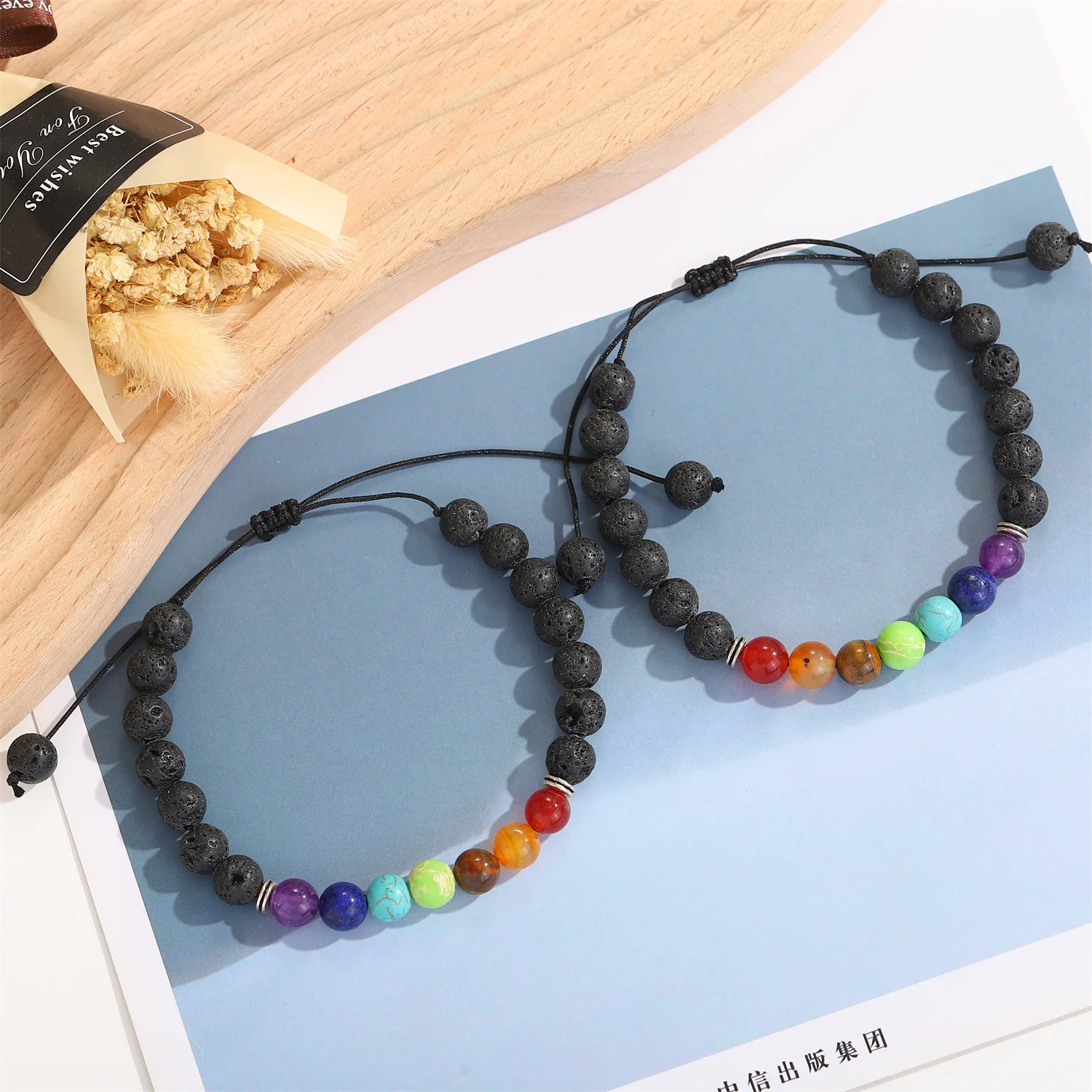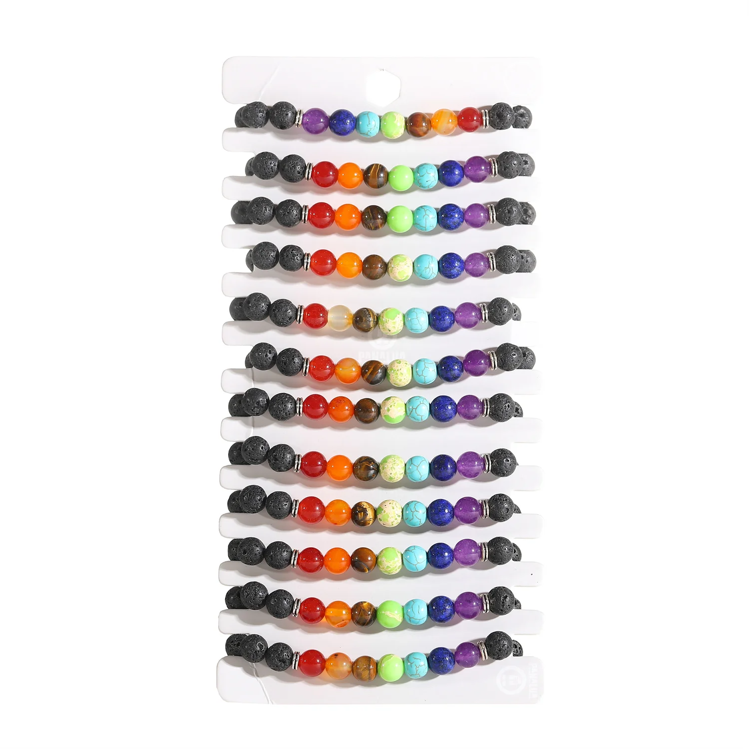 12pcs/lot 7 Chakra Healing Bead Bracelet Volcanic Rock Natural Stone Mala Pendant Buddha Balance Bracelets for Women Men Jewelry