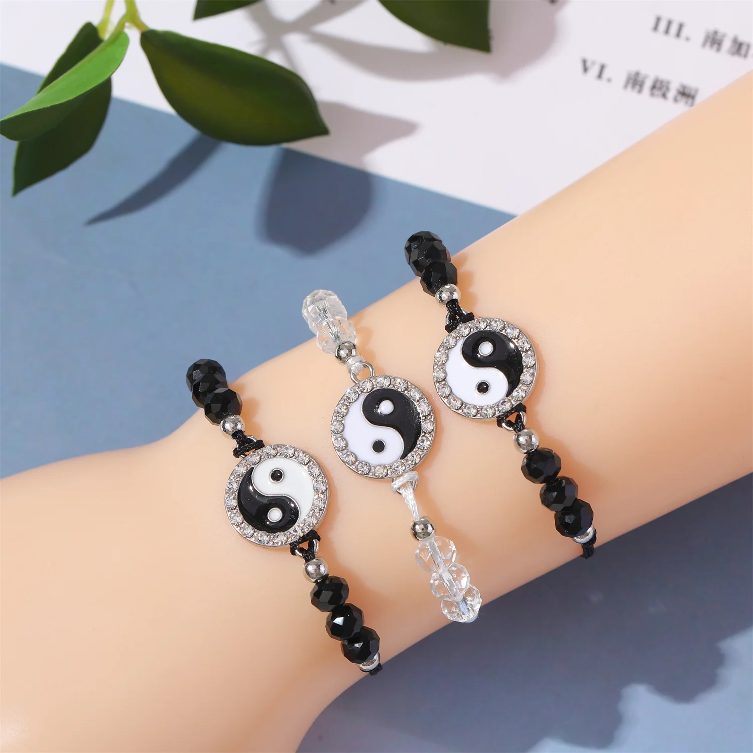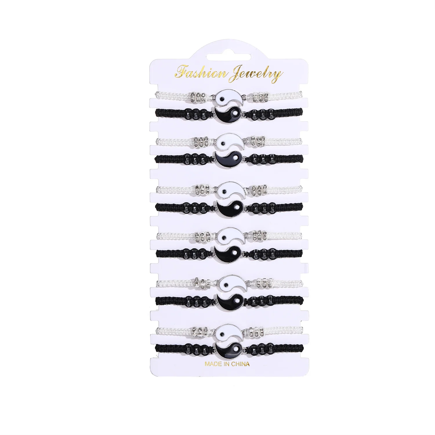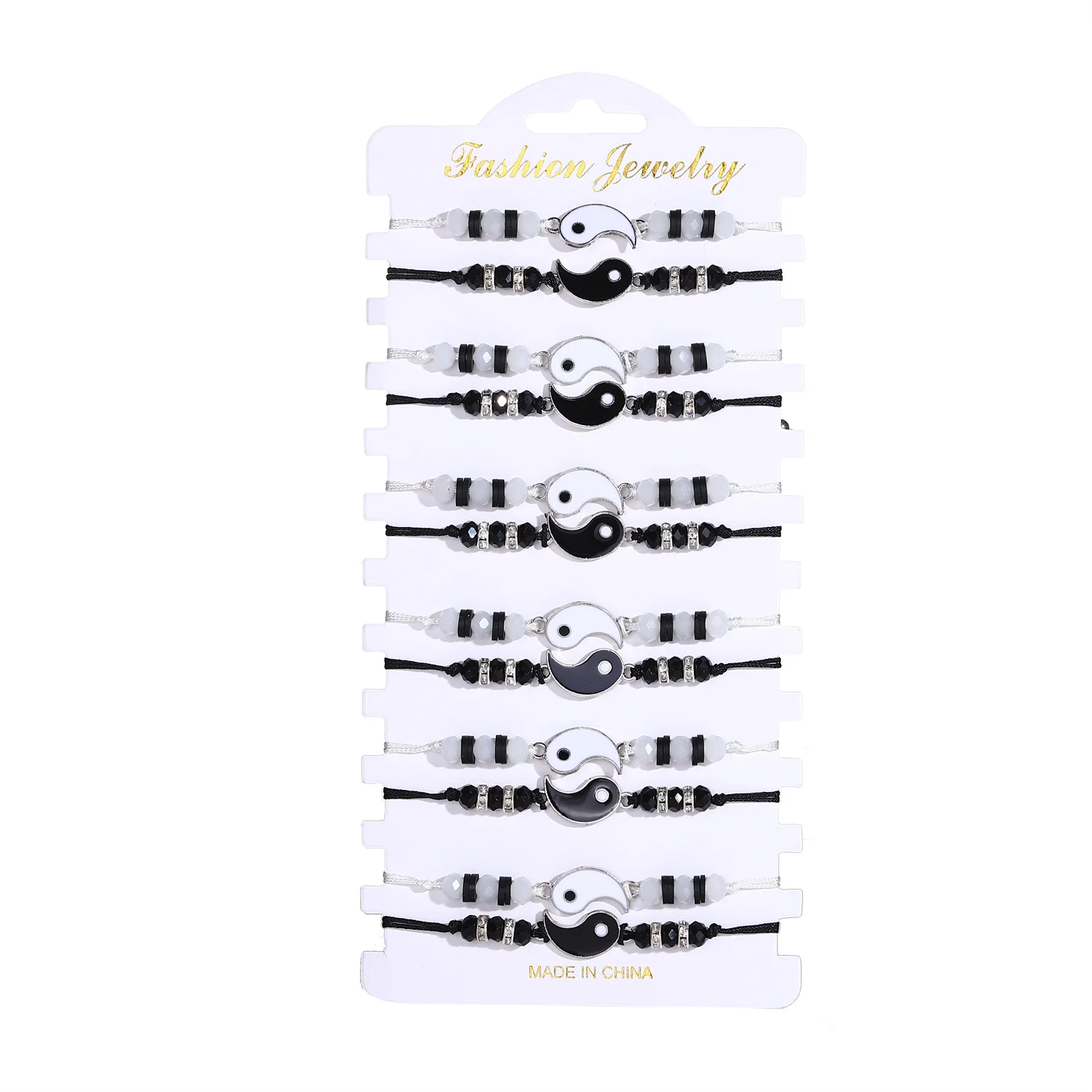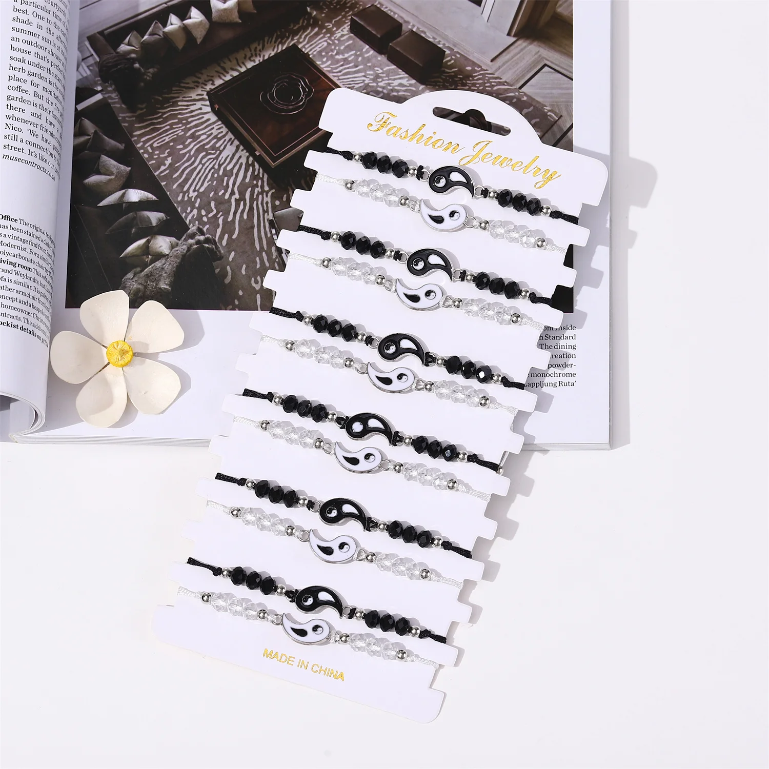 12pcs/Lot Black/white Yin and Yang Tai Chi Pendant Bracelets for Women Crystal Beads Chain Braid Rope Anklet Amulet Jewelry