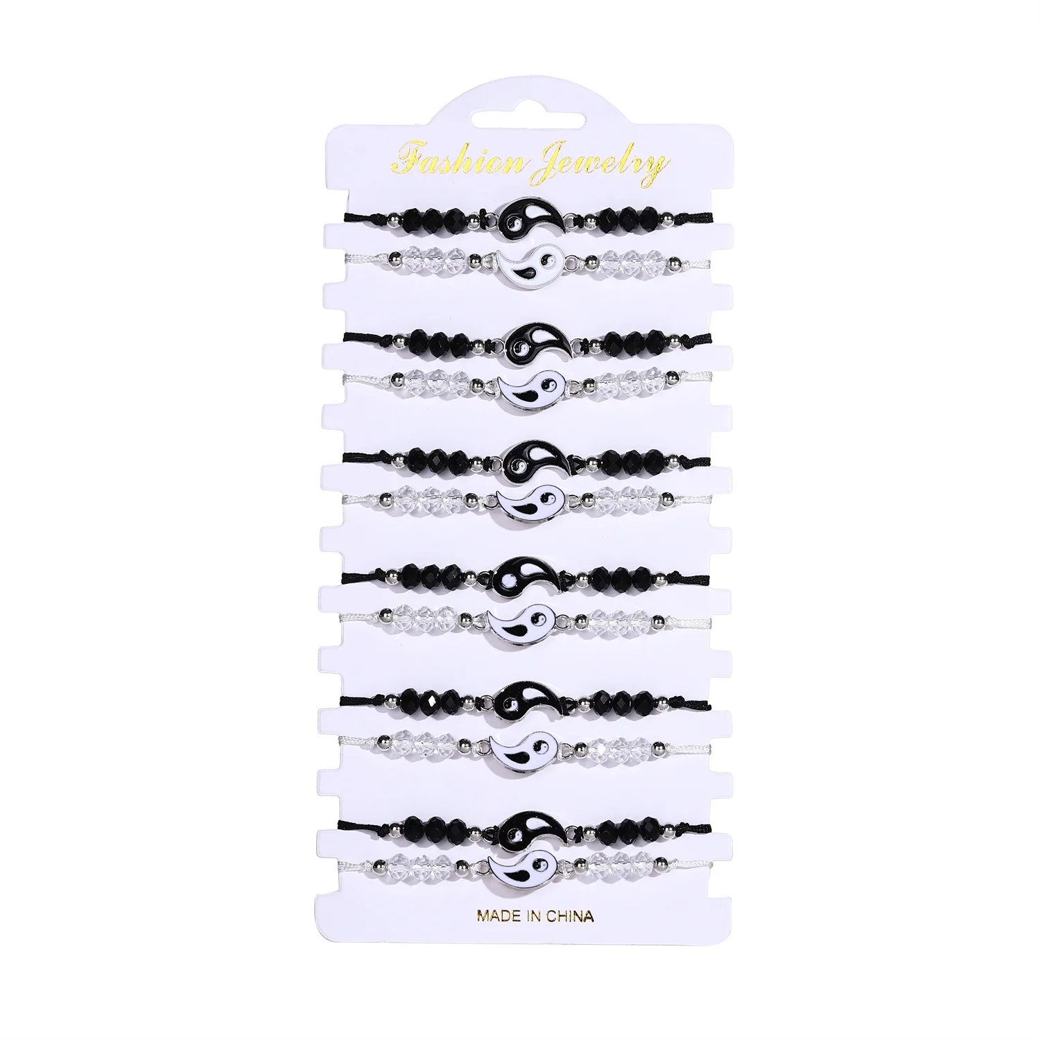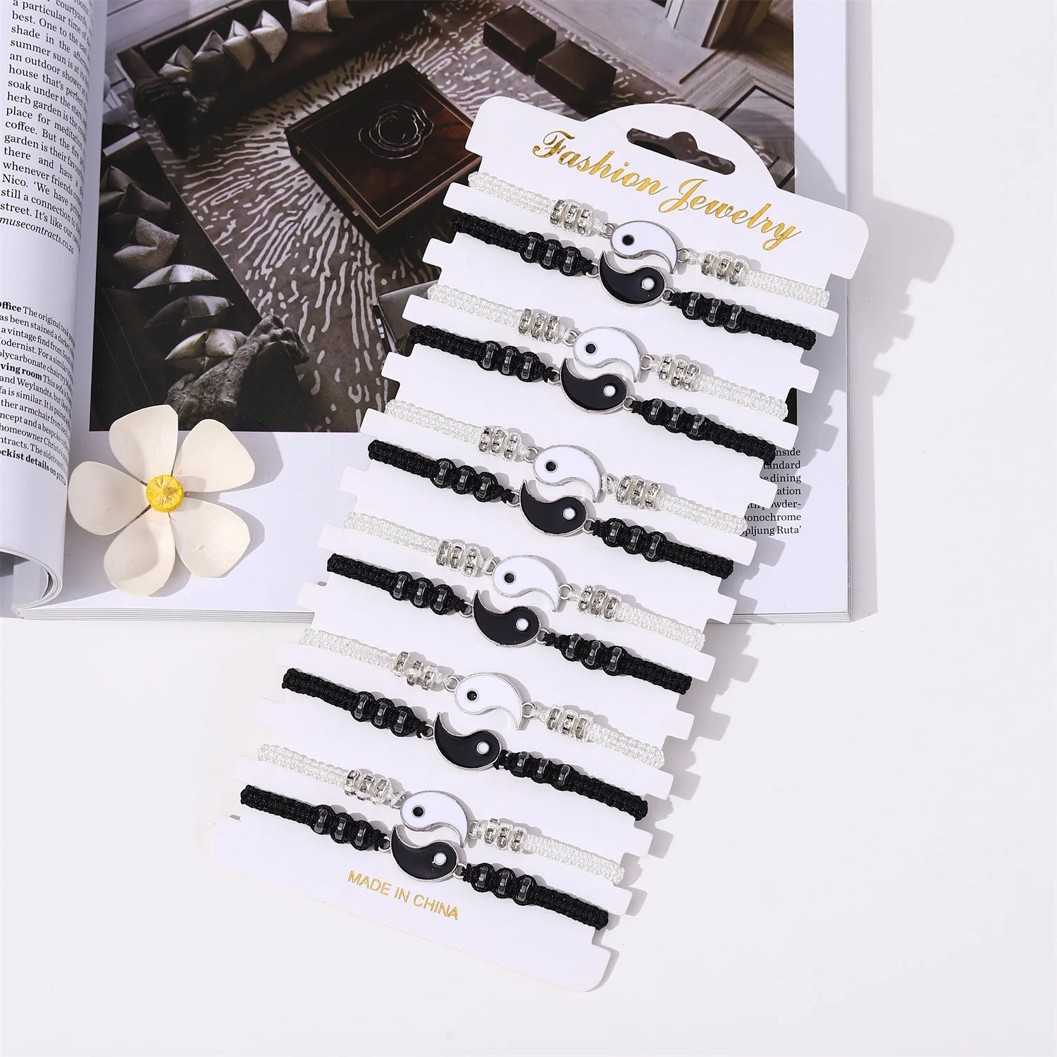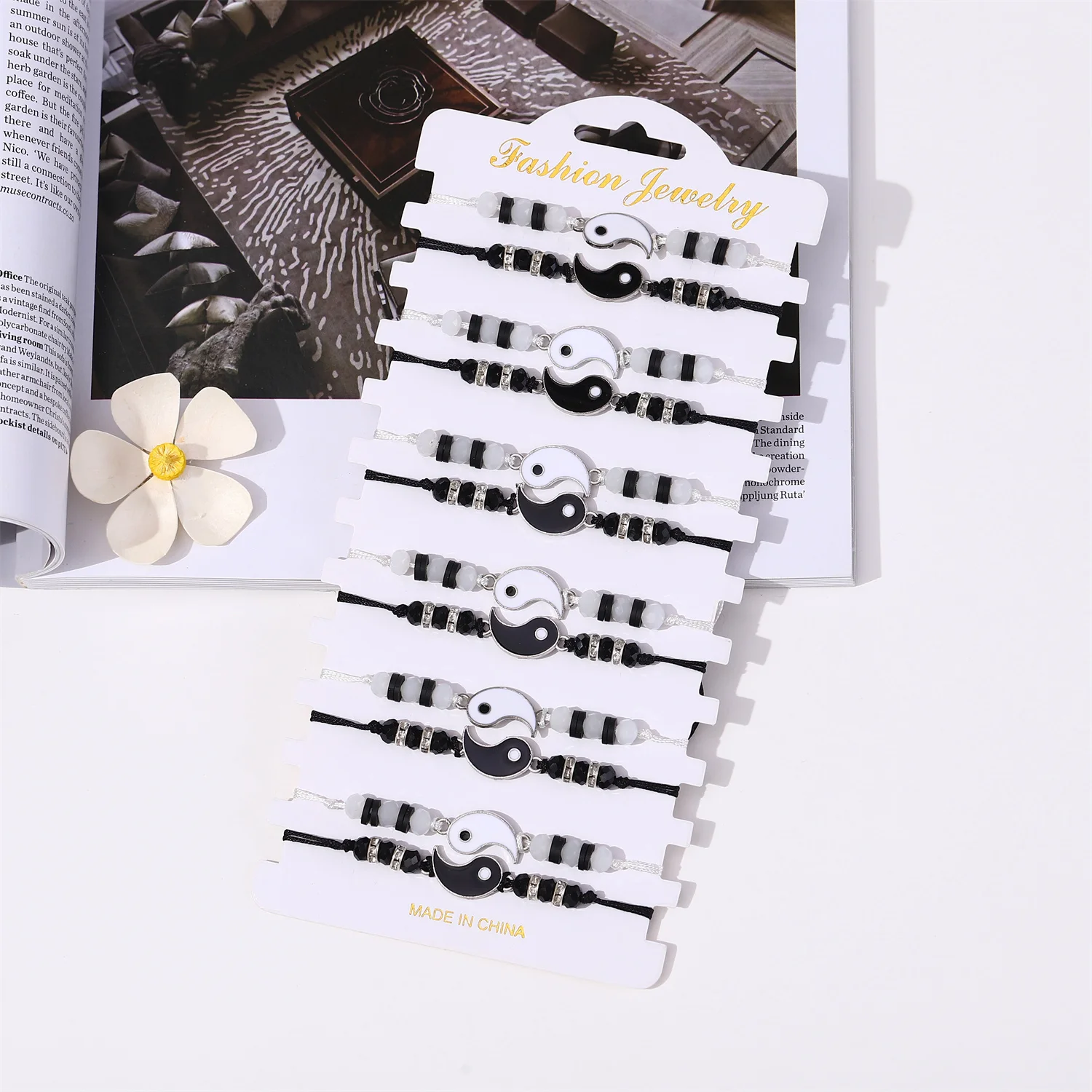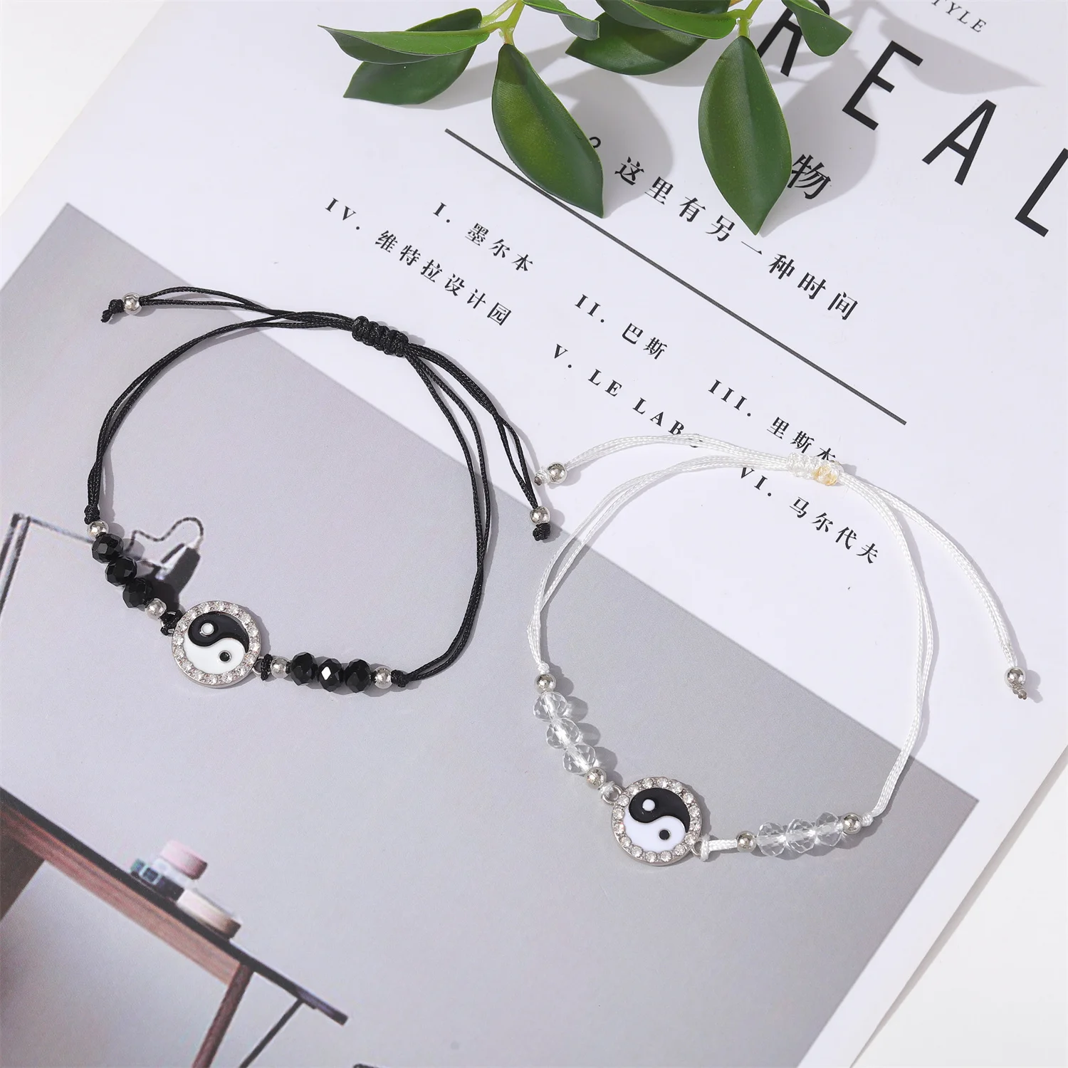 12pcs/Lot Black/white Yin and Yang Tai Chi Pendant Bracelets for Women Crystal Beads Chain Braid Rope Anklet Amulet Jewelry