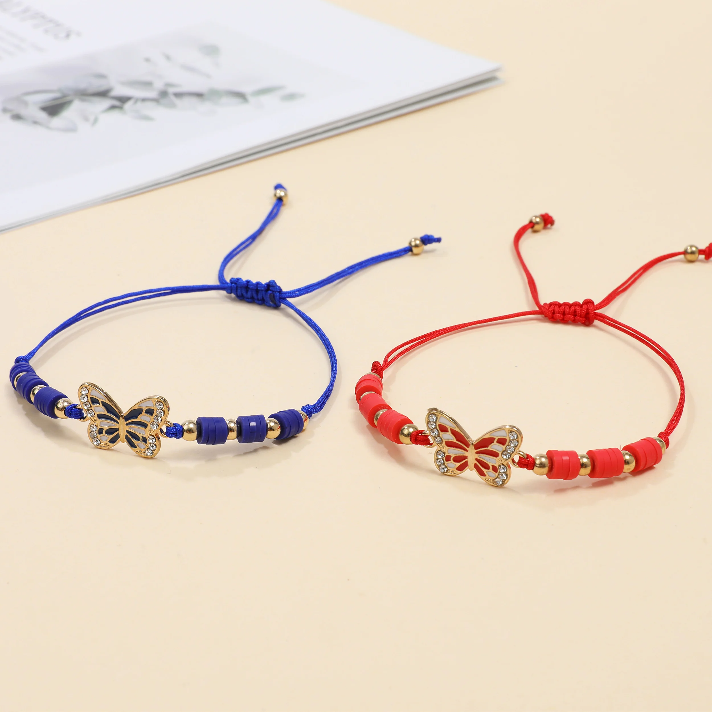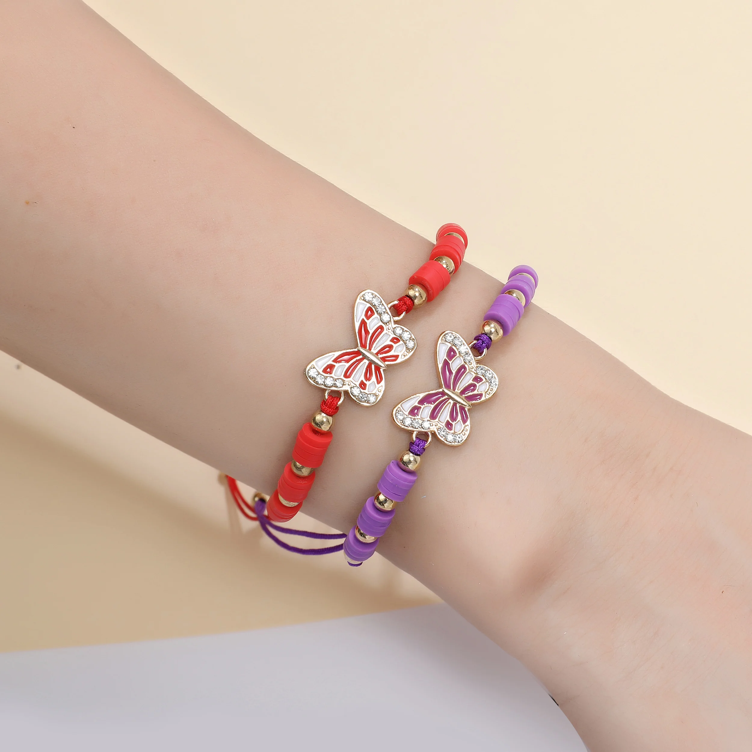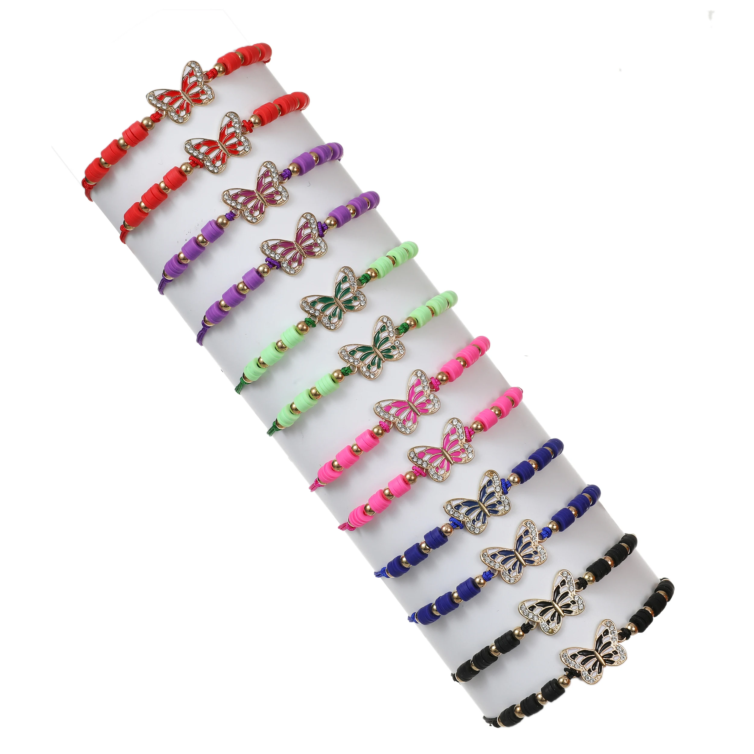 12pcs/lot Butterfly Pendant Braided Bracelets for Women Animal Colored Polymer Clay Adjustable Woven Rope Bohemia Jewelry