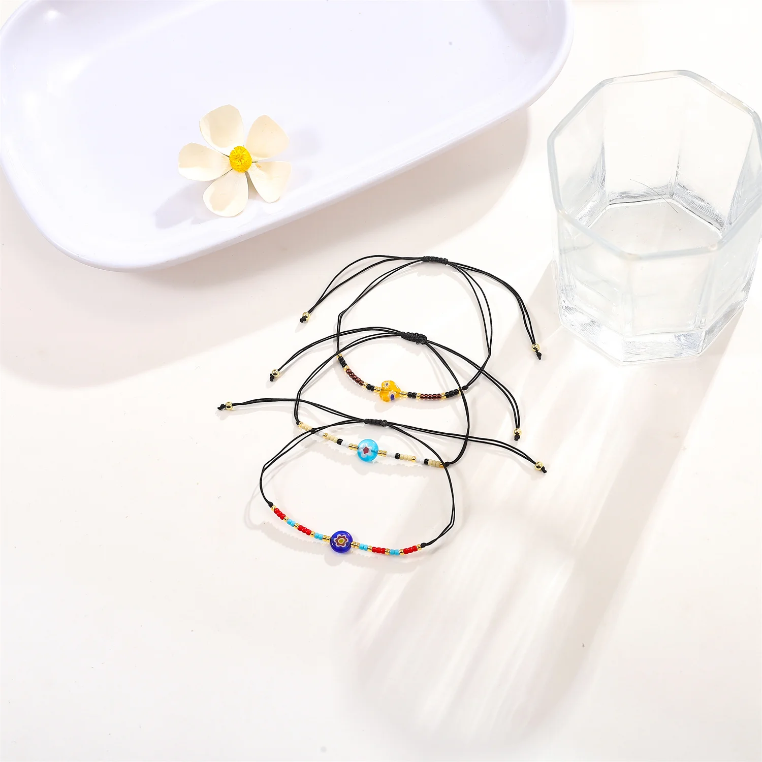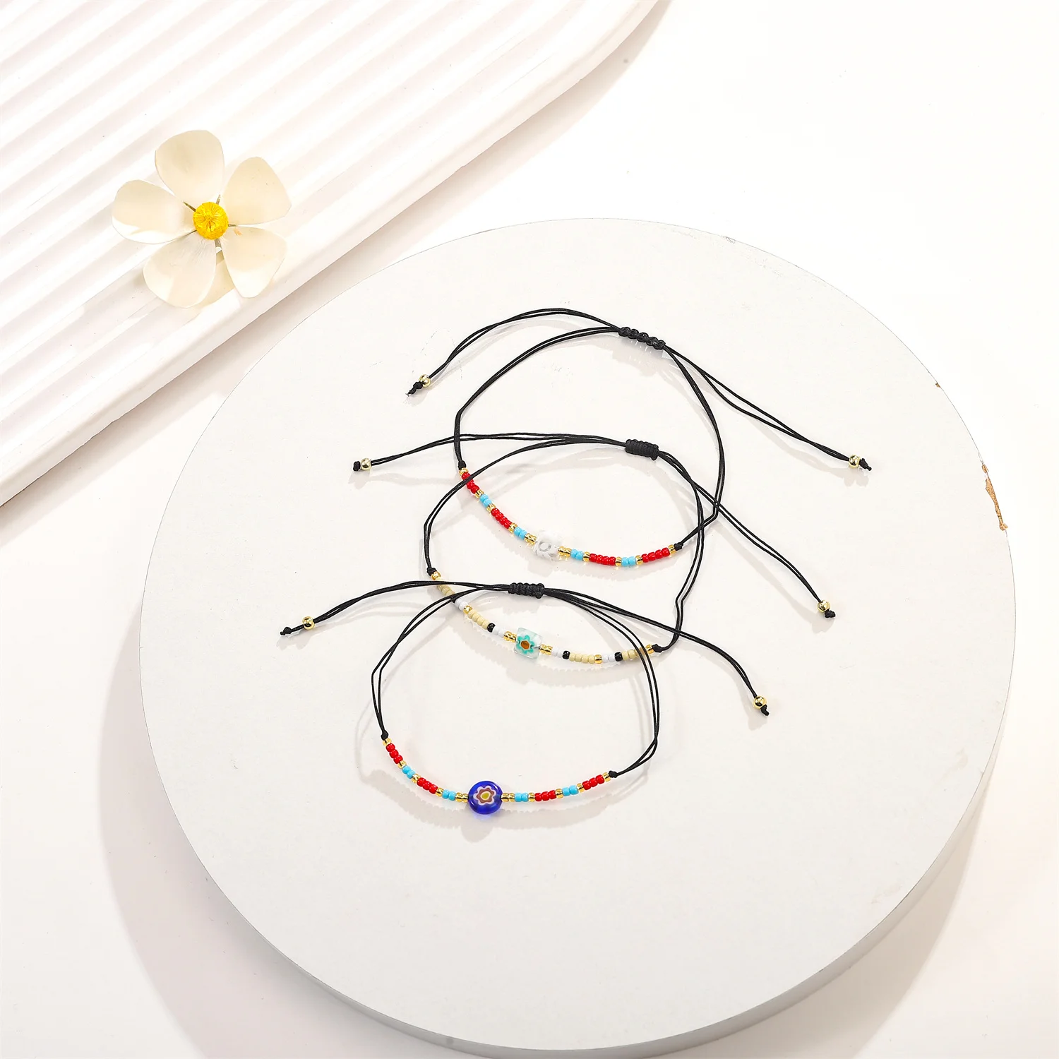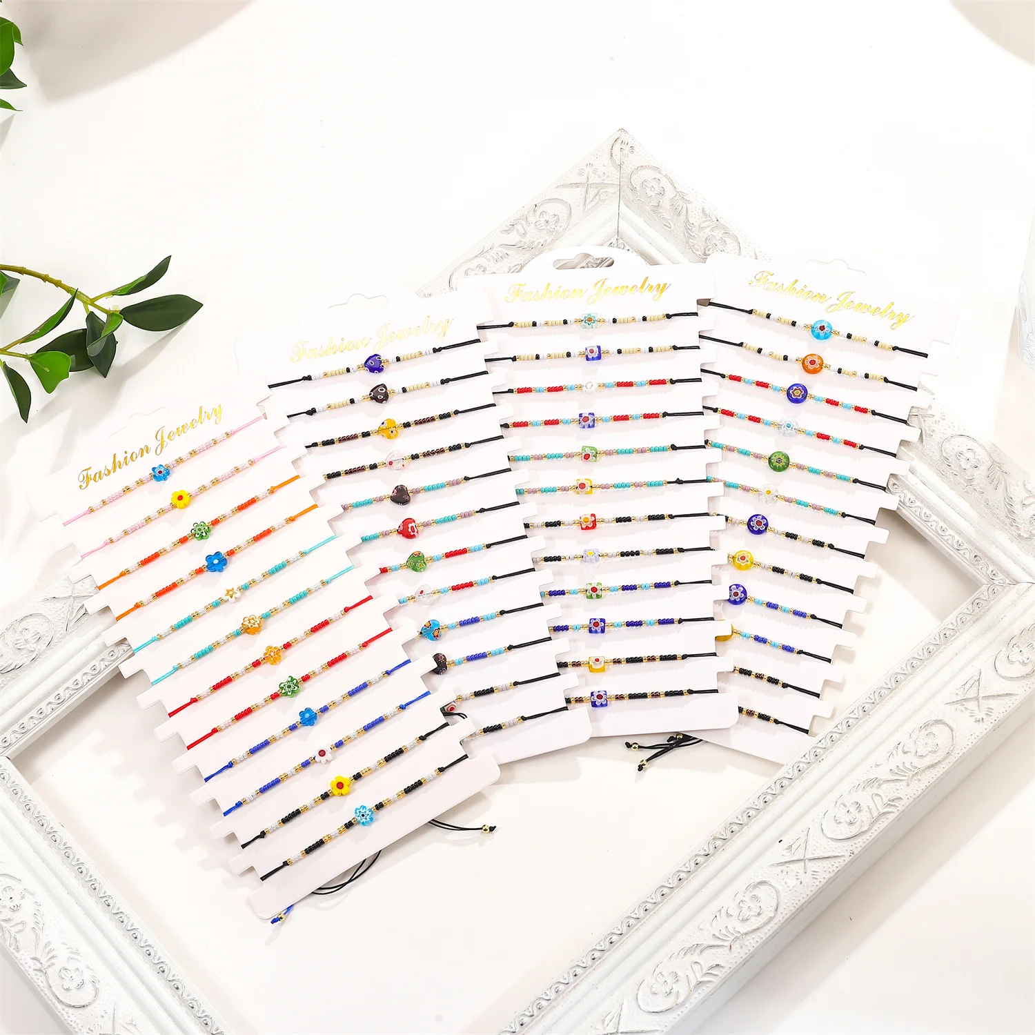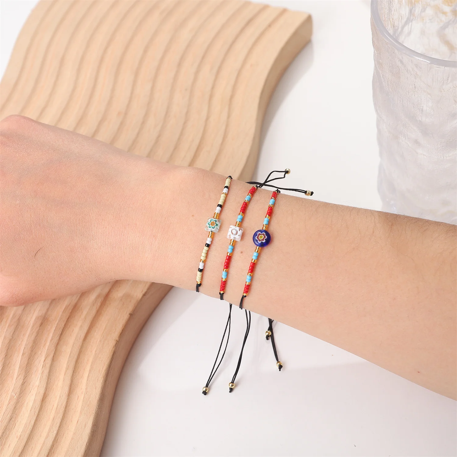 12pcs/lot Cute Flowers Bracelet Crystal Seed Bead Couple Braided Adjustable Rope Chain Bracelets for Women Friendship Jewelry