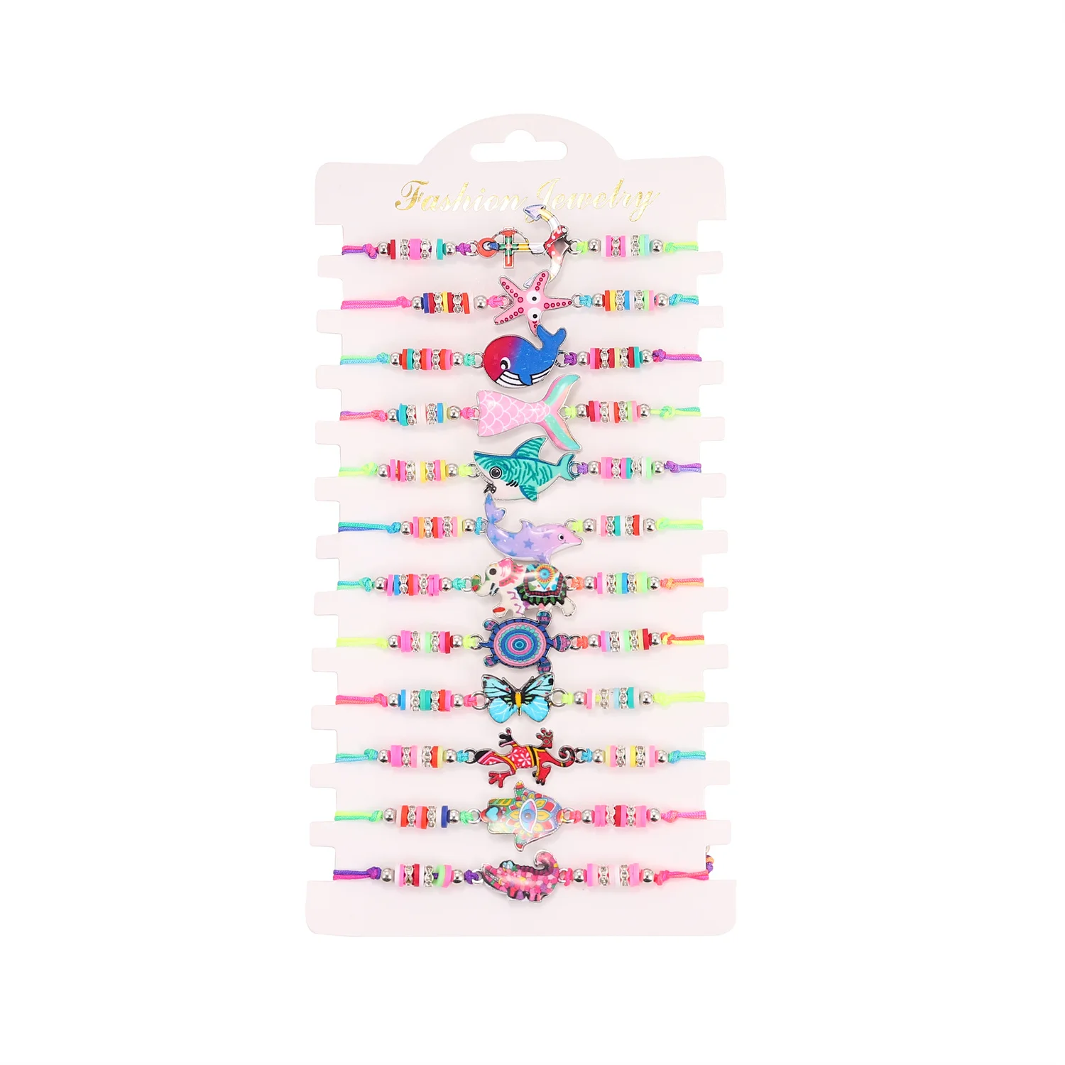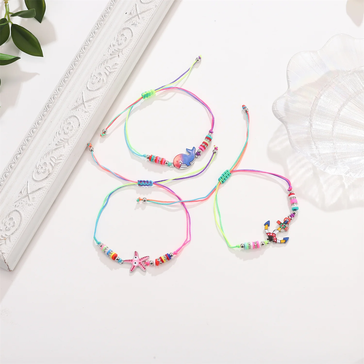12pcs/lot Women Soft Clay Bead Whale Turtle Butterfly Animal Charms Yoga Bracelets Braided Adjustable Rope Chain Anklet Jewelry