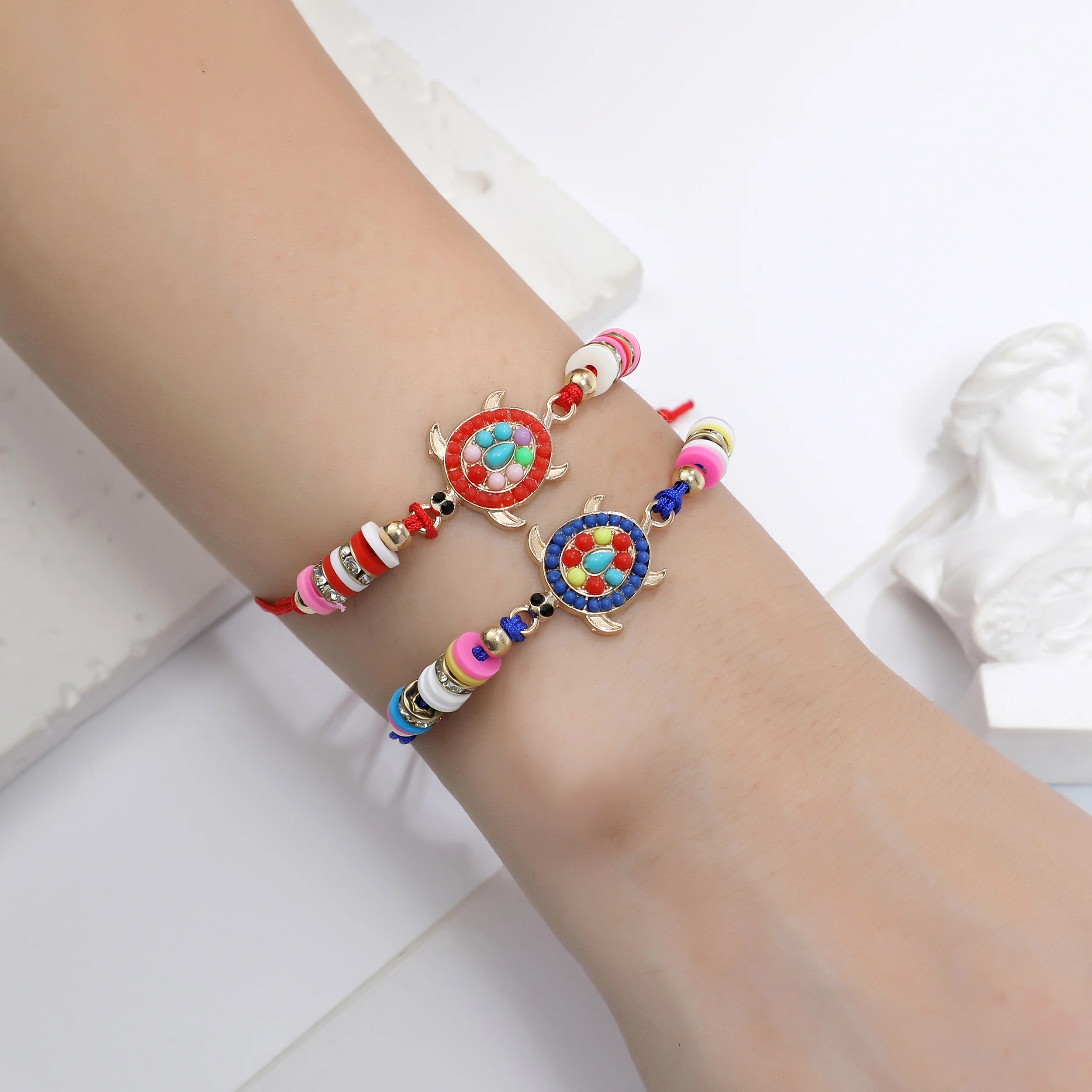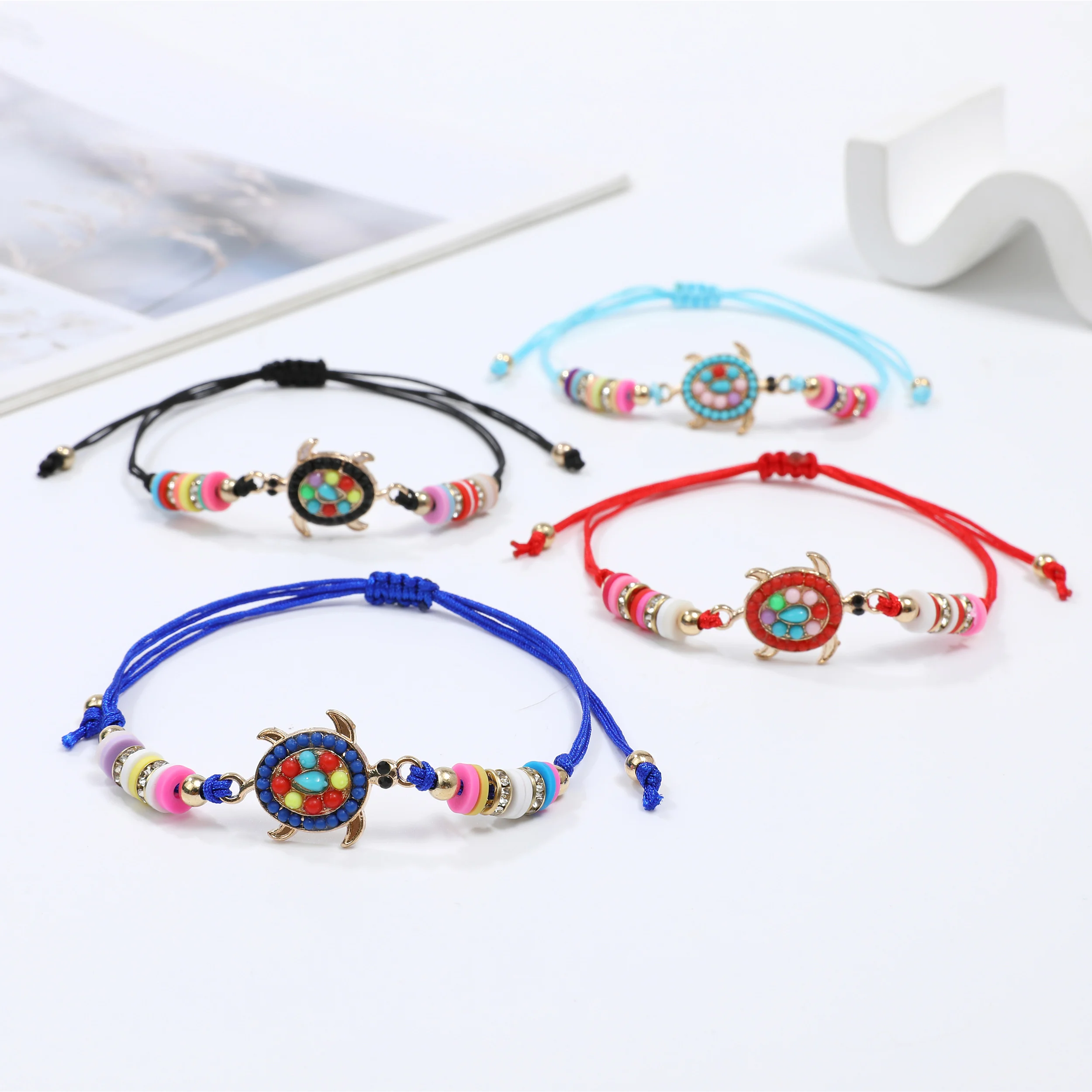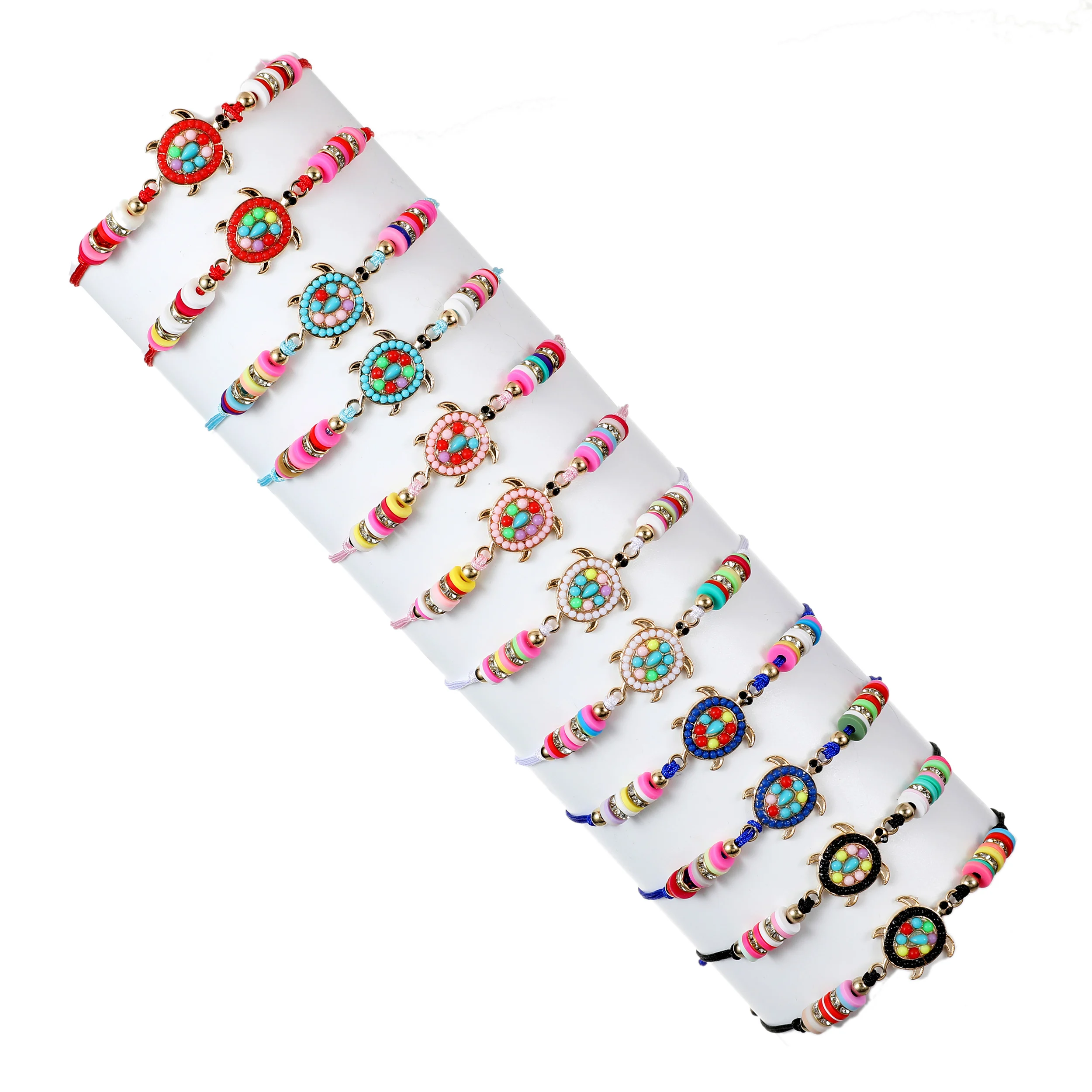 12pcs Polymer Clay Beads Colorful Turtle Pendant Bracelet Charms Braided Rope Chain Bracelet Yoga Jewelry Gifts
