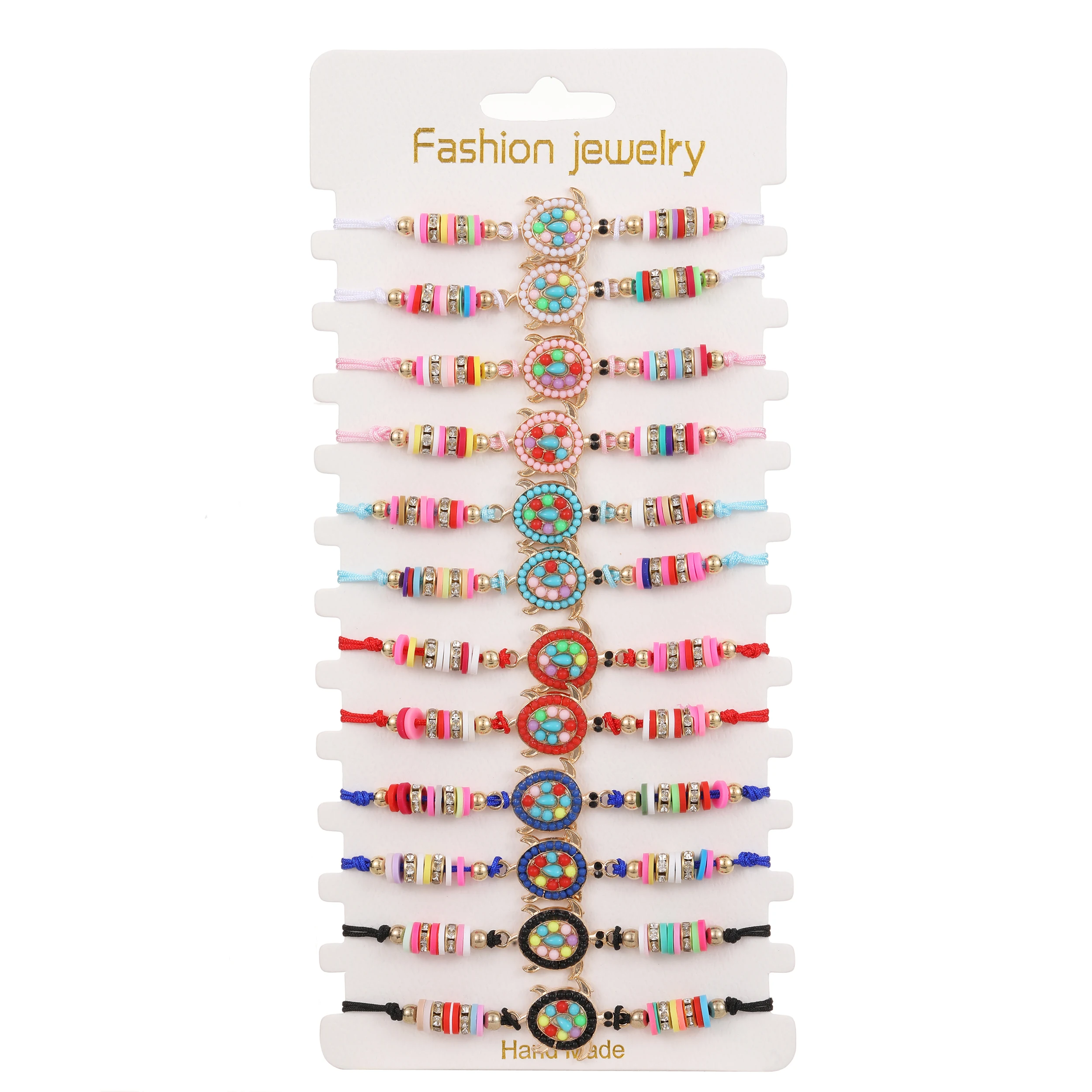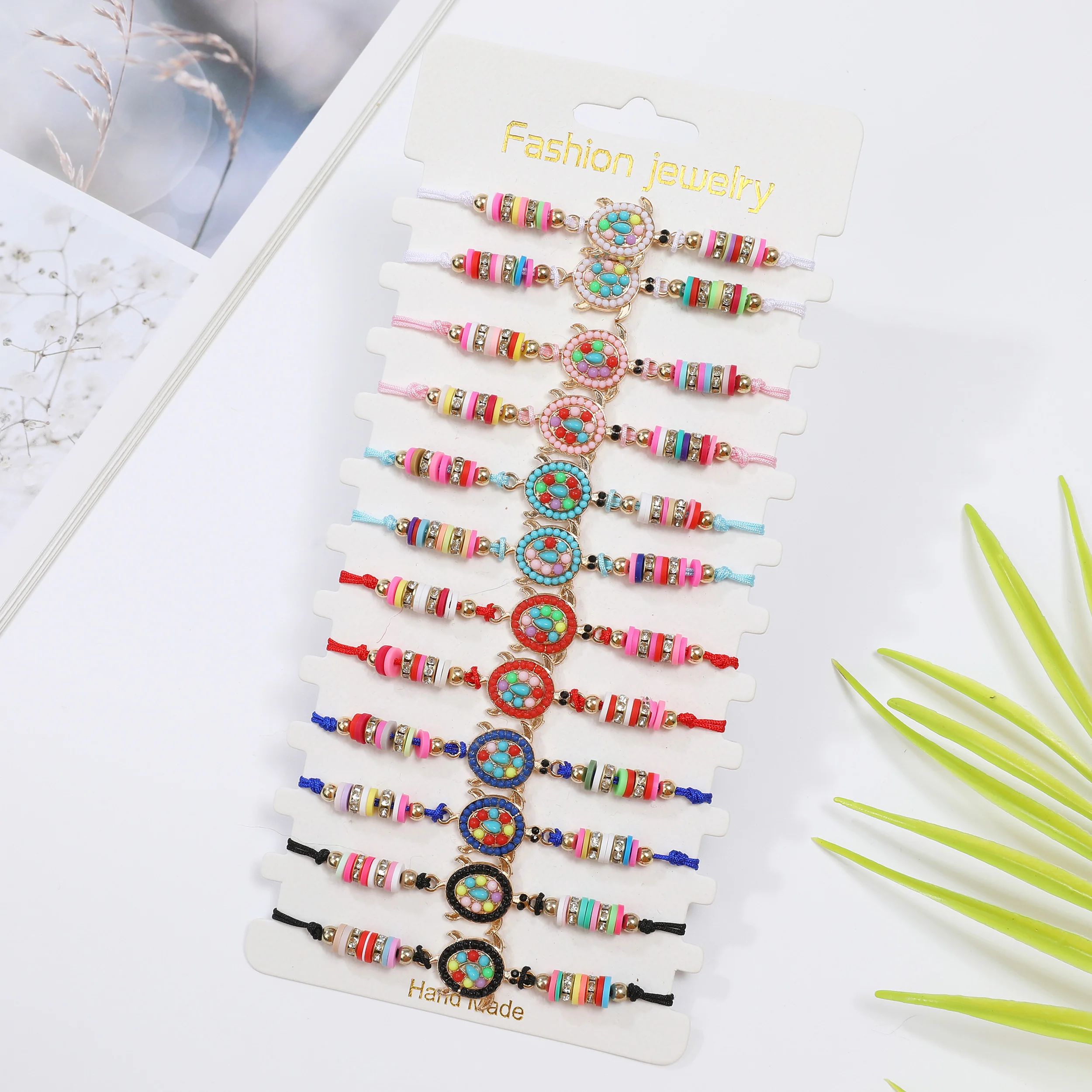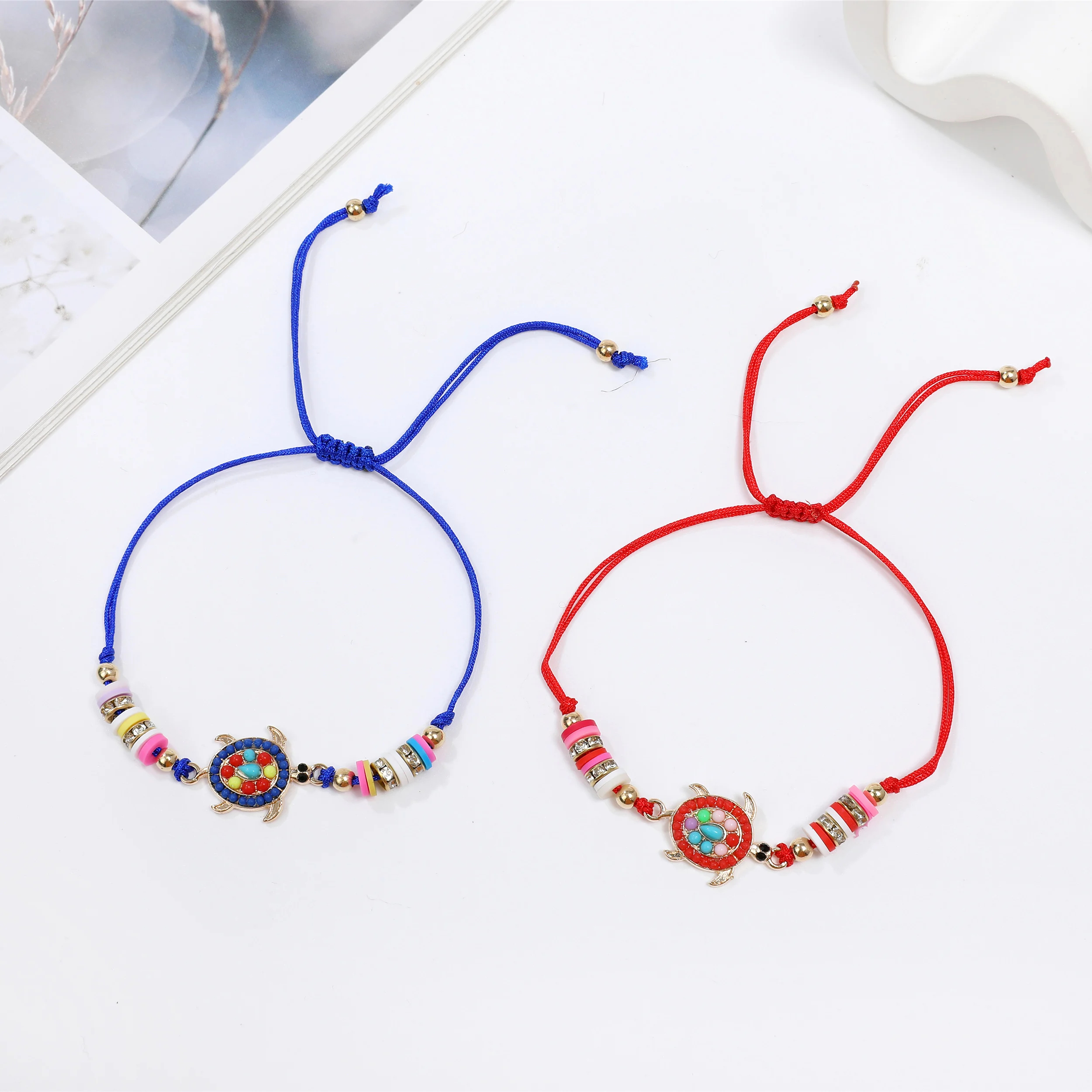 12pcs Polymer Clay Beads Colorful Turtle Pendant Bracelet Charms Braided Rope Chain Bracelet Yoga Jewelry Gifts