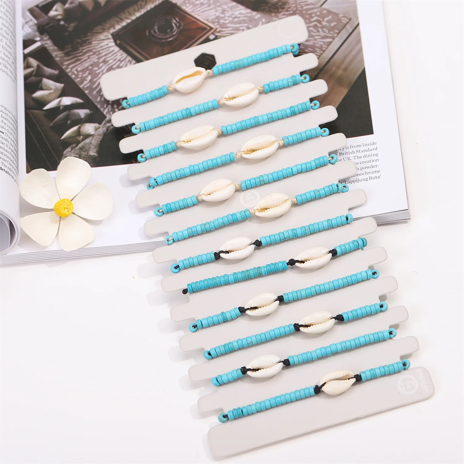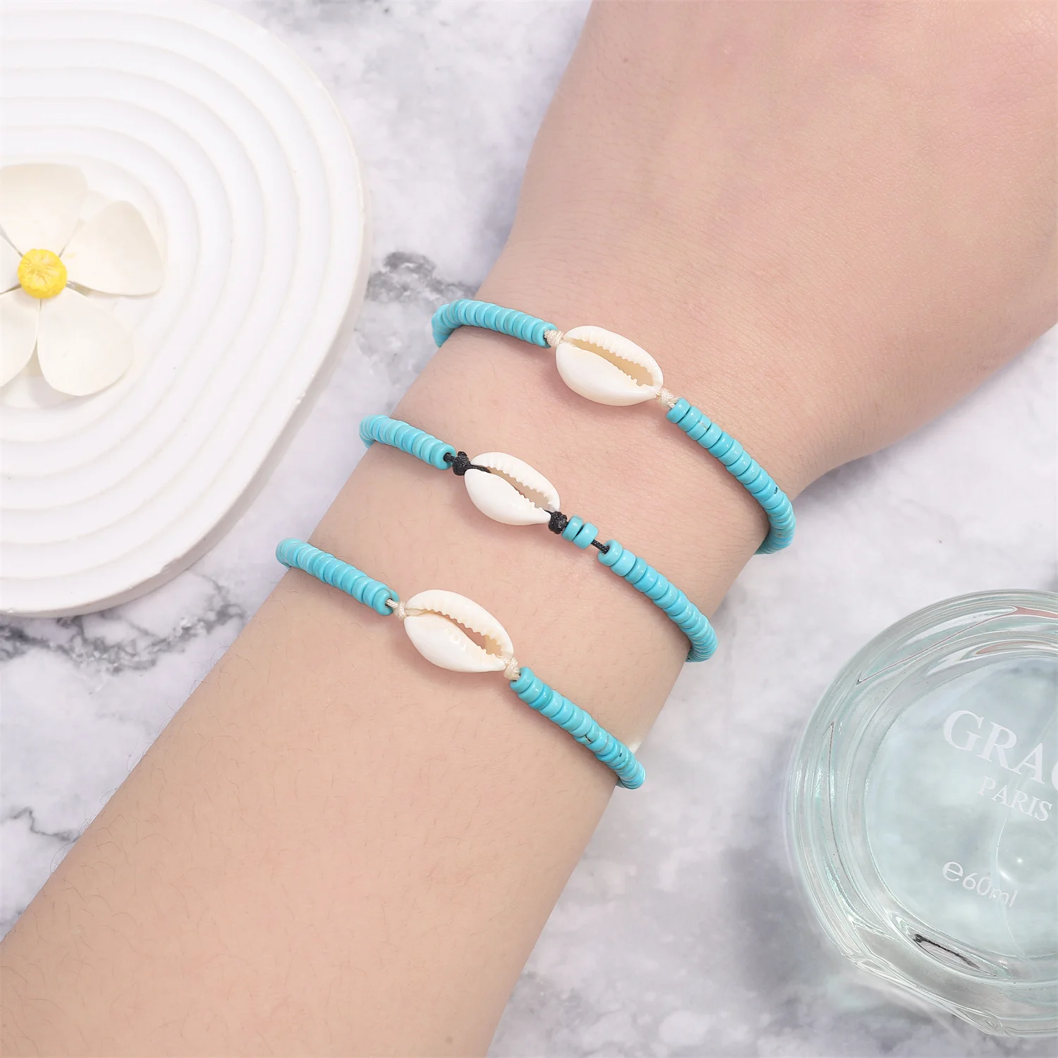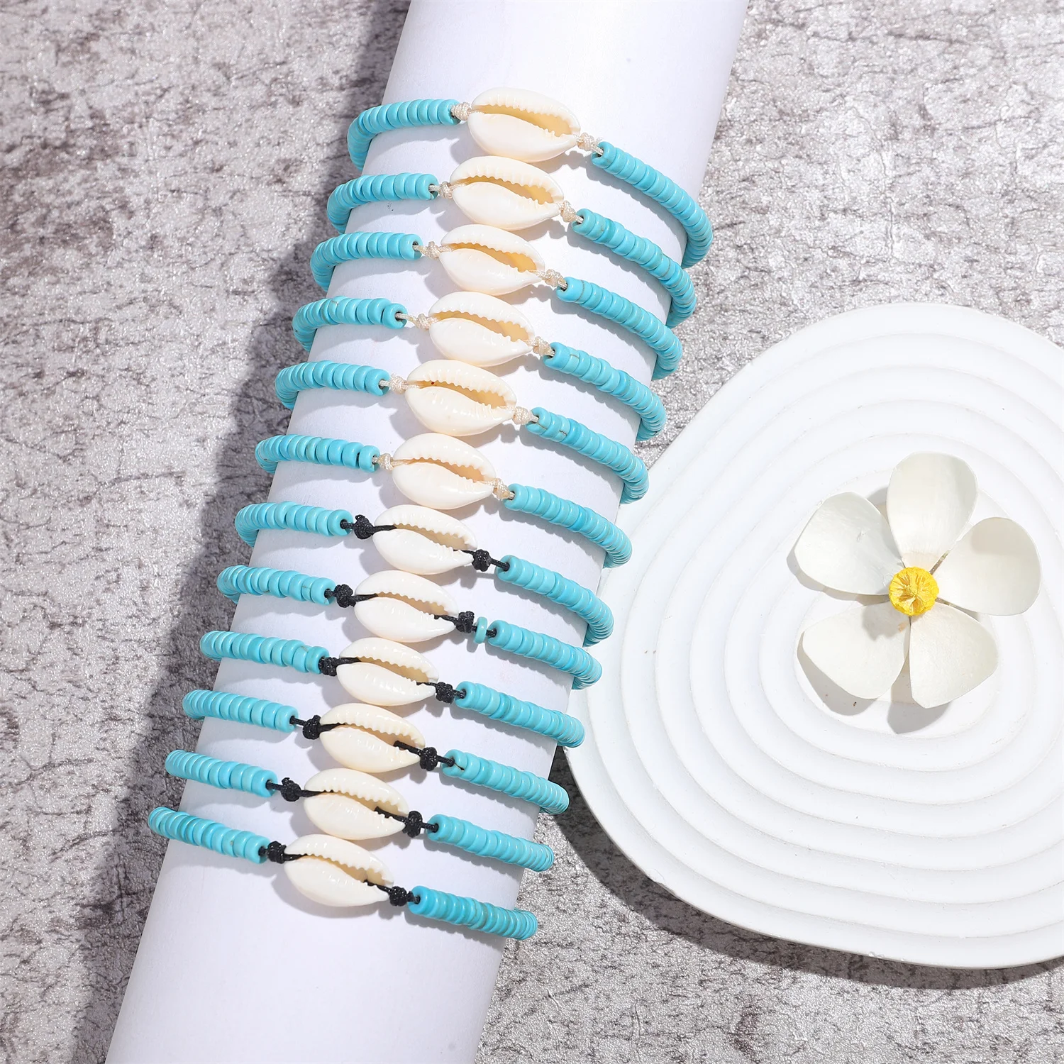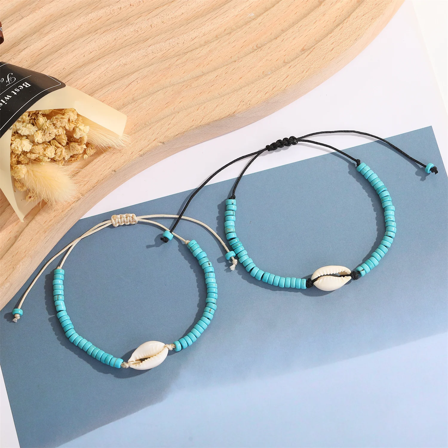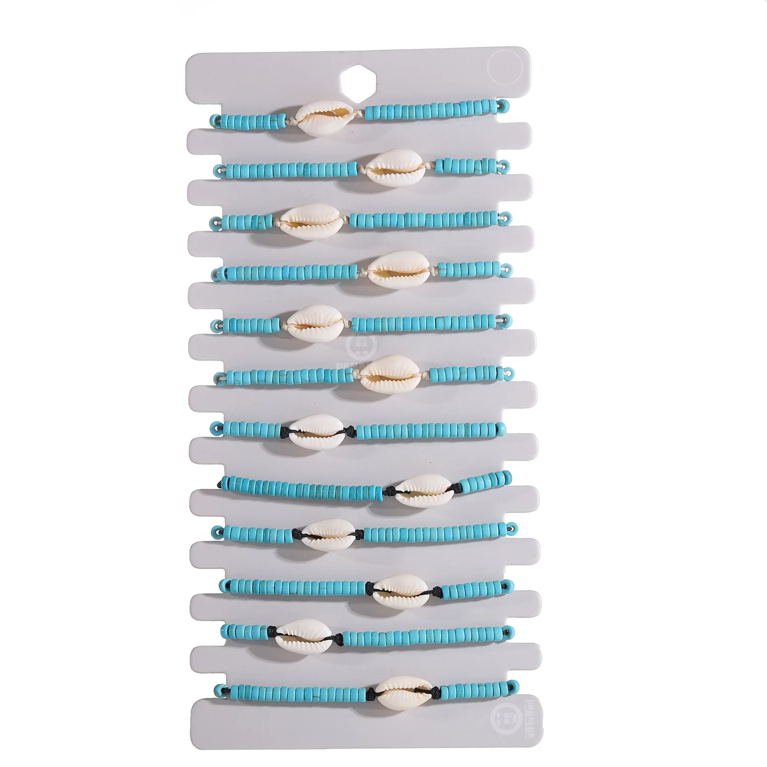 12pcs/set Green Beads Shell Charms Bracelets for Women Handmade Braided Rope Bracelets Set Fashion Summer Beach Jewelry Gift
