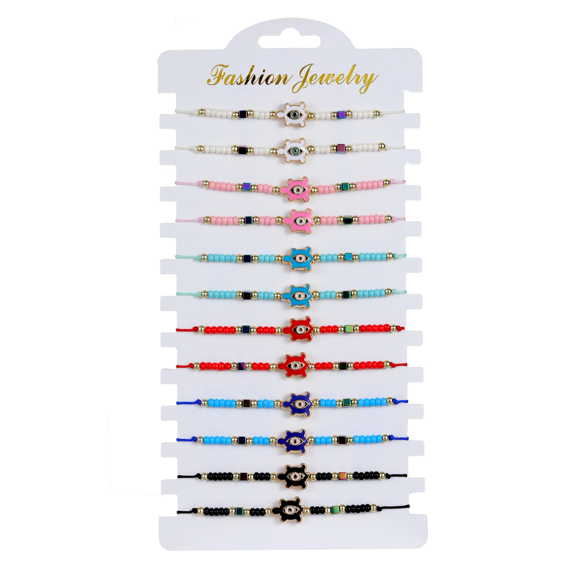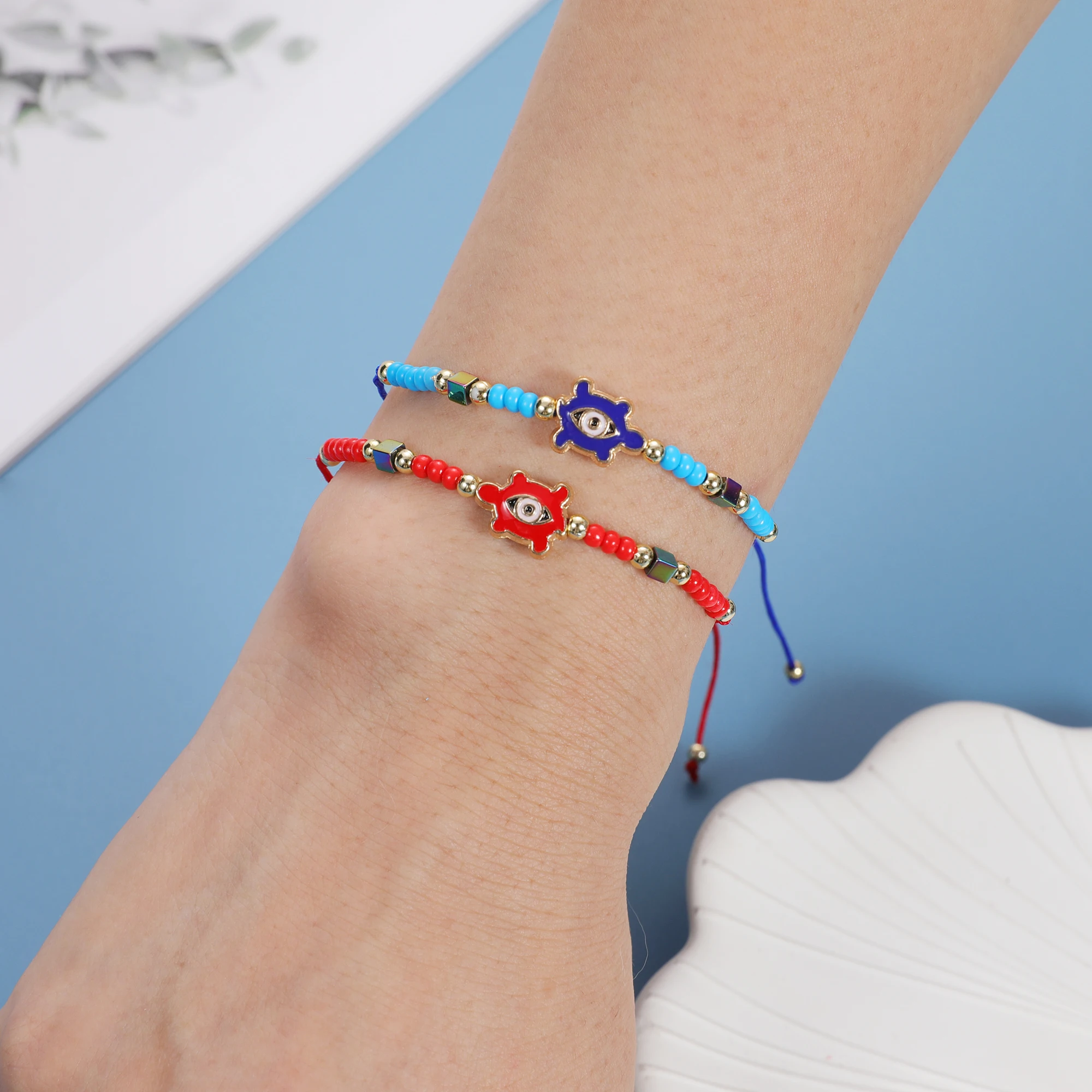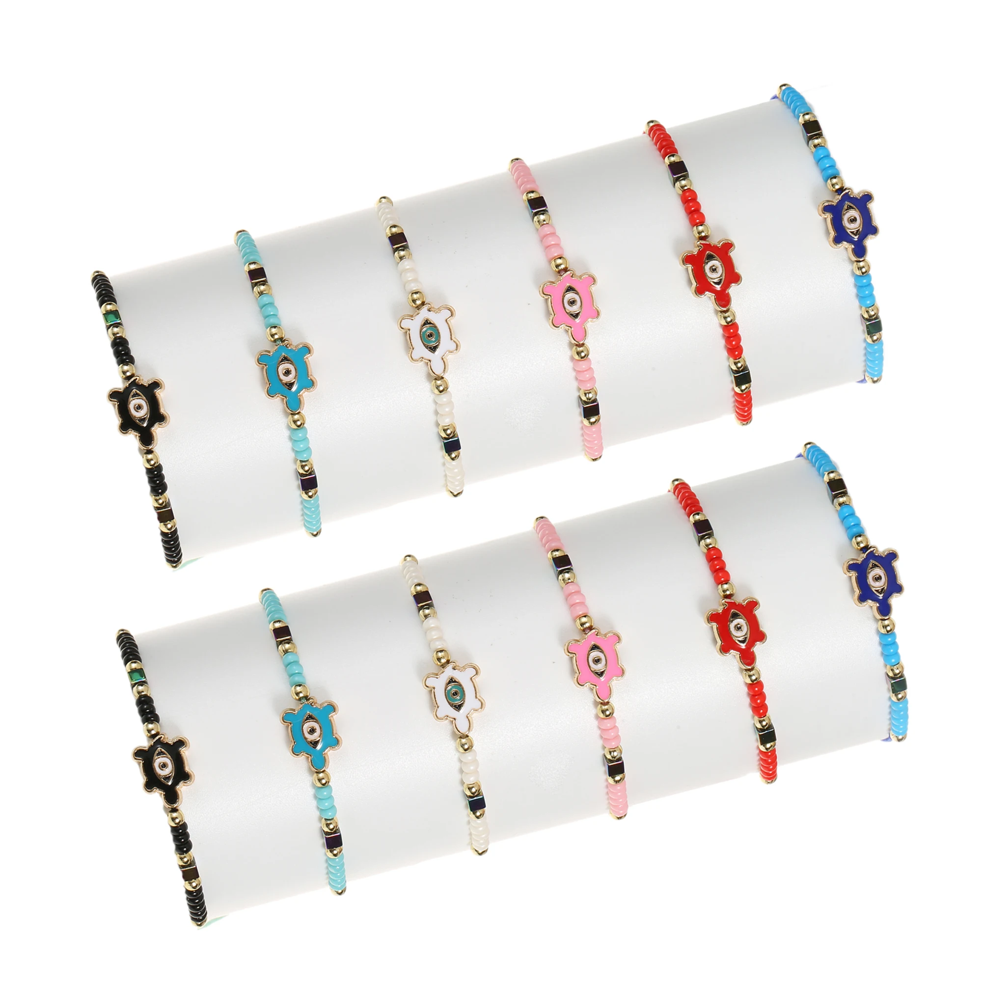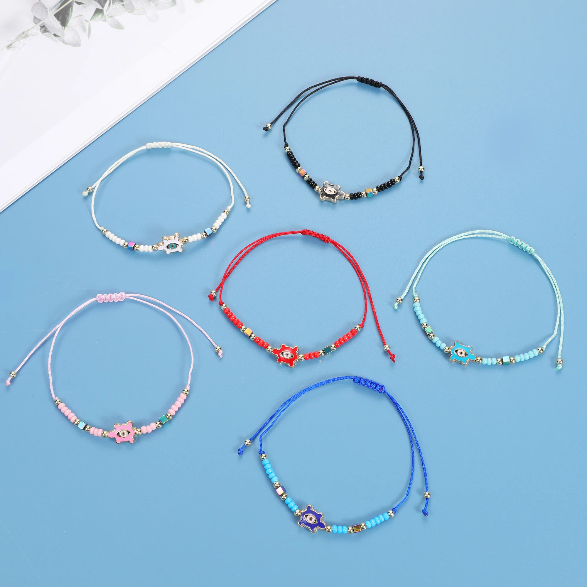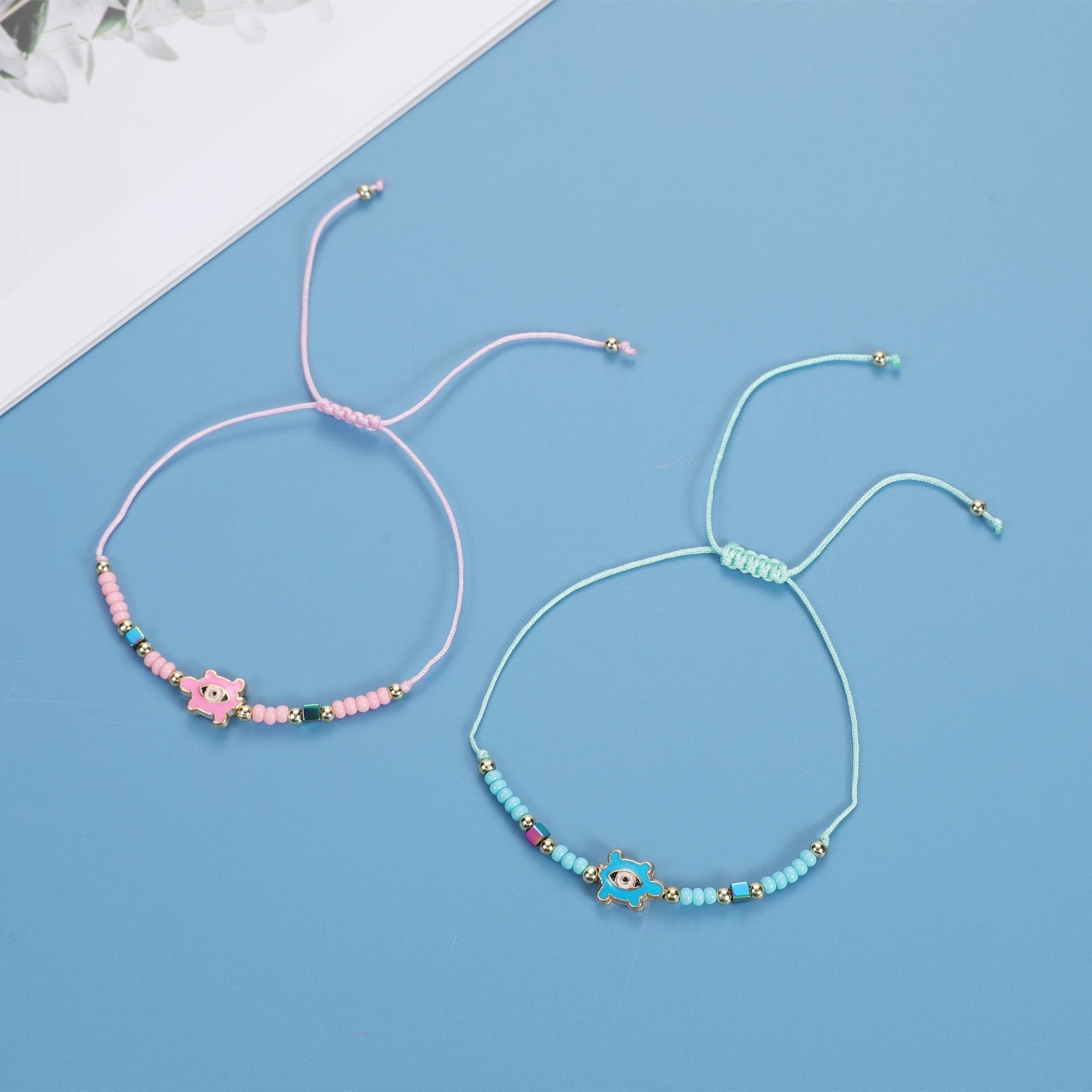 12pcs/Set Handmade Braid Rope Chain Bracelet Oil Painting Turtle Charms Seed Beads Bracelets for Women Fashion Jewelry