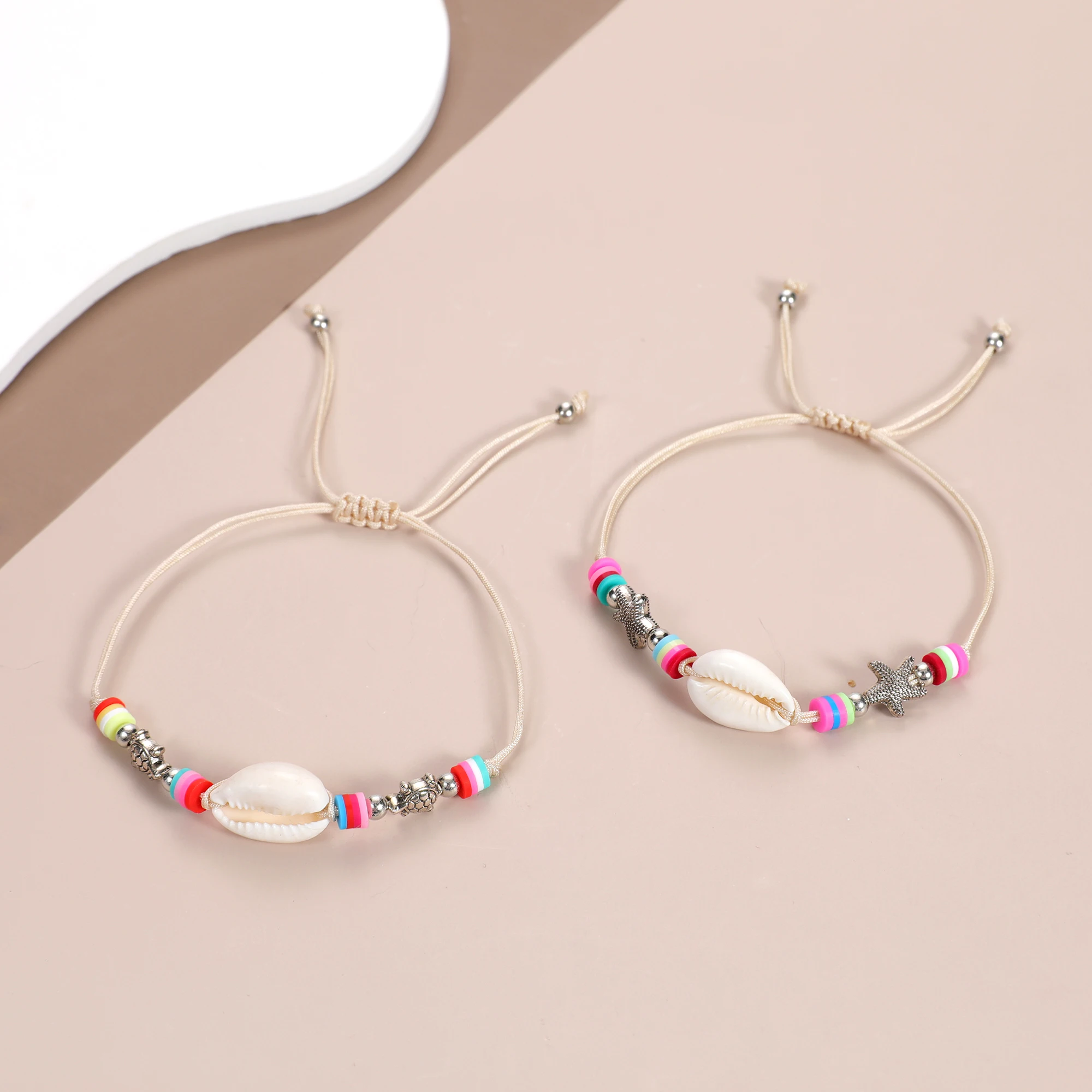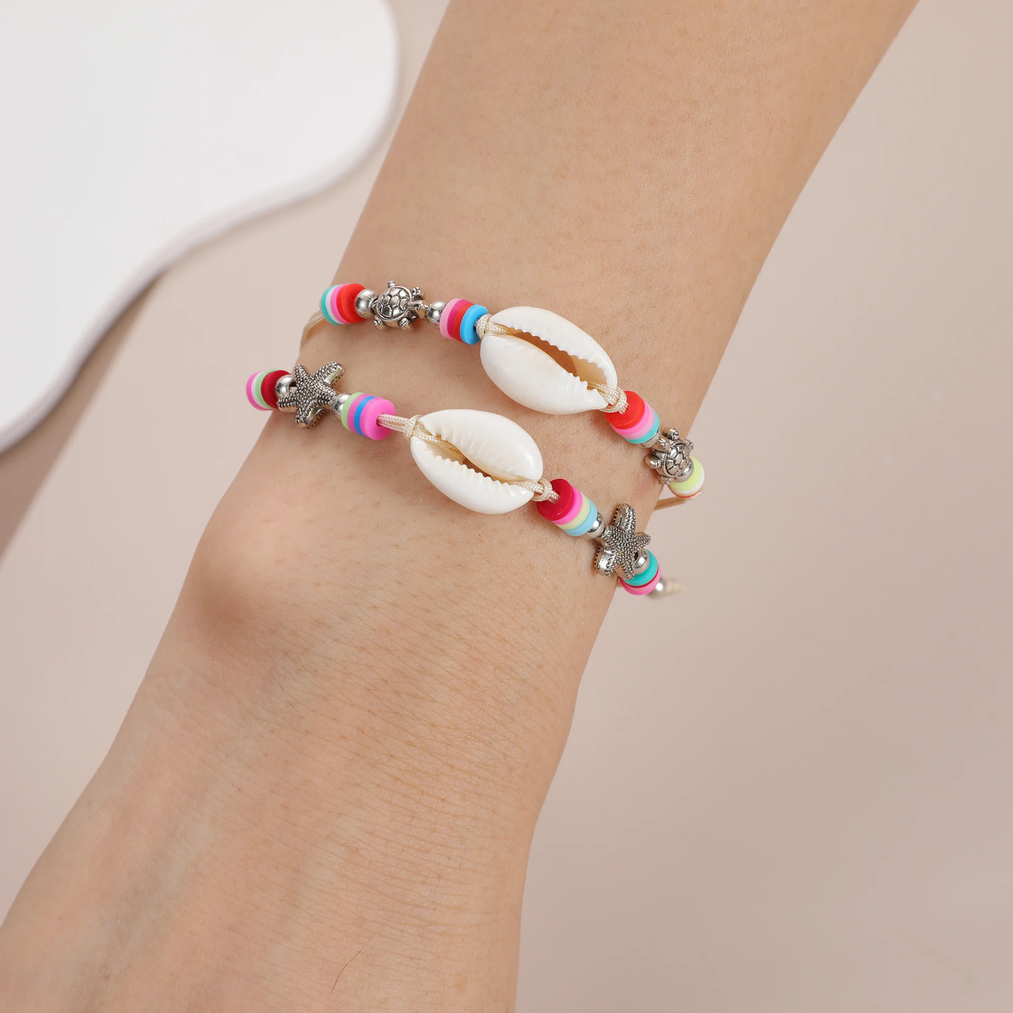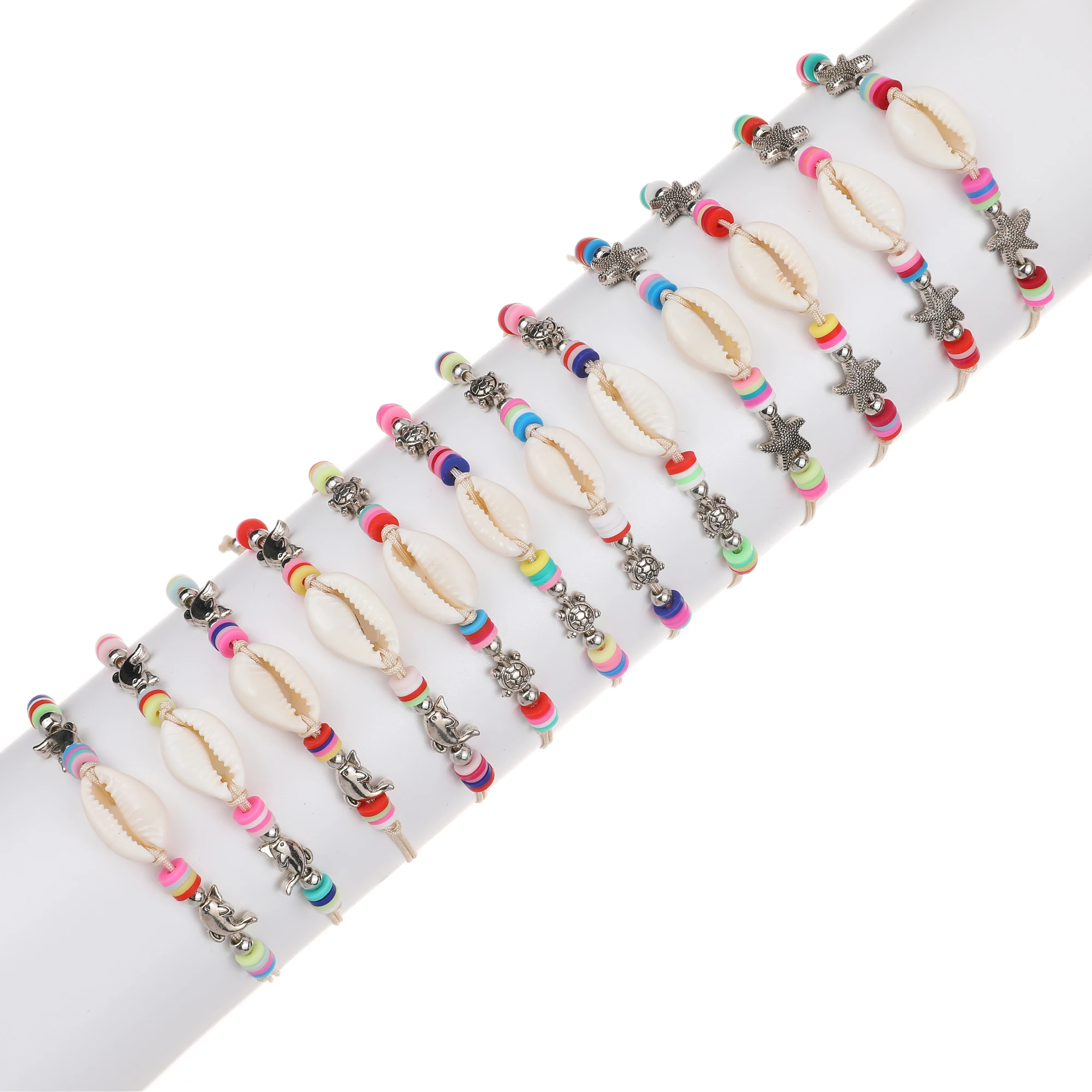 Boho 12pcs/lot Ocean Turtle Starfish Charms Bracelets Adjustable Rope Chain Yoga Soft Clay Wristband for Women Holiday Jewelry