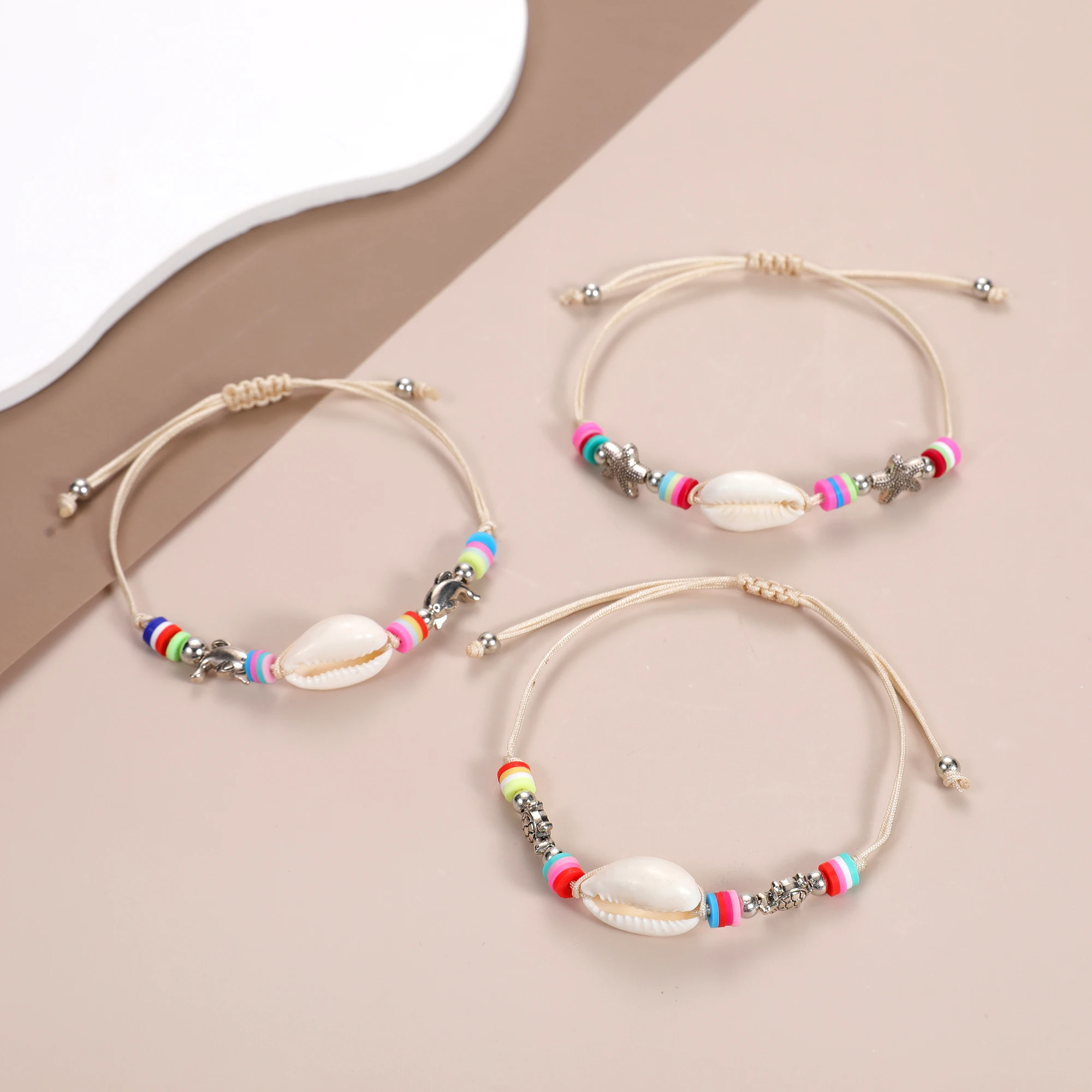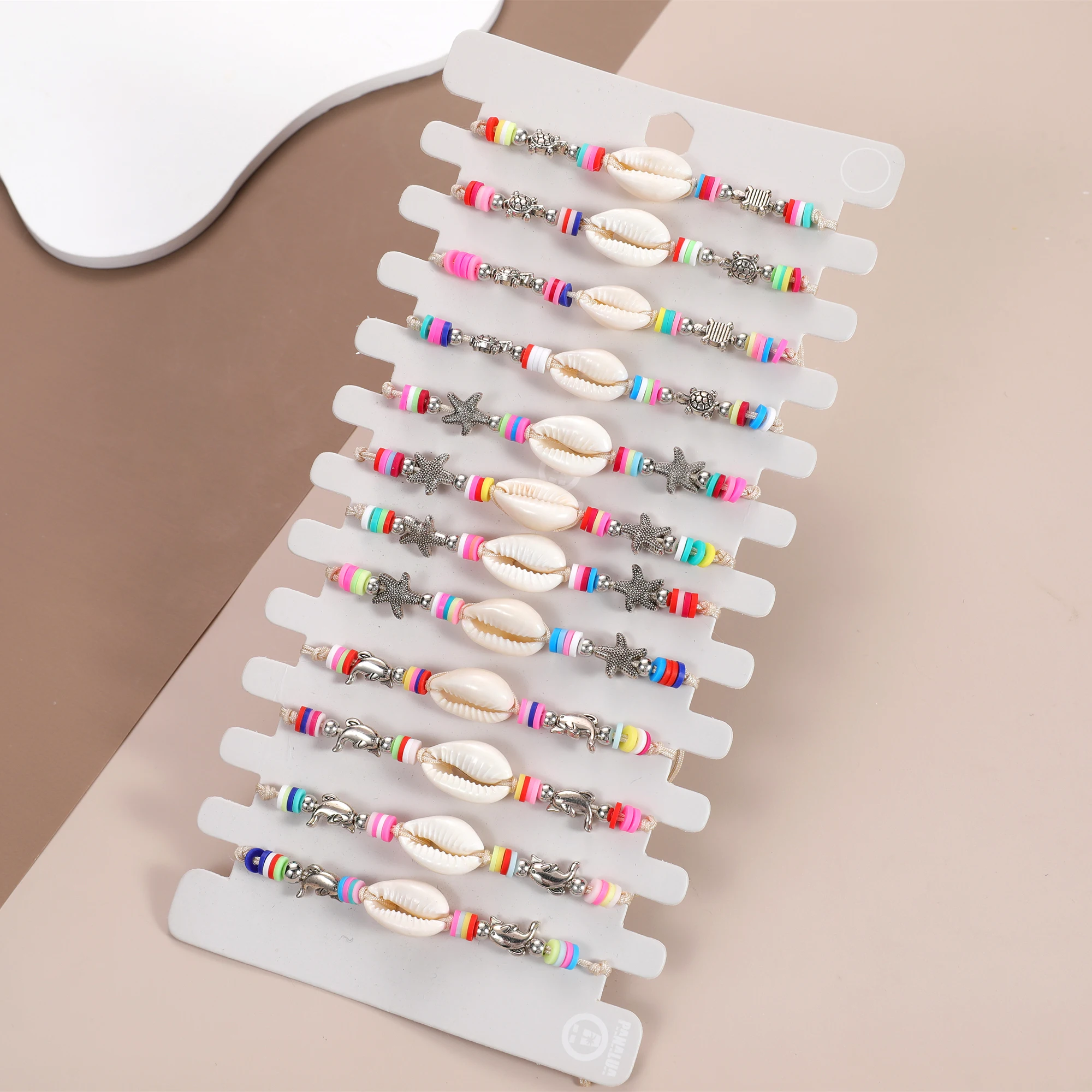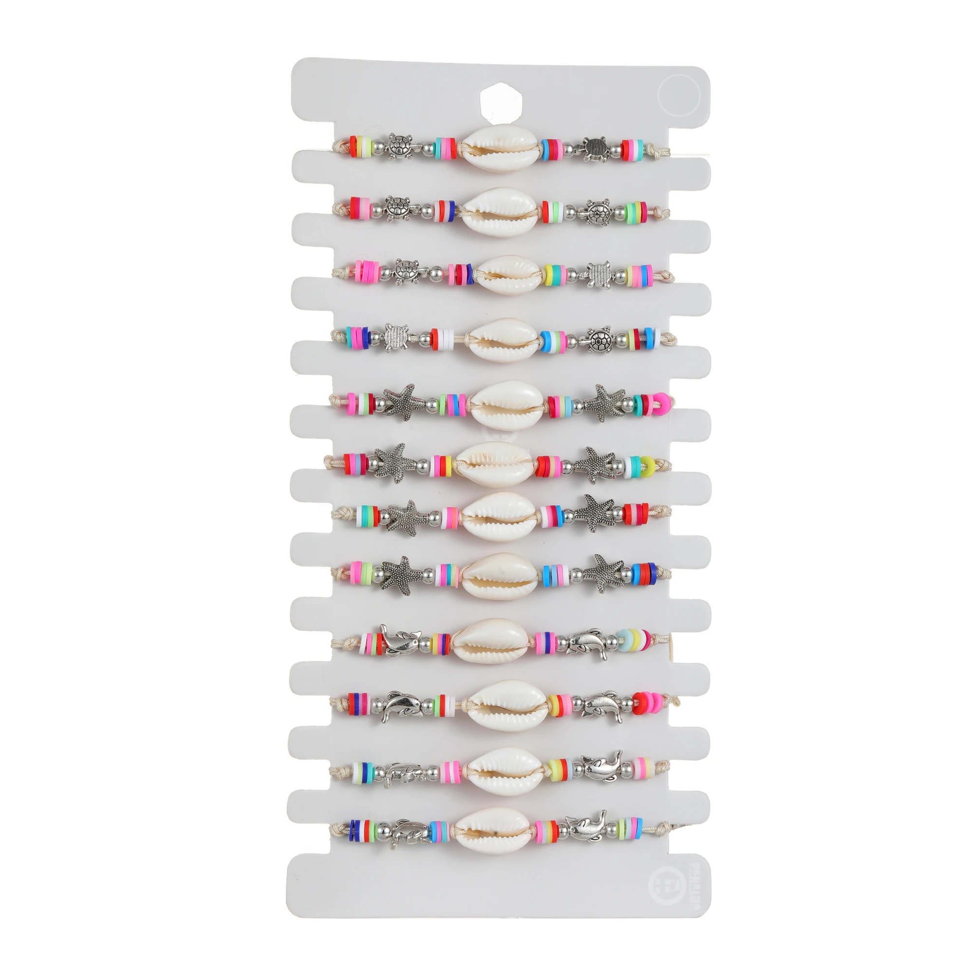 Boho 12pcs/lot Ocean Turtle Starfish Charms Bracelets Adjustable Rope Chain Yoga Soft Clay Wristband for Women Holiday Jewelry