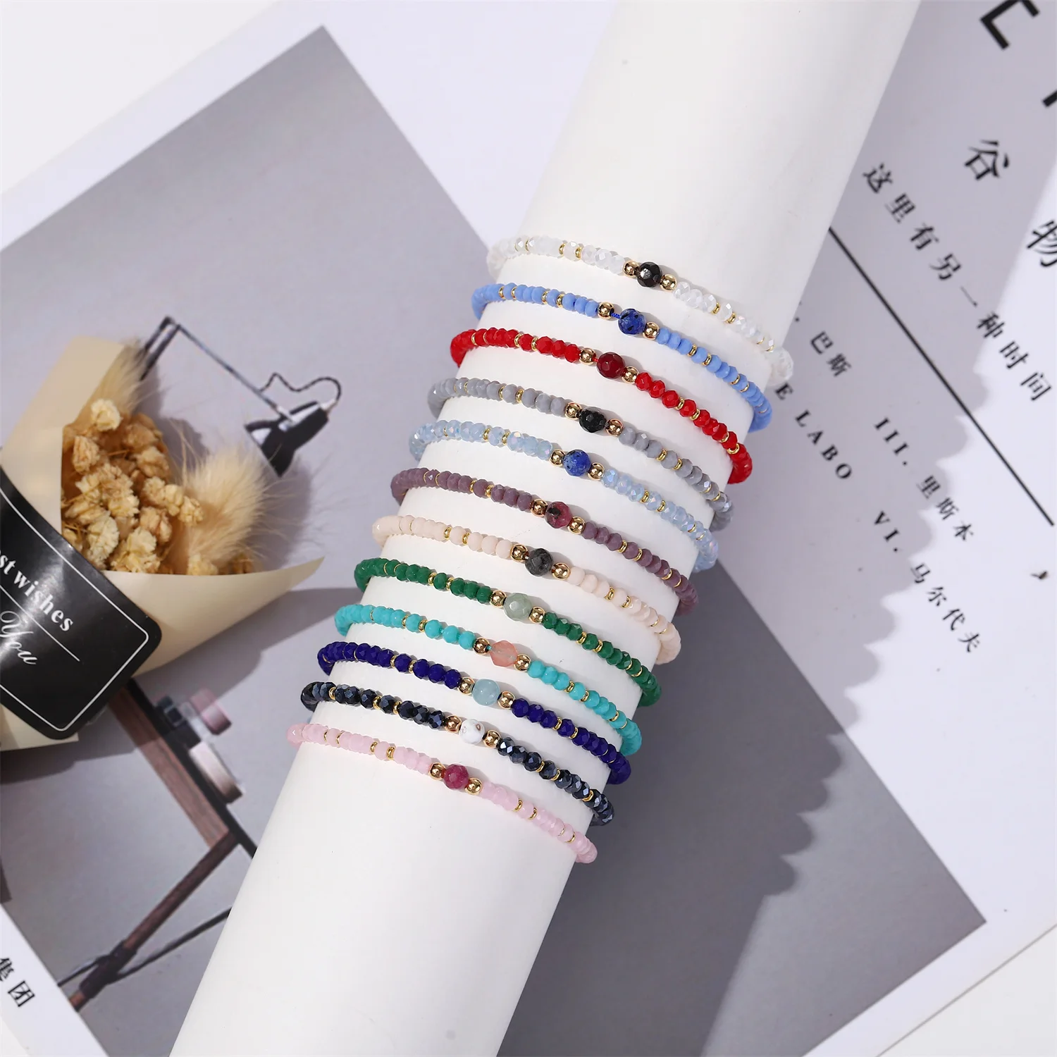 Boho 12Pcs/Lot Seed Beads Natural Stone Charms Bracelets Adjustable String Wish Bracelets Jewelry Gifts for Girls Wholesale