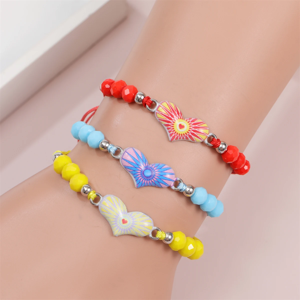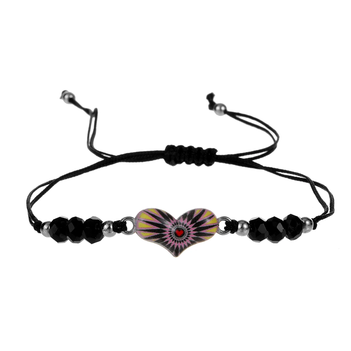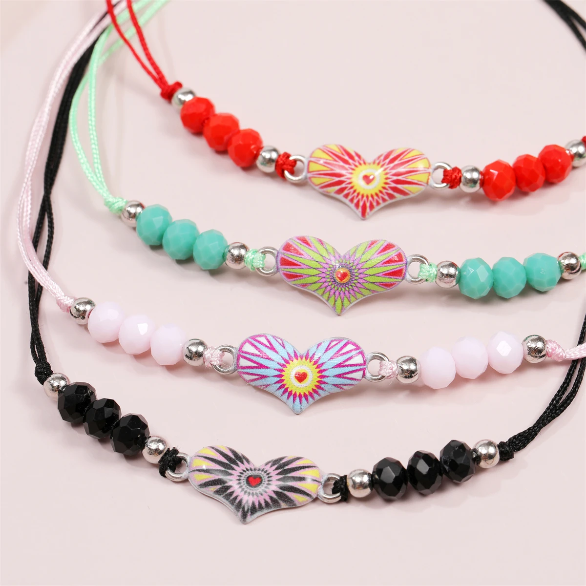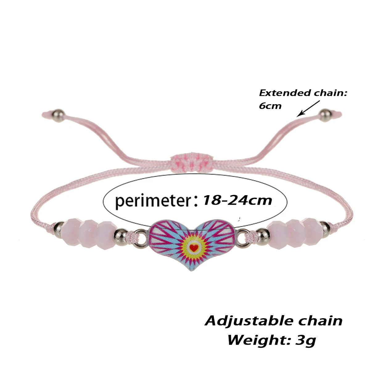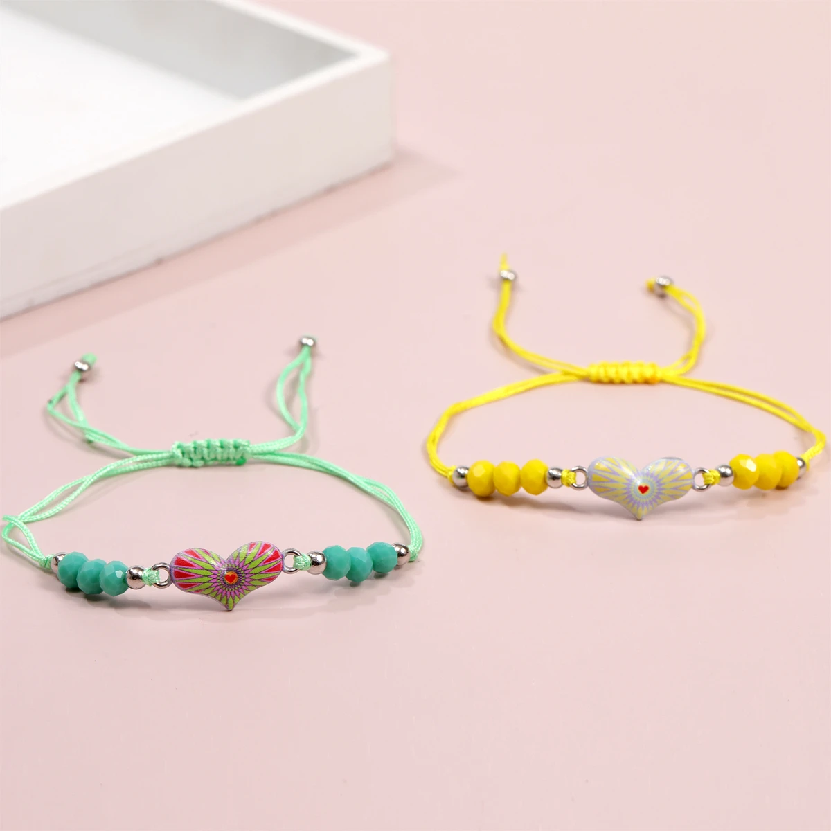 Enamel Charms Elastic Heart Pendant Bracelet for Women Adjustable Braided Rope Chain Crystal Bead Wristband Bracelet Jewelry