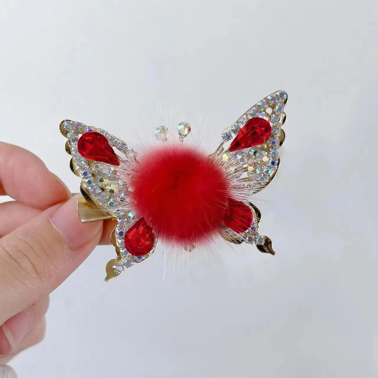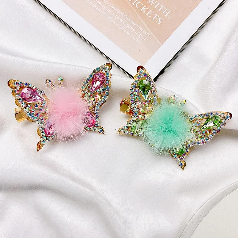 Fashion 3D Butterfly Faux Fur Hair Clips Flying Shiny Rhinestone Hairpin Barrettes for Women GirlsPonytail Holder Hairpins