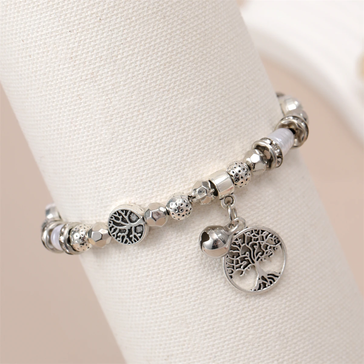 Fashion Metal Beads Disco Ball Charms Bracelets Bangles Tree of Life Pendant Adjustable Bracelet Jewelry for Women Man