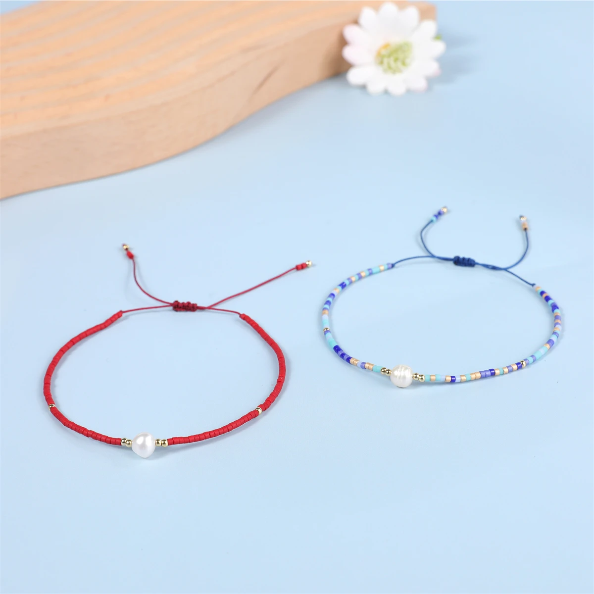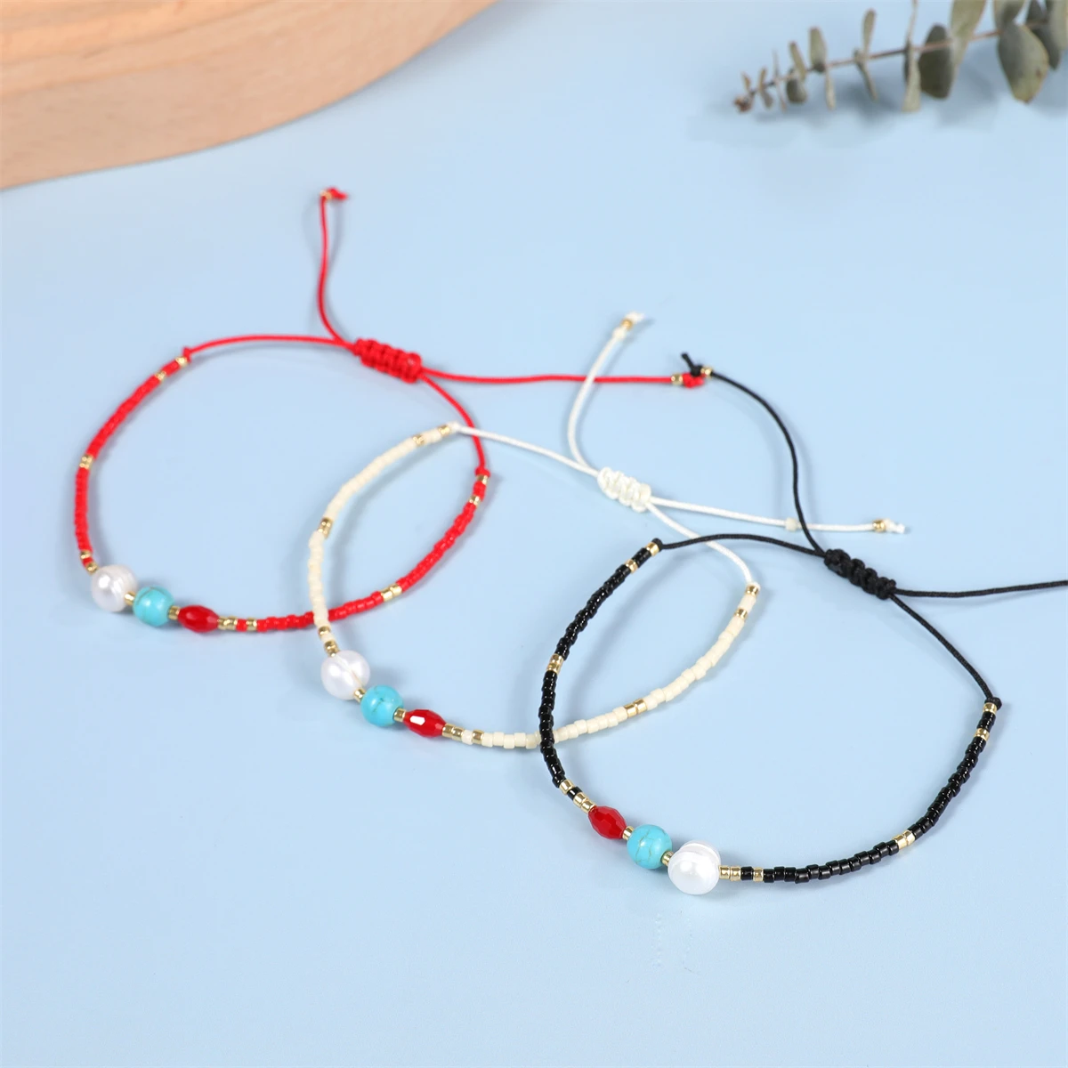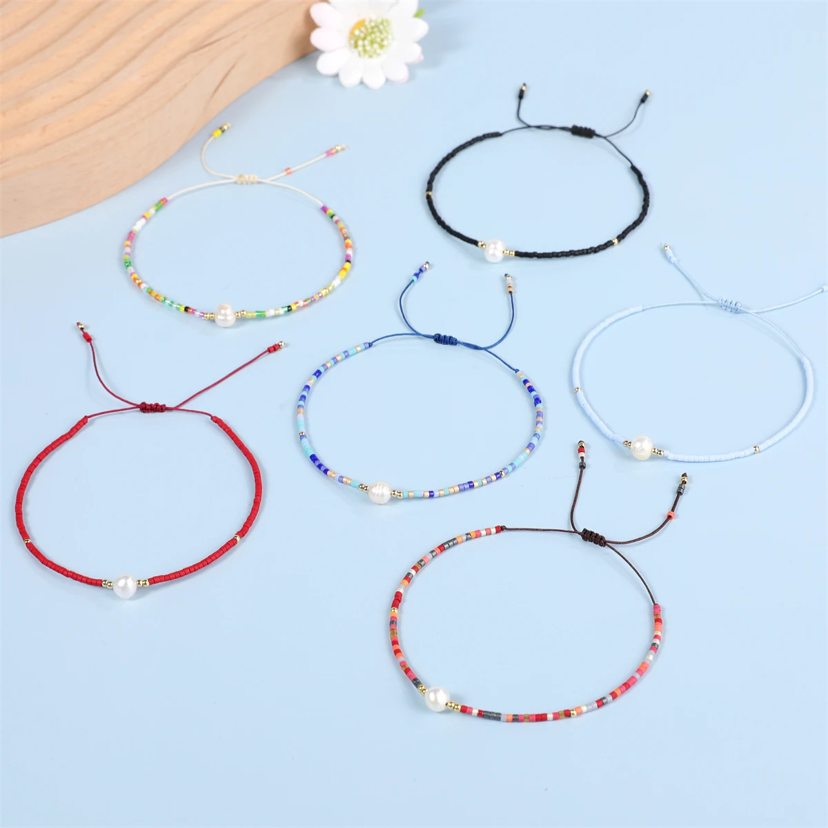 Handmade Seed Beads Charms Pearl Bracelets Adjustable Braided Bracelet Anklet Women Girl Wristband Cuff Jewelry