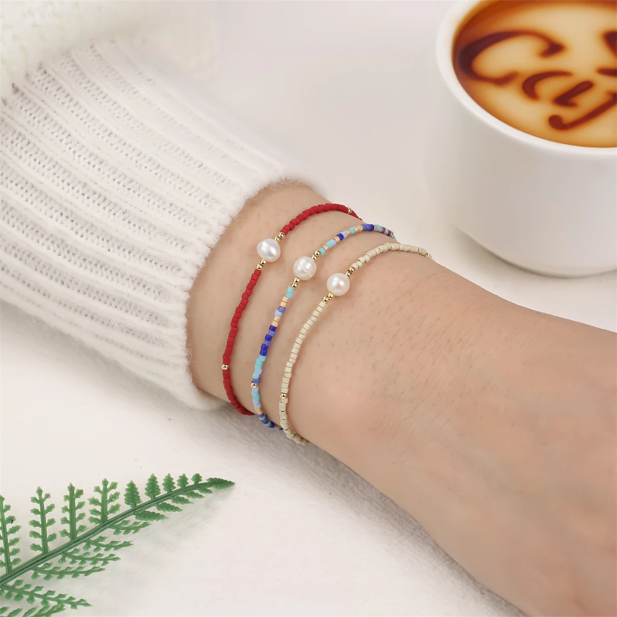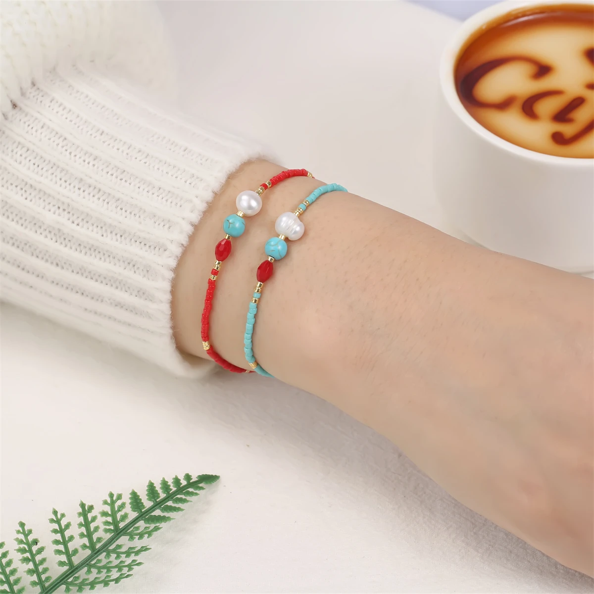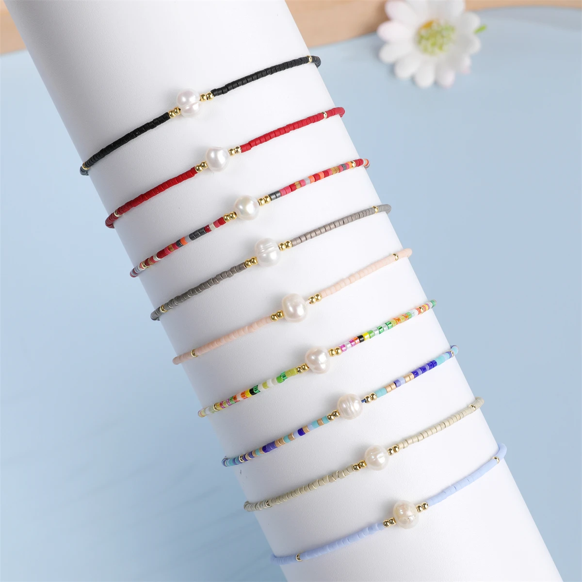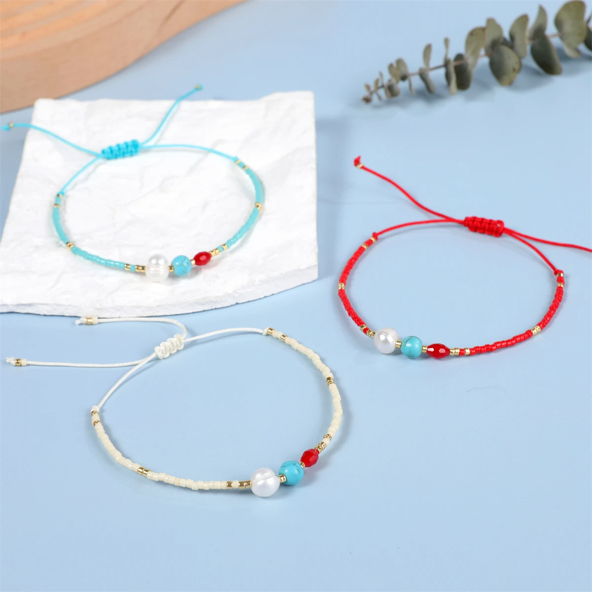 Handmade Seed Beads Charms Pearl Bracelets Adjustable Braided Bracelet Anklet Women Girl Wristband Cuff Jewelry