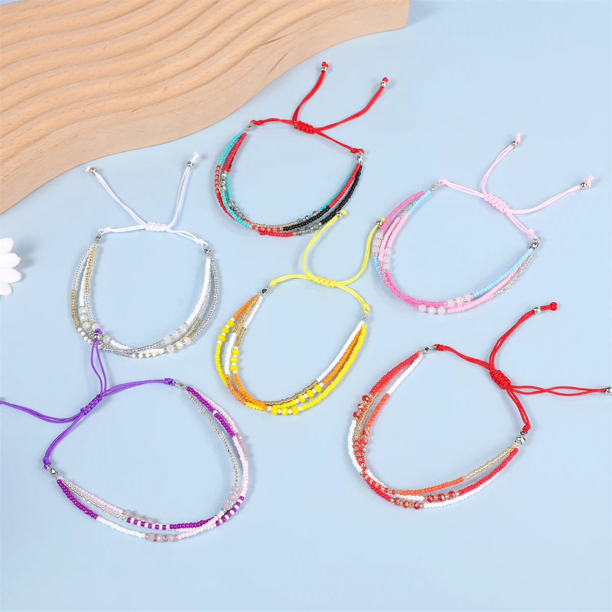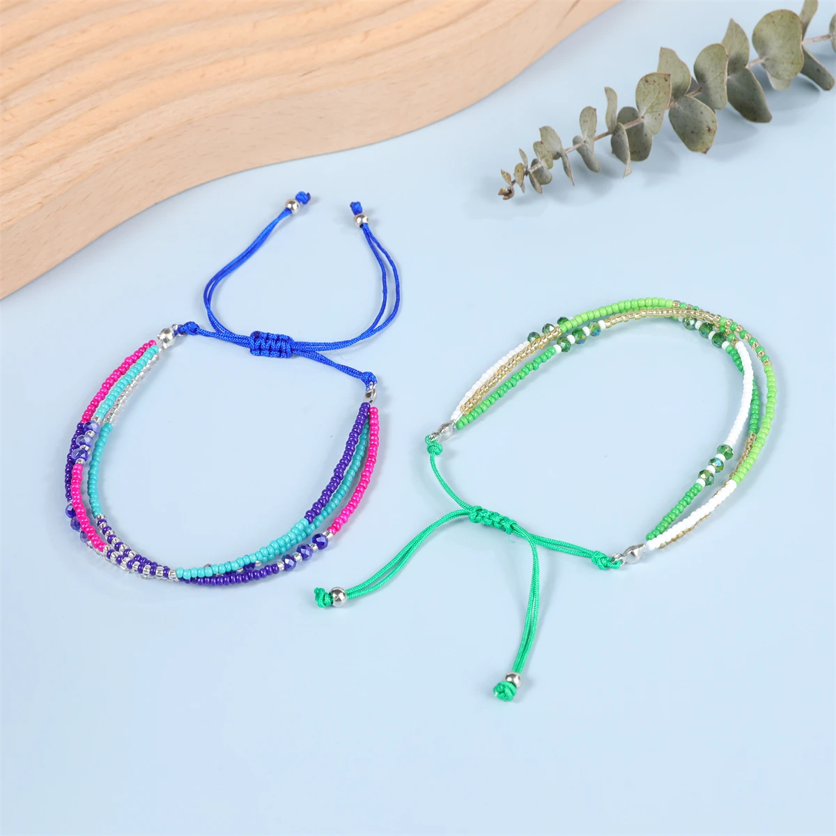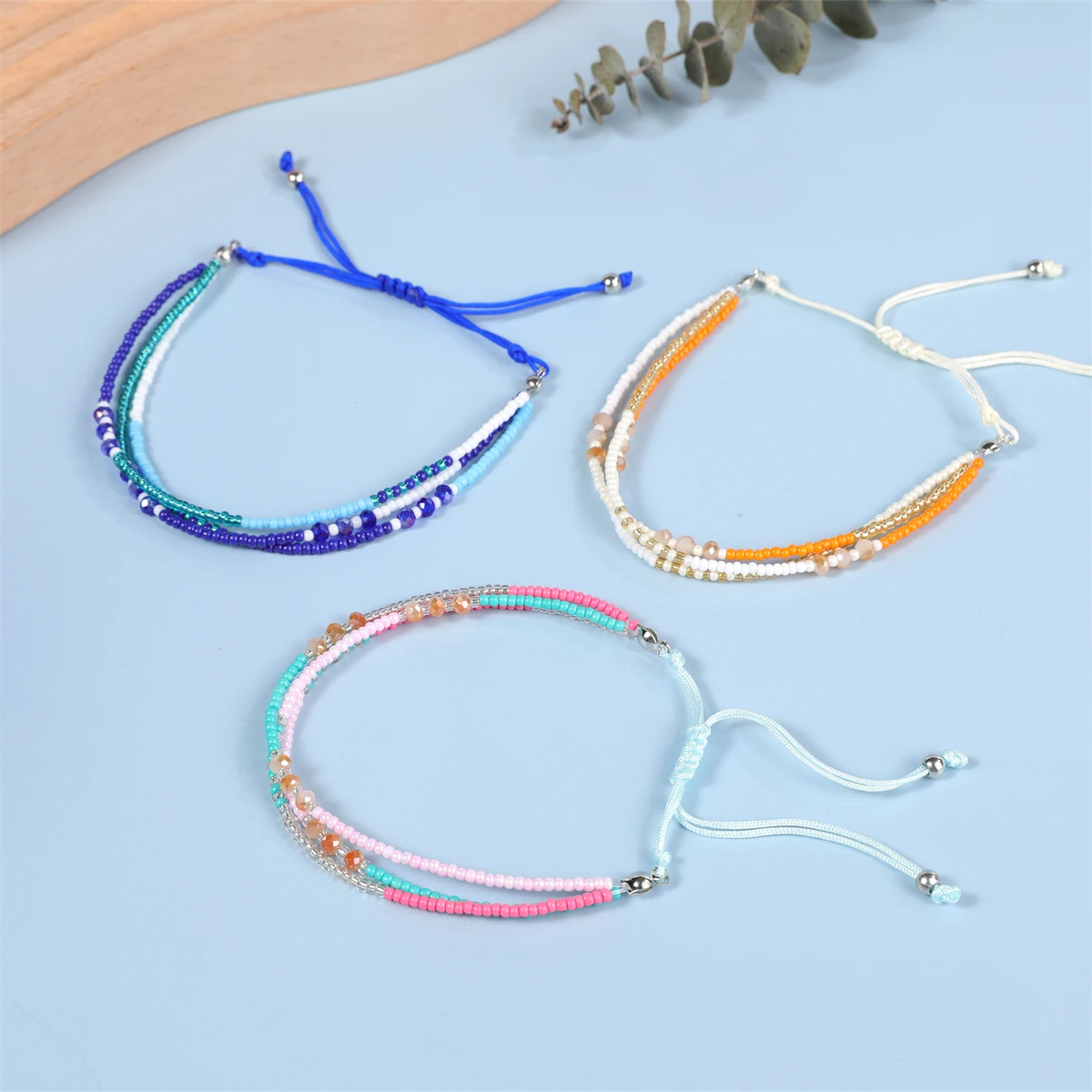 Multilayer Glass Beaded Bracelets for Women Handwoven Summer Surf Waterproof Adjustable Size Jewelry Pulsera