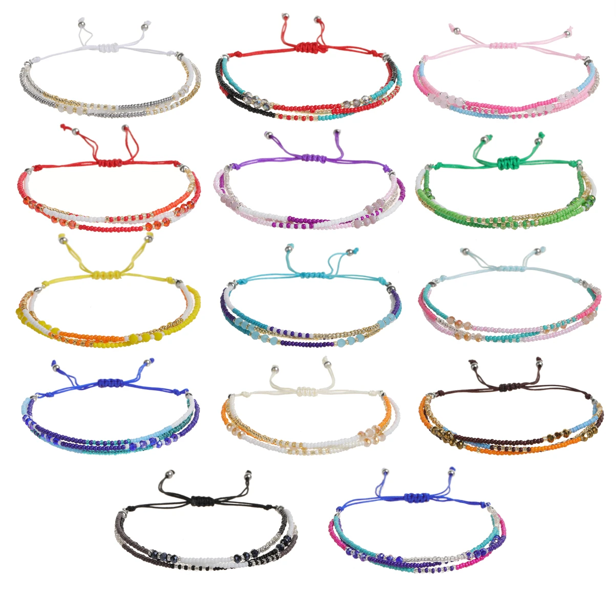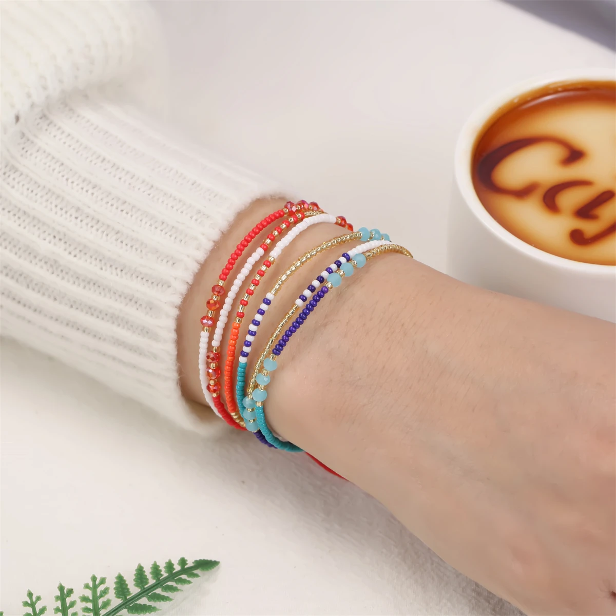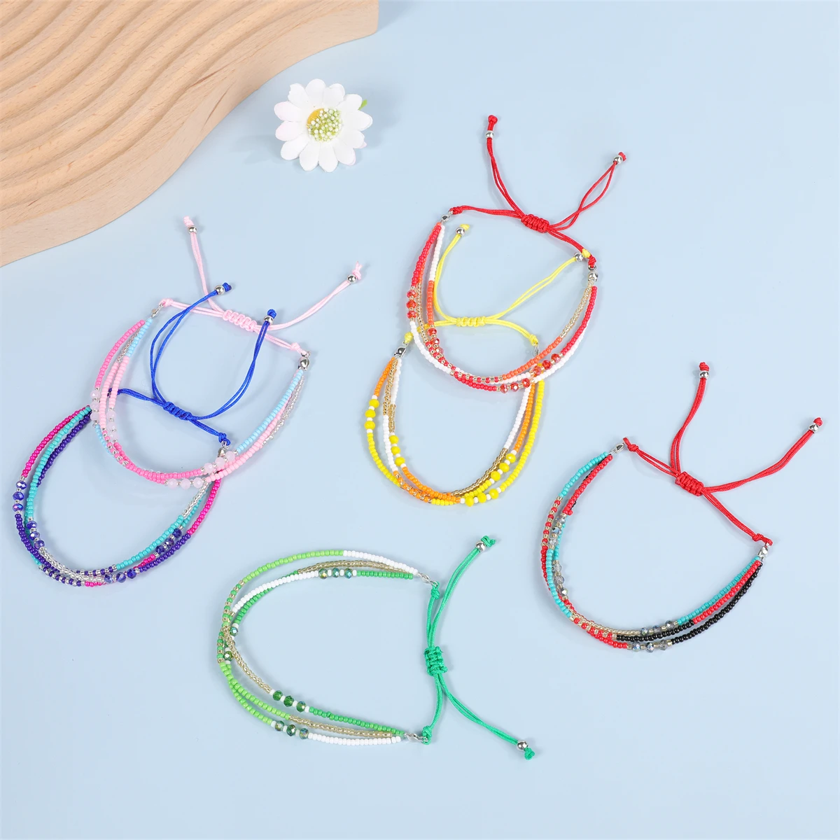 Multilayer Glass Beaded Bracelets for Women Handwoven Summer Surf Waterproof Adjustable Size Jewelry Pulsera