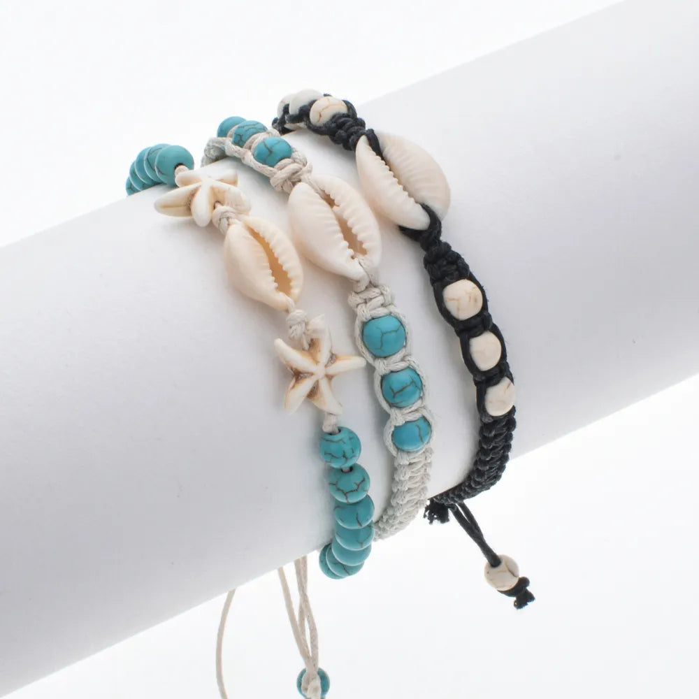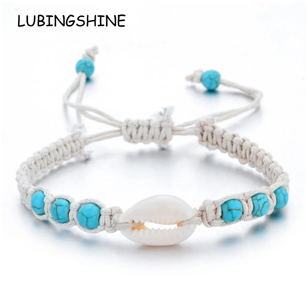 Natural Stone Shell Starfish Bracelets Braided Adjustable Rope Chain Bracelet Anklet Wristband Handmade Holiday Beach Jewelry