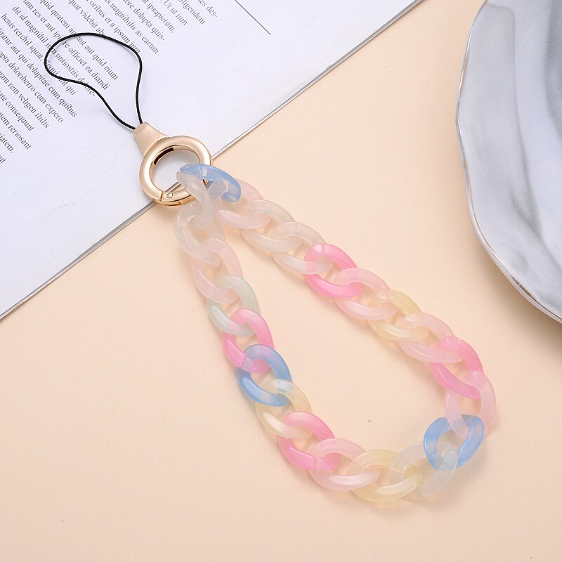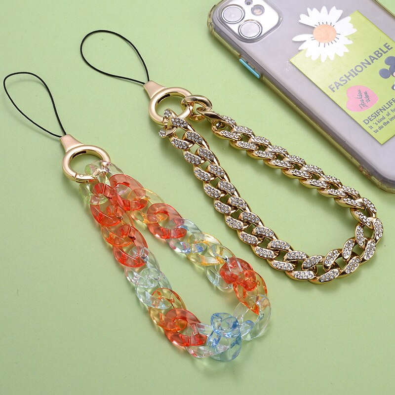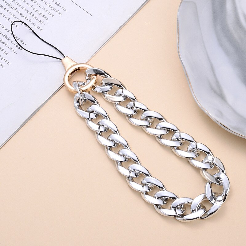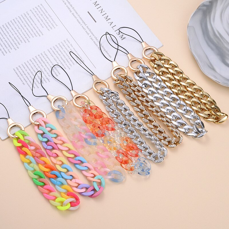 Punk Lobster Clasp Thick Wrap Metal Chain Mobile Phone Chain Anti-lost Handmade Acrylic Cord Lanyard for Women Girls