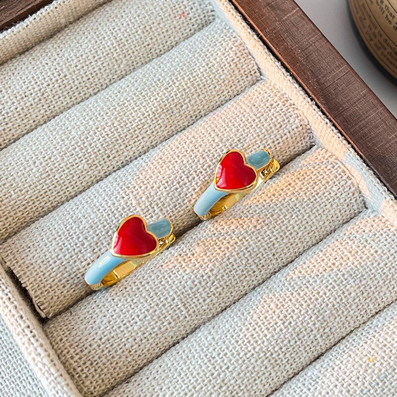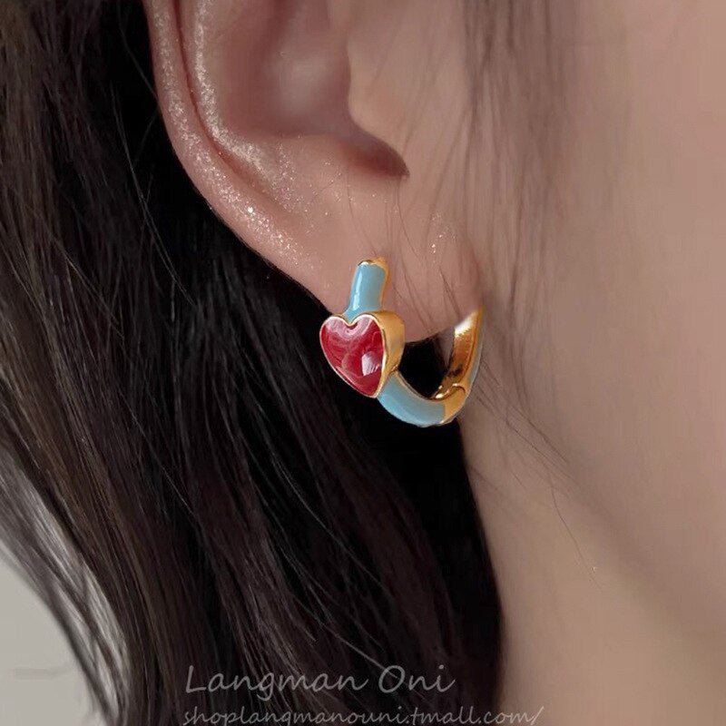 Trendy Colorful Drip Enamel Heart Hoop Earrings for Women Minimalist Symmetry Jewelry Engagement Studs Earrings 2023 New